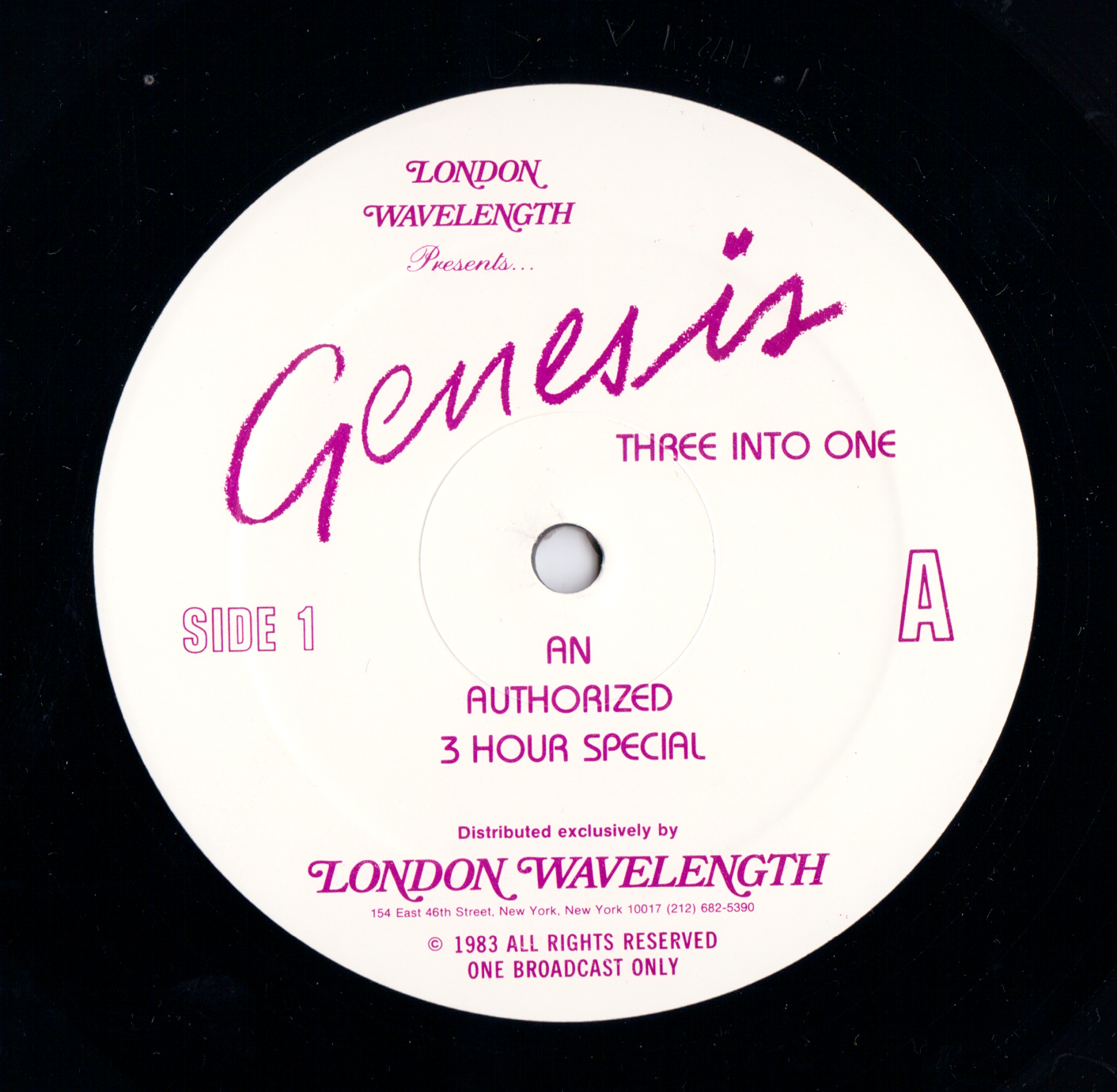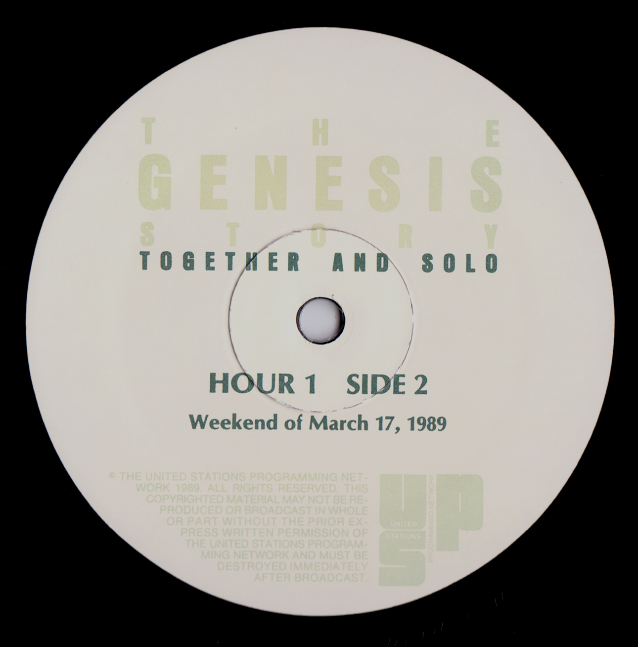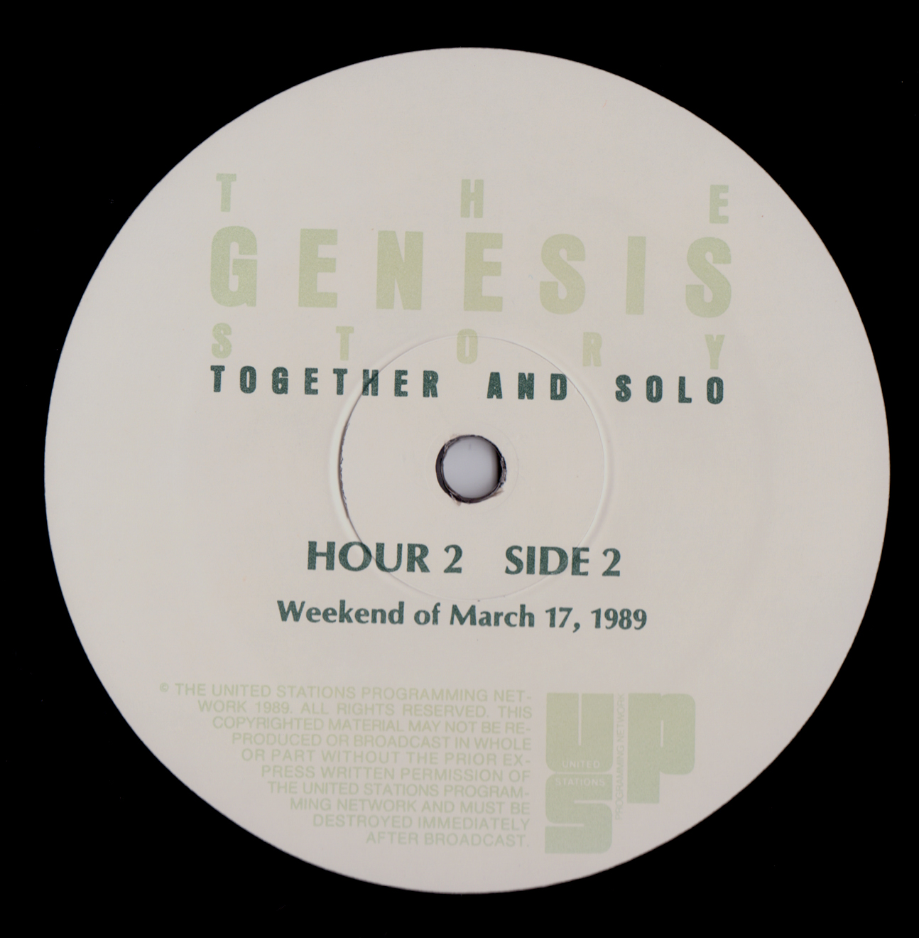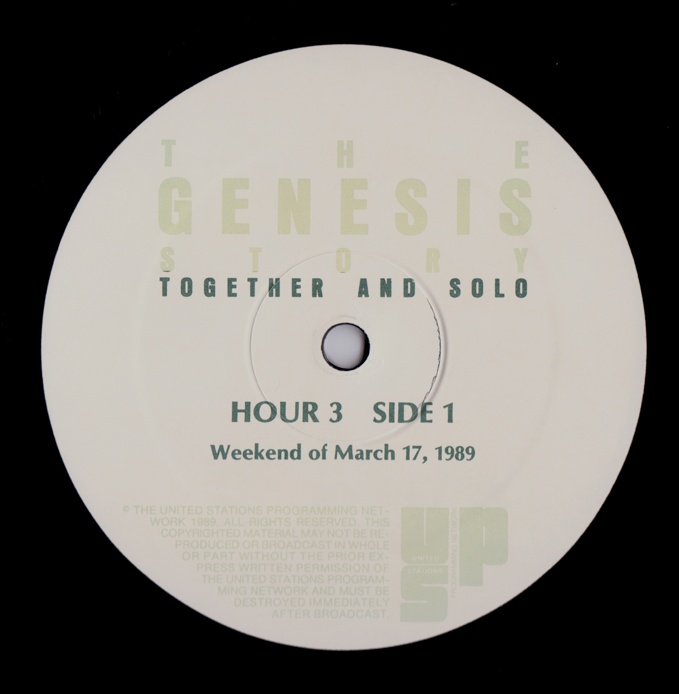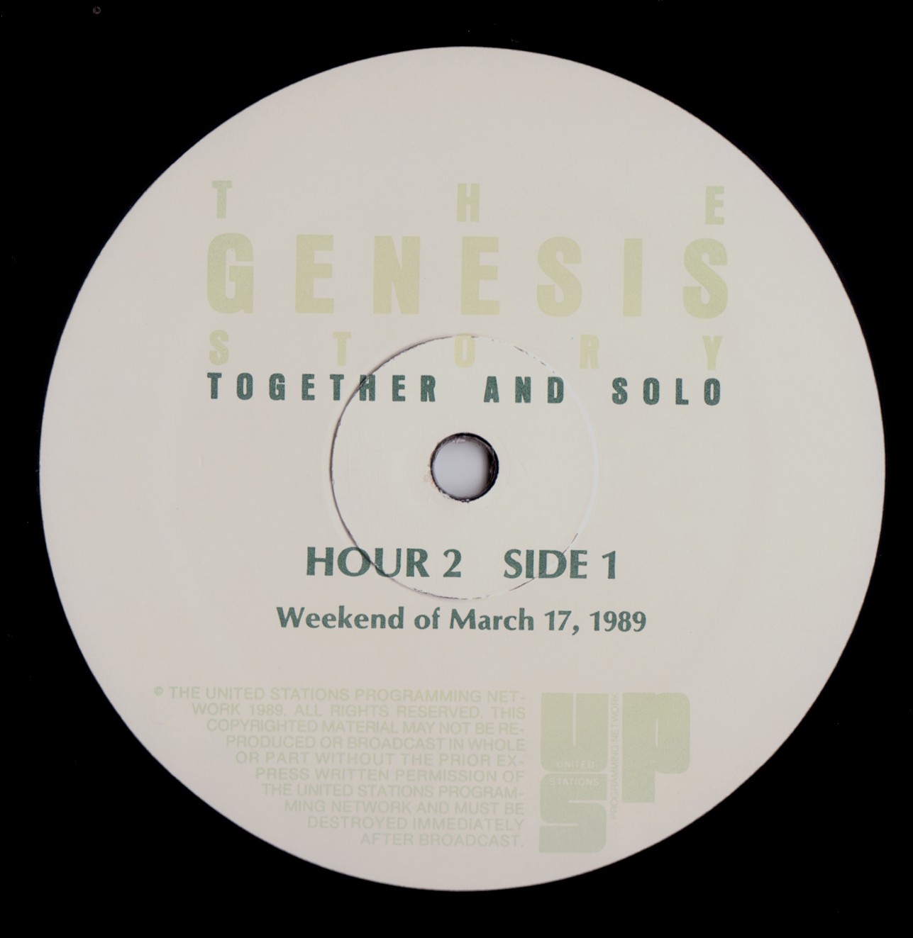 A two-hour hour radio show on two LPs hosted by Meg Griffin and featuring an unidentified male interviewer who provides a detailed history of the band while playing brief interview clips with all three members, plus Peter Gabriel and Steve Hackett. Commercial blocks and studio tracks are included.