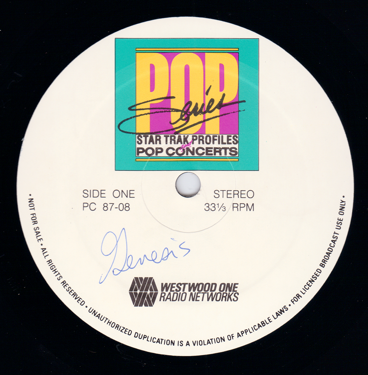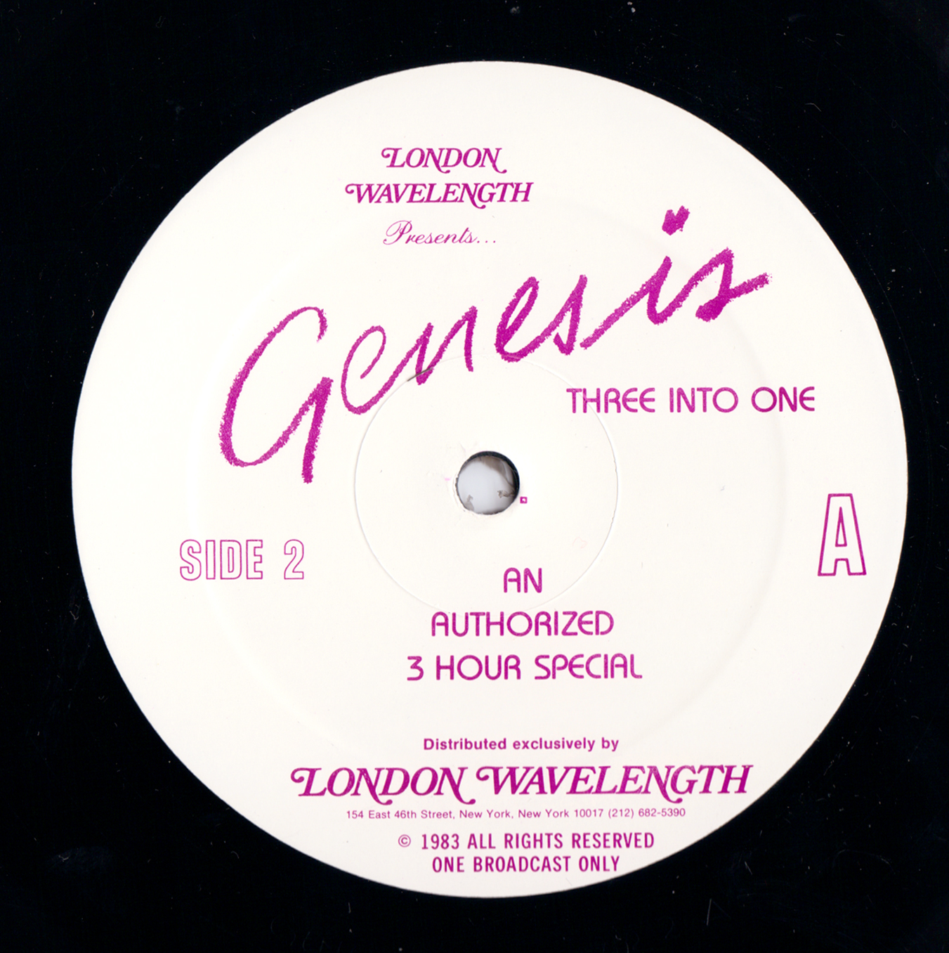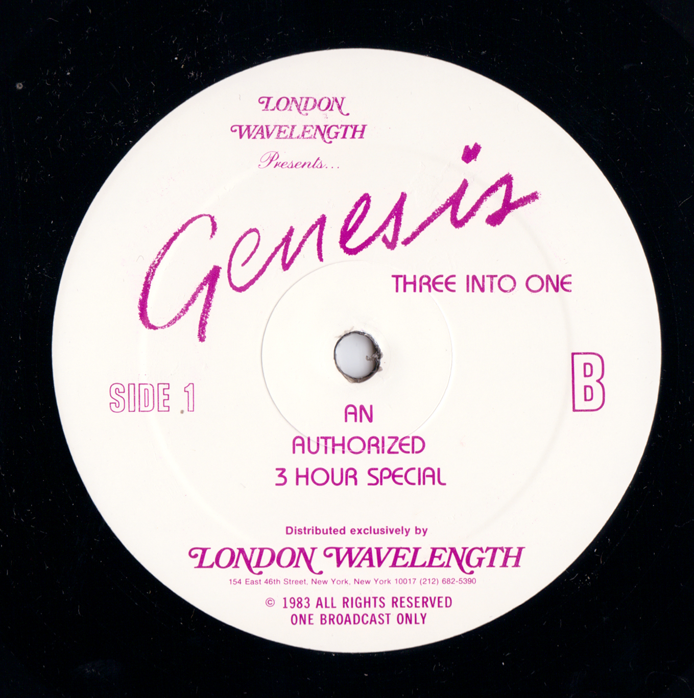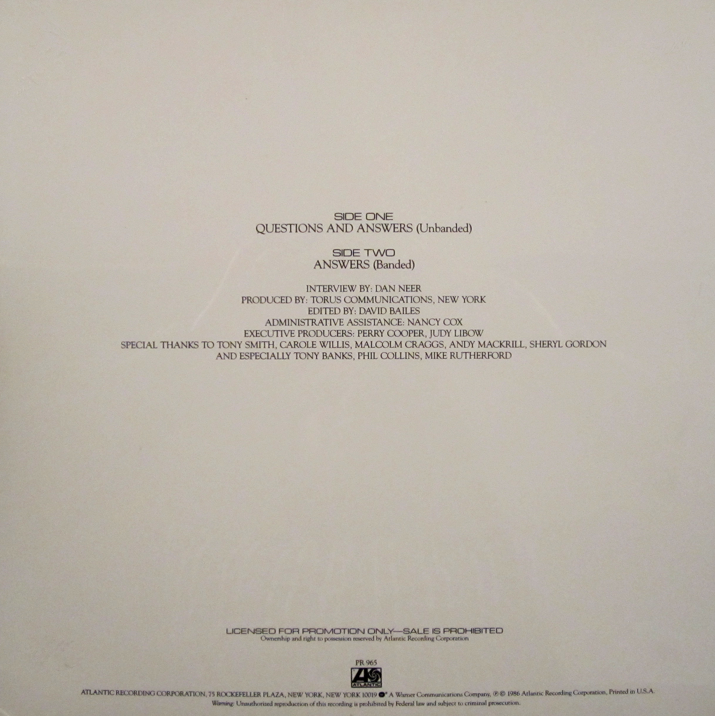 A two-hour hour radio show on two LPs hosted by Meg Griffin and featuring an unidentified male interviewer who provides a detailed history of the band while playing brief interview clips with all three members, plus Peter Gabriel and Steve Hackett. Commercial blocks and studio tracks are included.