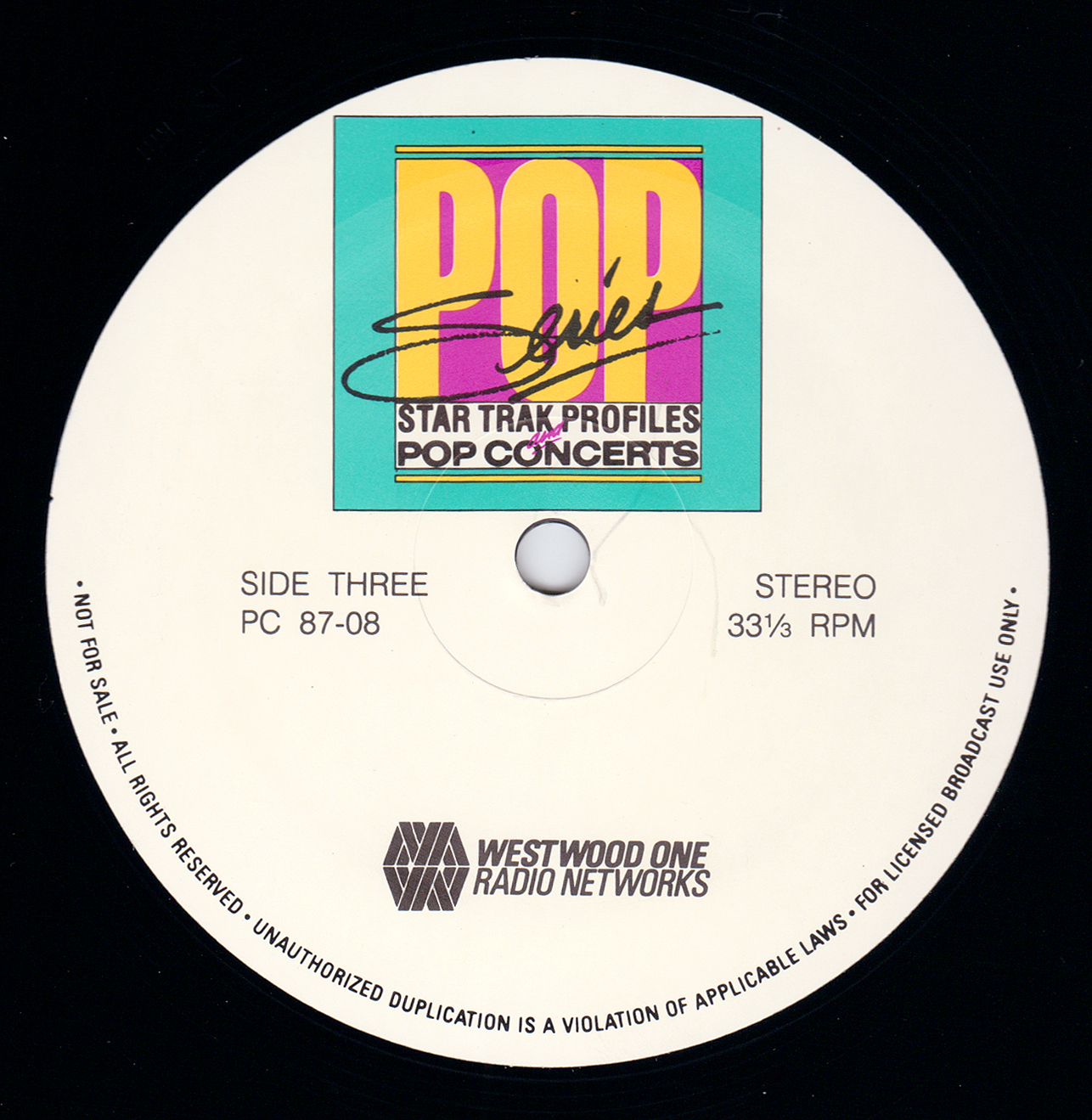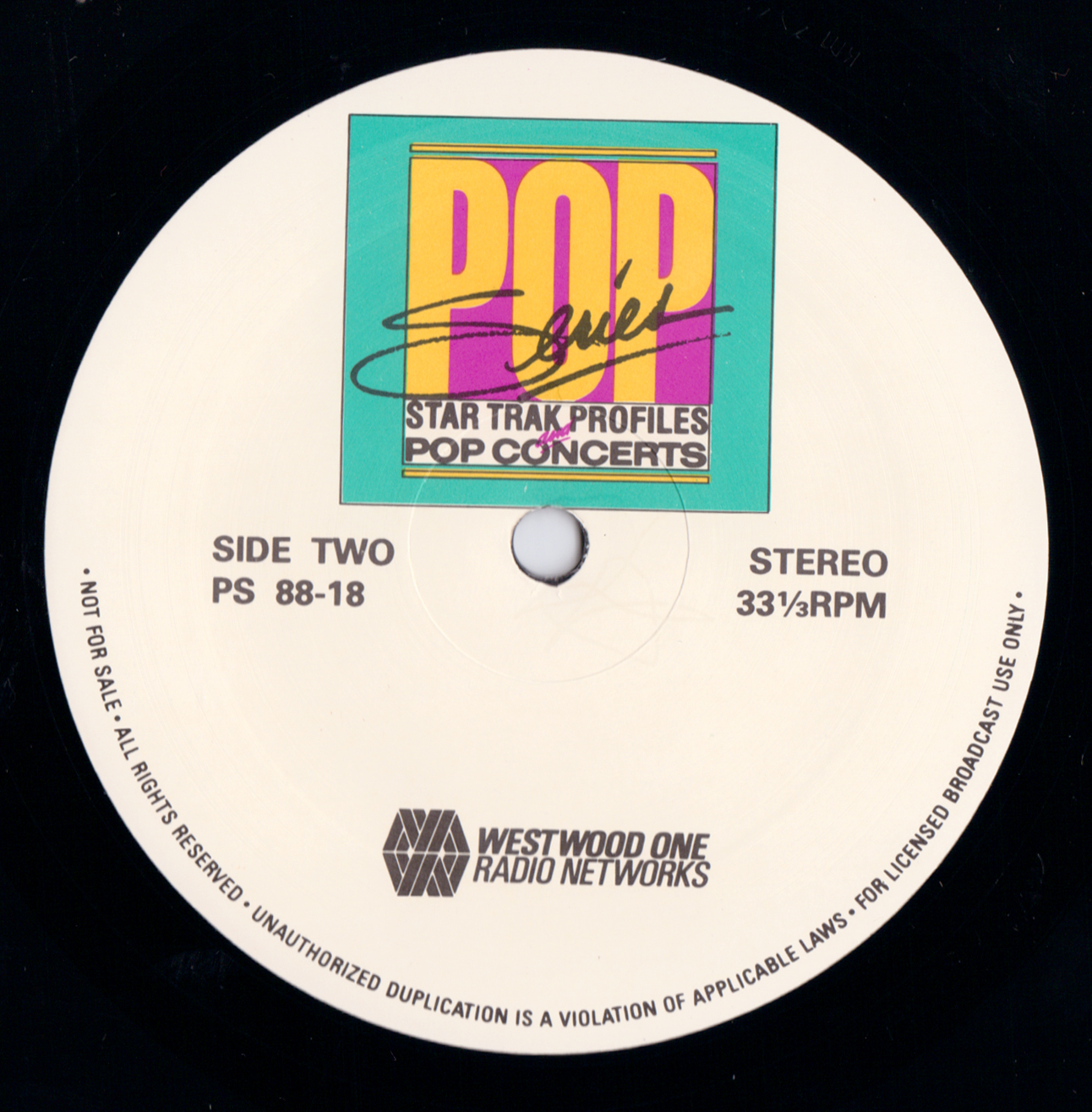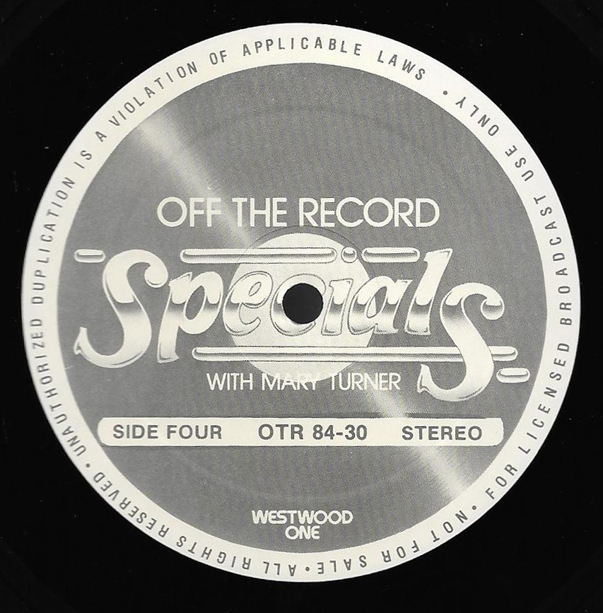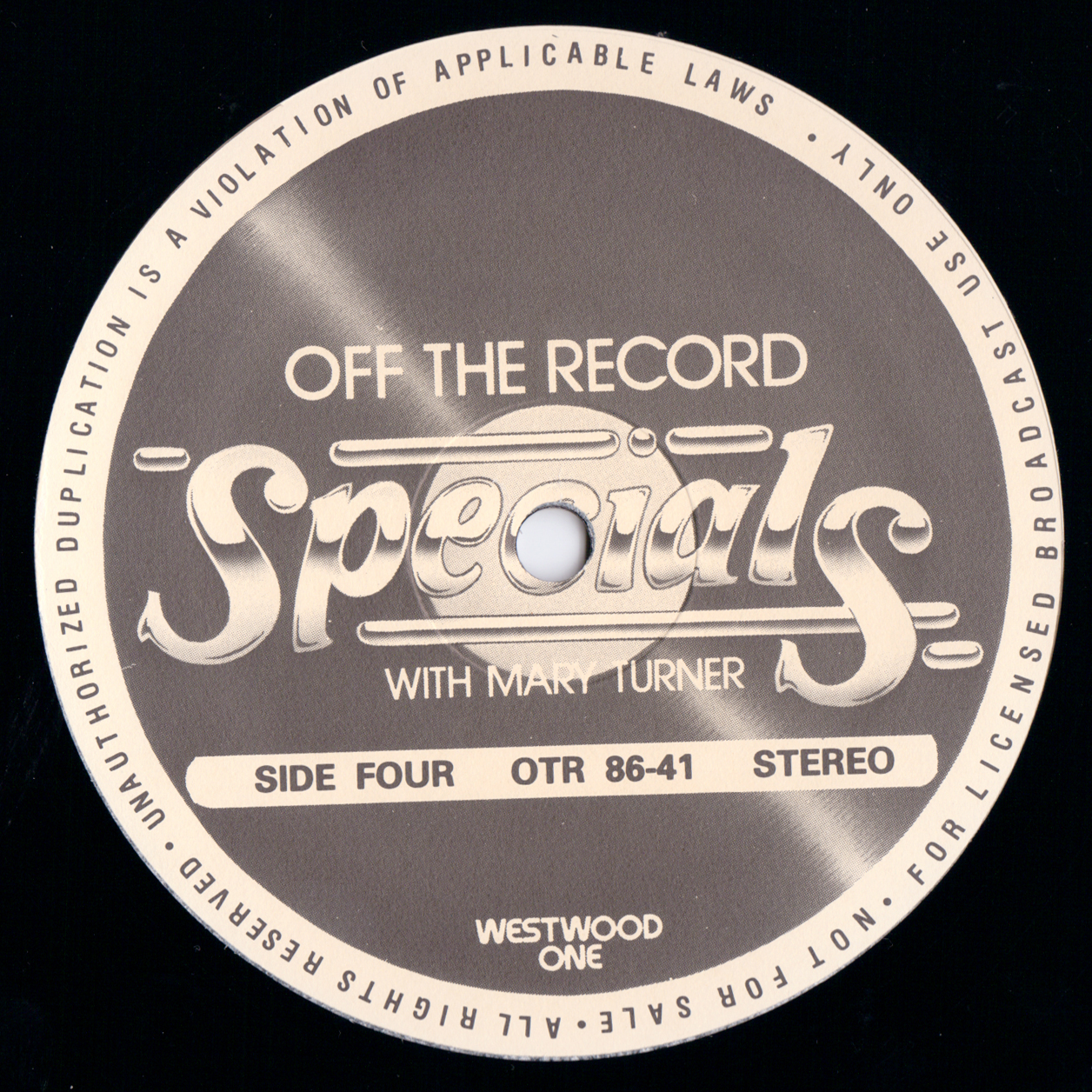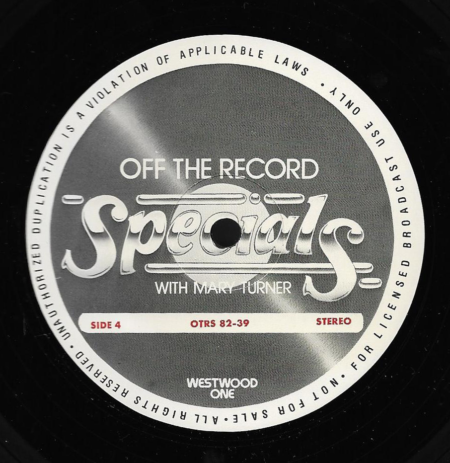 Another entry in the Off The Record Specials series. This show is exactly the same as the above listed OTRSP # 92-03, and thus is Part II of a two-part set. The contents, tracks and interview clips are identical, with only the commercial blocks changing slightly. Released on translucent vinyl. I do not have this item in my personal collection, and have never actually seen a copy for sale, but based on the programming schedule that Westwood One typically utilized this show would follow directly after OTRSP # 92-15.