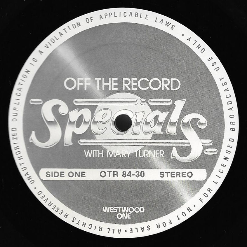 Another entry in the Off The Record Specials series. This show is exactly the same as the above listed OTRSP # 92-02, and thus is Part I of a two-part set. The contents, tracks and interview clips are identical, with only the commercial blocks changing slightly. Released on translucent vinyl. From my personal collection.