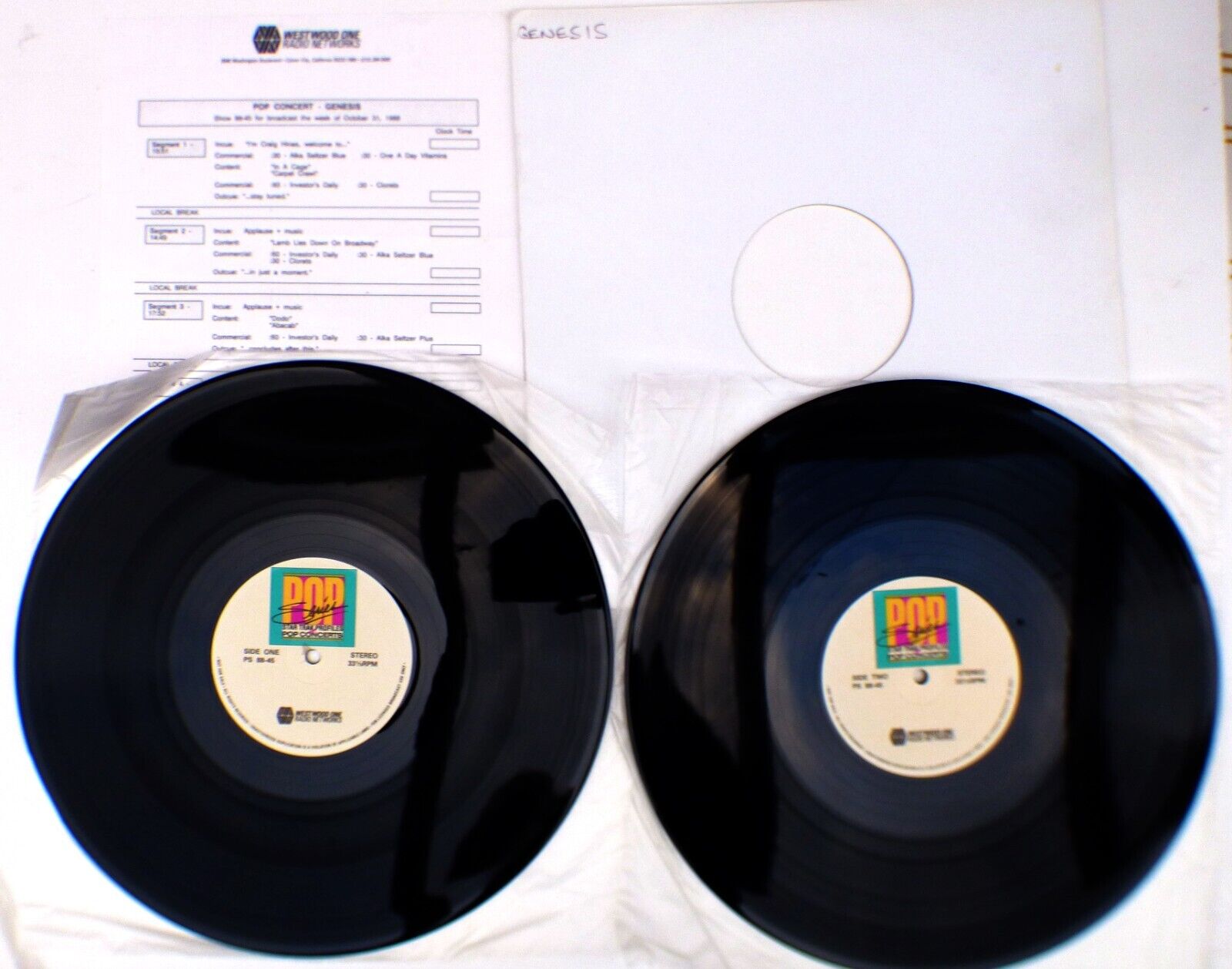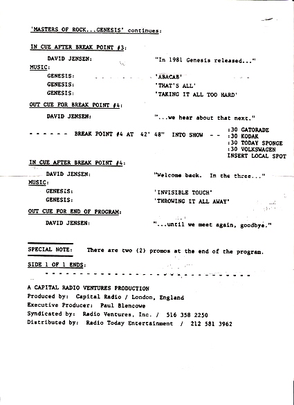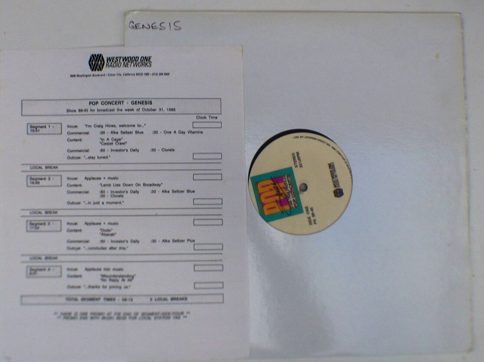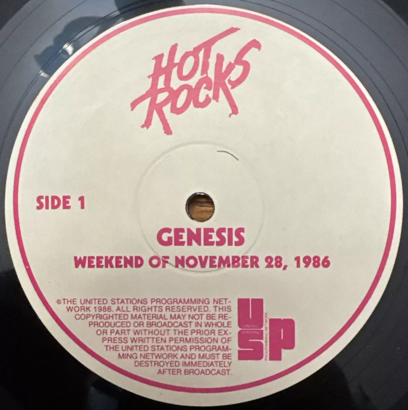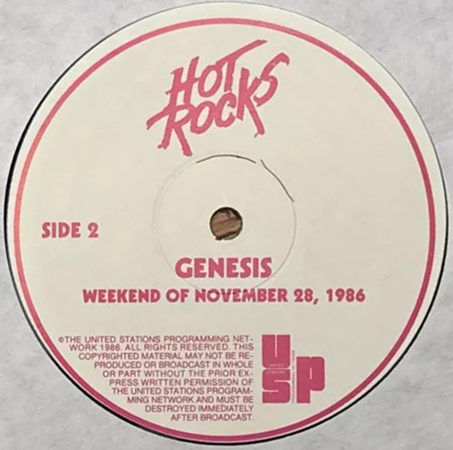 This show is one hour in length, but unlike most radio programs of the day which compressed the hour show into 30 minute sides of one LP, this show comes on two LPs. The show features several interview segments covering topics such as the history of the band, Genesis without Peter Gabriel and Steve Hackett and Tony Banks solo projects.