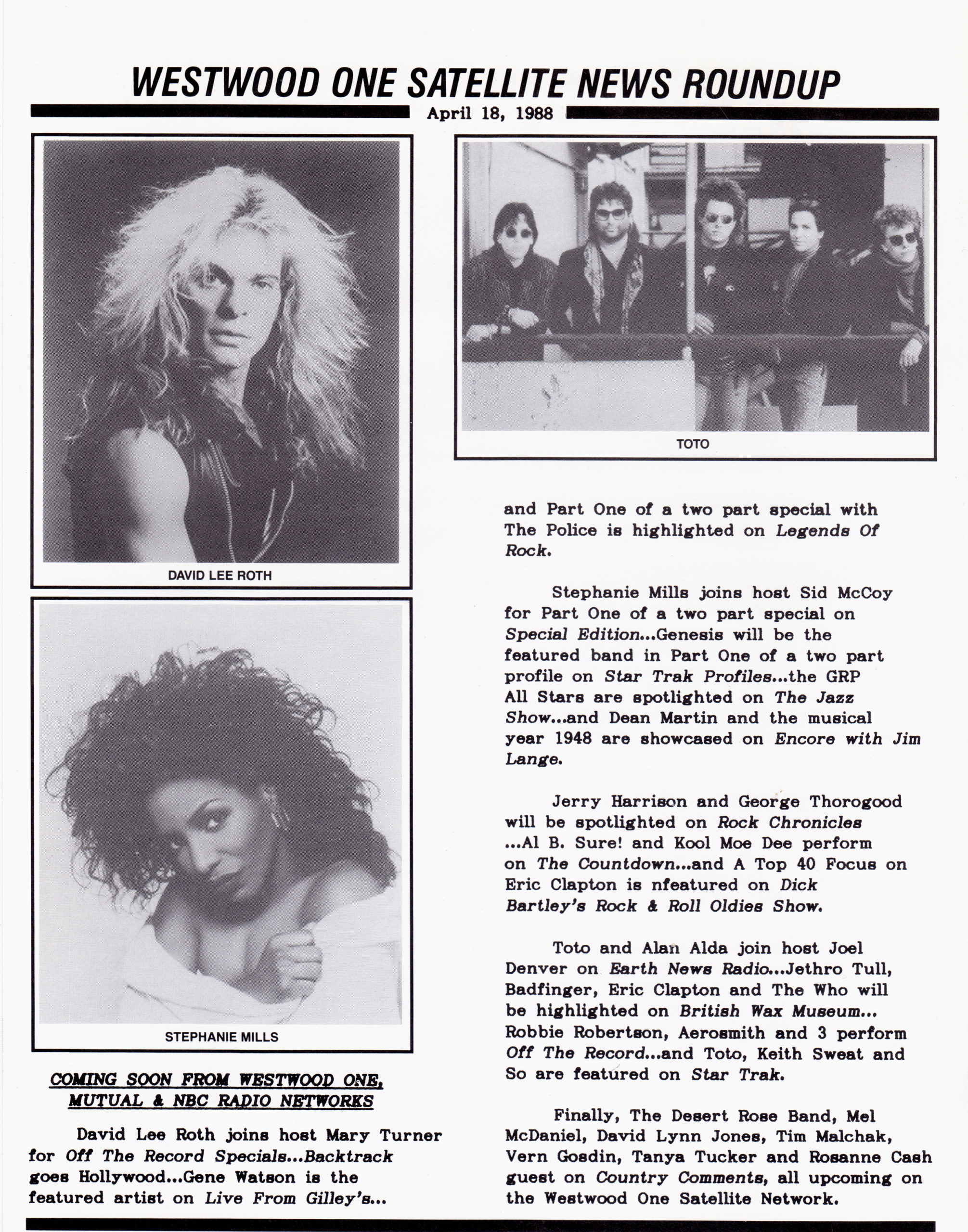 The tracks on this LP consist of Turner giving a brief explanation of what the next track contains, followed by brief interview segments from numerous artists. The artists featured on this single LP are Sting (of The Police), Bonnie Raitt, LaRoux, Mike Rutherford, Huey Lewis, and Rik Emmett (of Triumph). Mike’s four interview bits all appear on Side B. Any music featured was played behind the artist talking. Lastly, there are no commercial blocks presented on this LP.