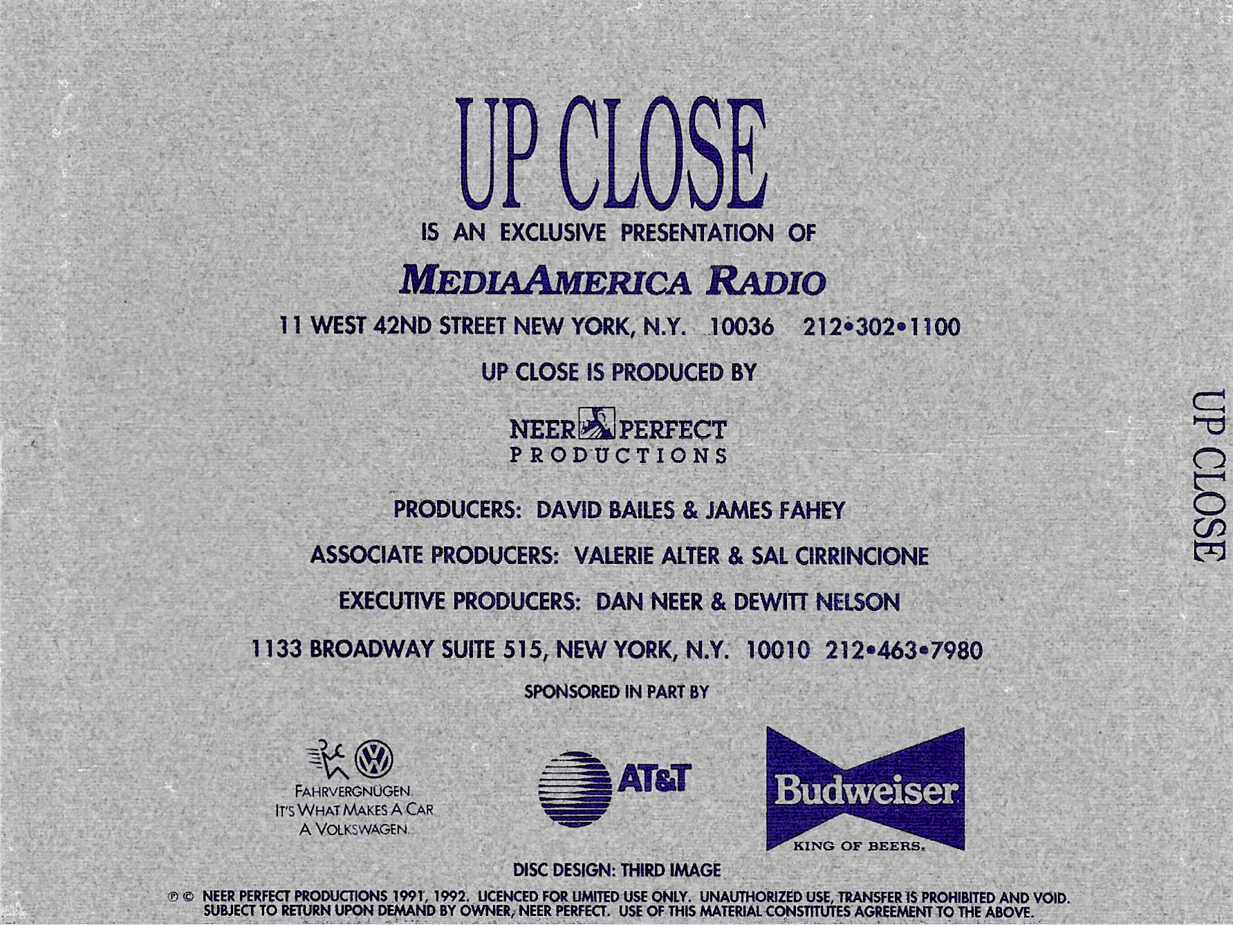 Contains original commercial blocks. This is Part I of a two-part show; info on Part II can be found below. This show, like the above listed Up Close from 1988, was sent to radio stations in a “fatboy” double compact disc case. From my personal collection.