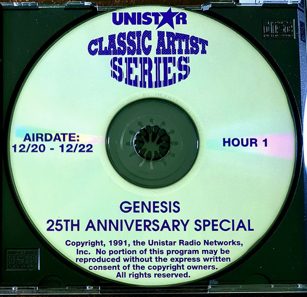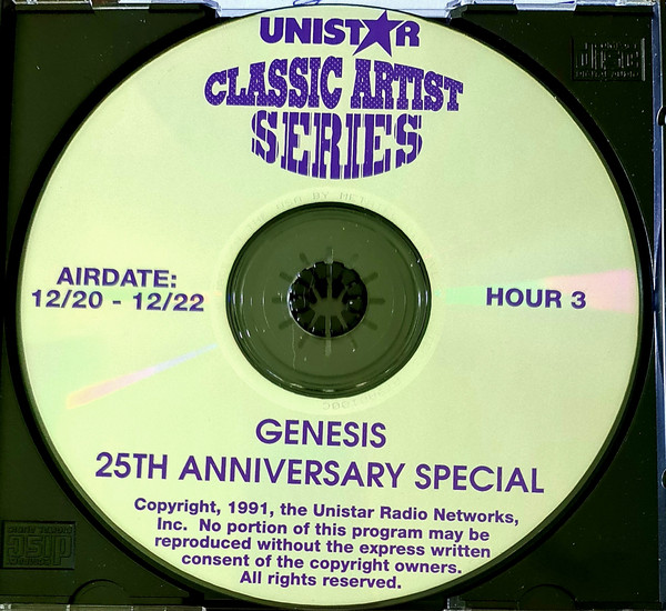 This is another interview with Phil Collins, Mike Rutherford and Tony Banks “in the studio” with nationally syndicated DJ / host Redbeard. For this outing, the boys discuss the 1983 self titled album GENESIS on the eve of what would be the twentieth anniversary of the album. Tracks from the album are played, and there are commercial blocks as well. There are five tracks on the CD. From my personal collection.