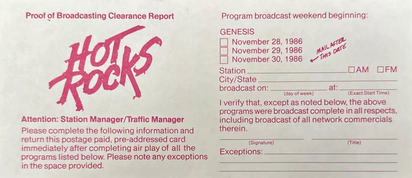 As previously mentioned, David Dunnington’s Complete Guide to Live Genesis Radio Shows (which can be found HERE) is a great source for live Genesis radio shows, but it lacks information on Phil Collins solo concert shows. What it lacks on the Genesis side of things is a complete listing of the pre-FM radio interview shows which have aired throughout the years. I have attempted to make up for that with this page.