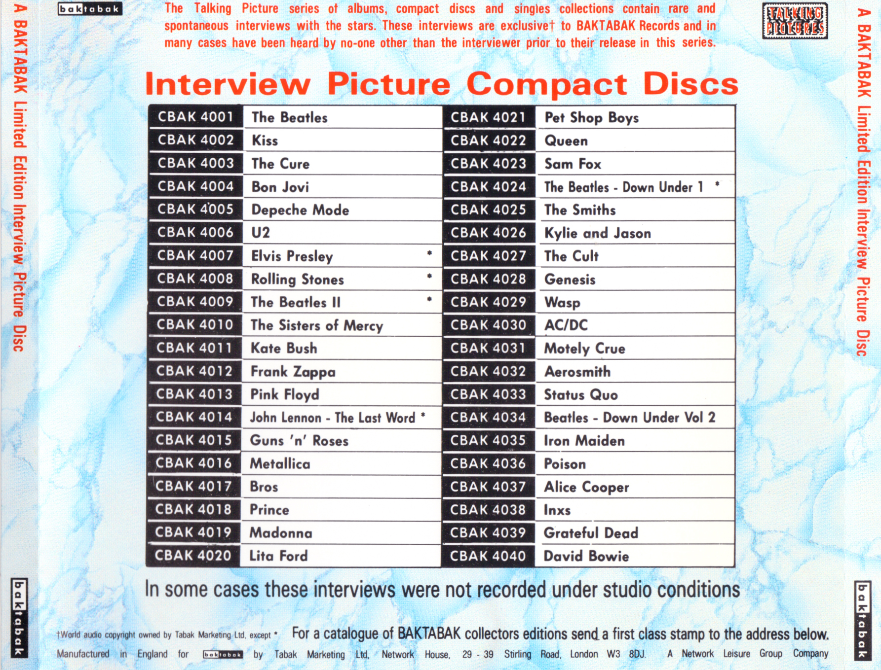 There is not much information available for this entry as I found it on Discogs with no release date listed other than 1997. It appears to be another in a long line of interview specials featuring music and discussion. I do not have this item in my collection.