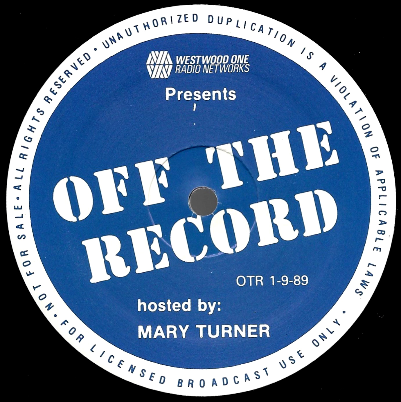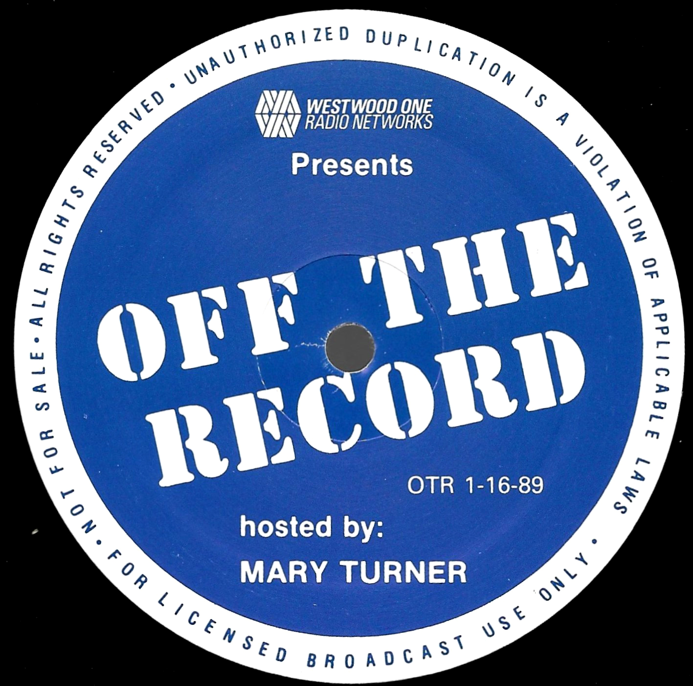 Again, the single LP version of this show, known only as Off The Record, was a daily mini-show with ten (10) interview segments on each side of the LP, all introduced by Turner, for a total of twenty (20) interview segments. Each artists appeared several times on one side of the LP.