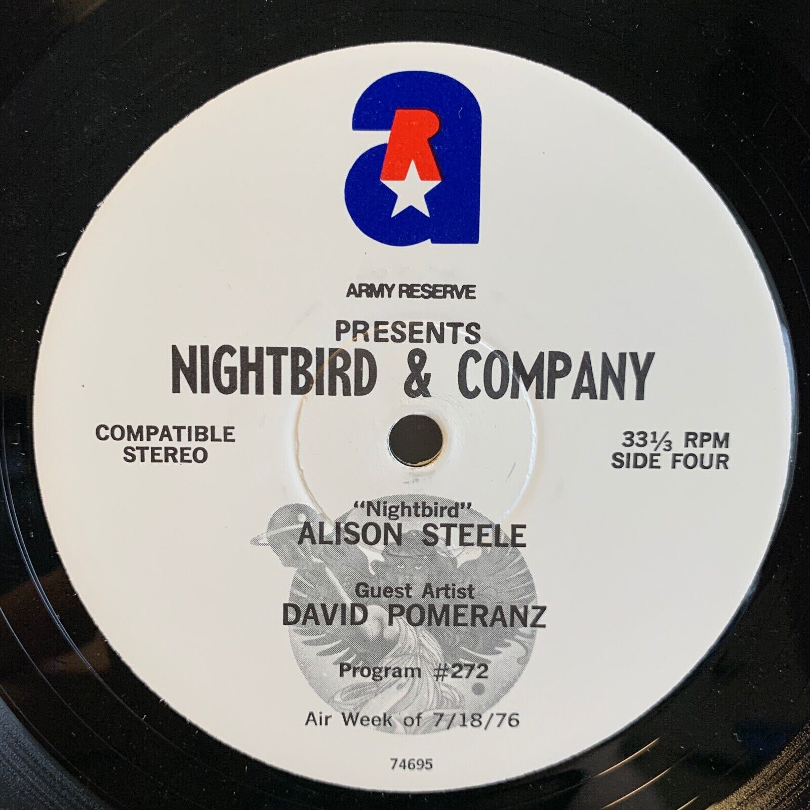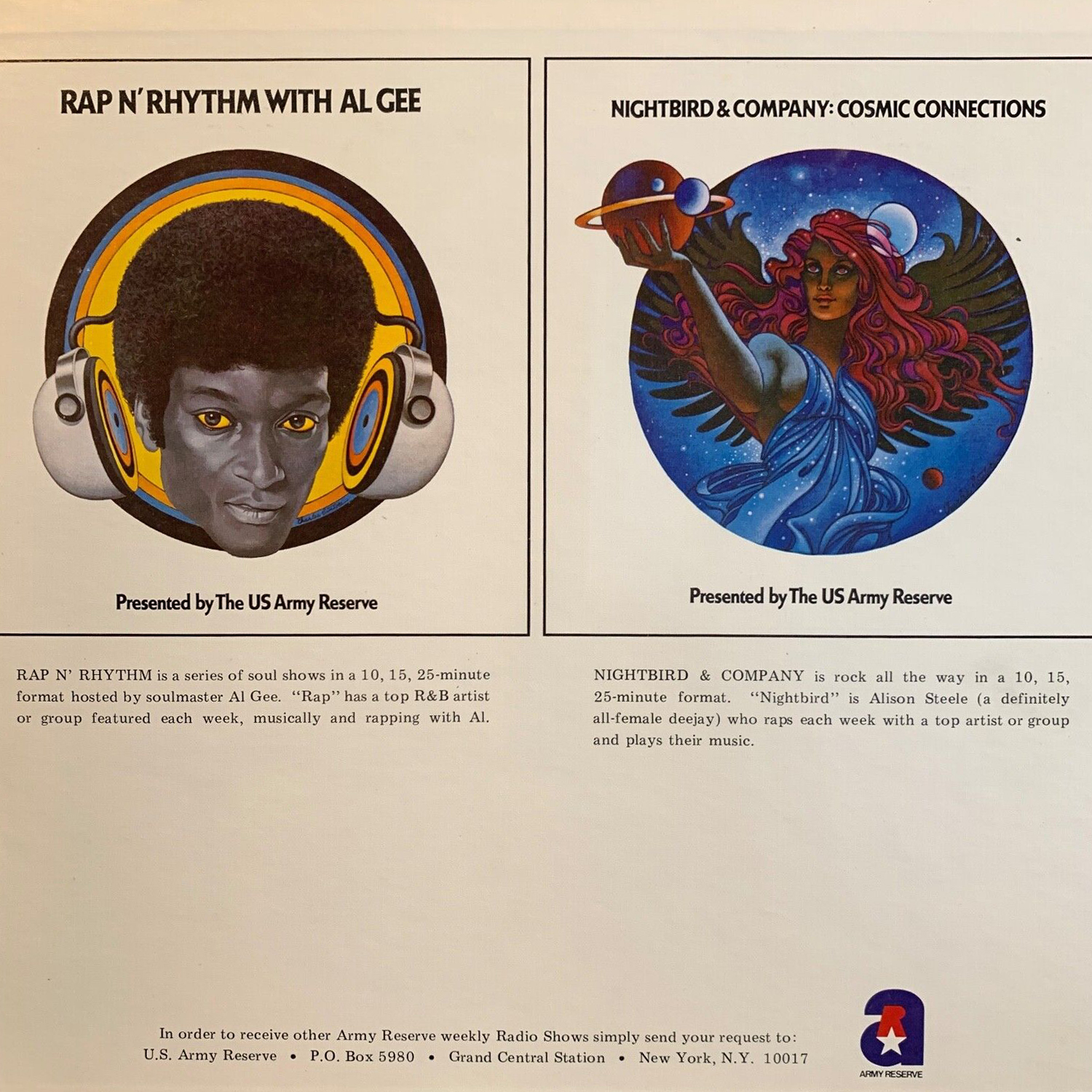 One of the earliest radio shows I’ve seen dates all the way back to 1976. This double LP show is from the U.S. Army Reserve, and features a weekly radio music and interview show with host Alison Steele, also known as Nightbird.