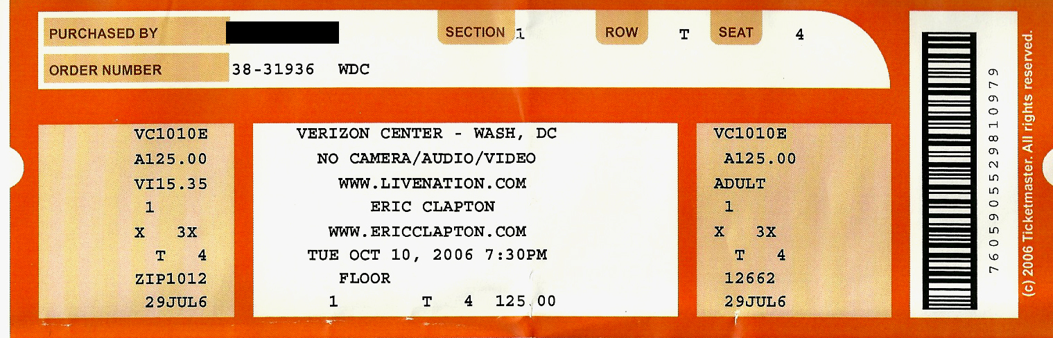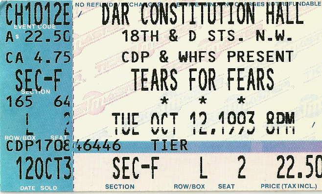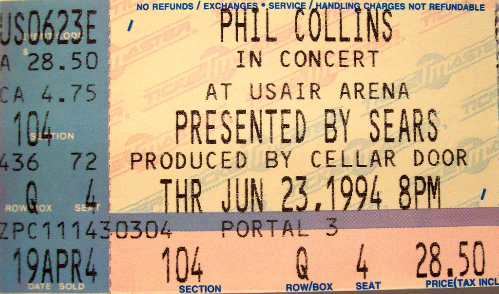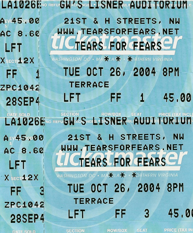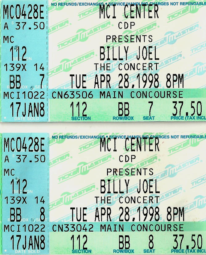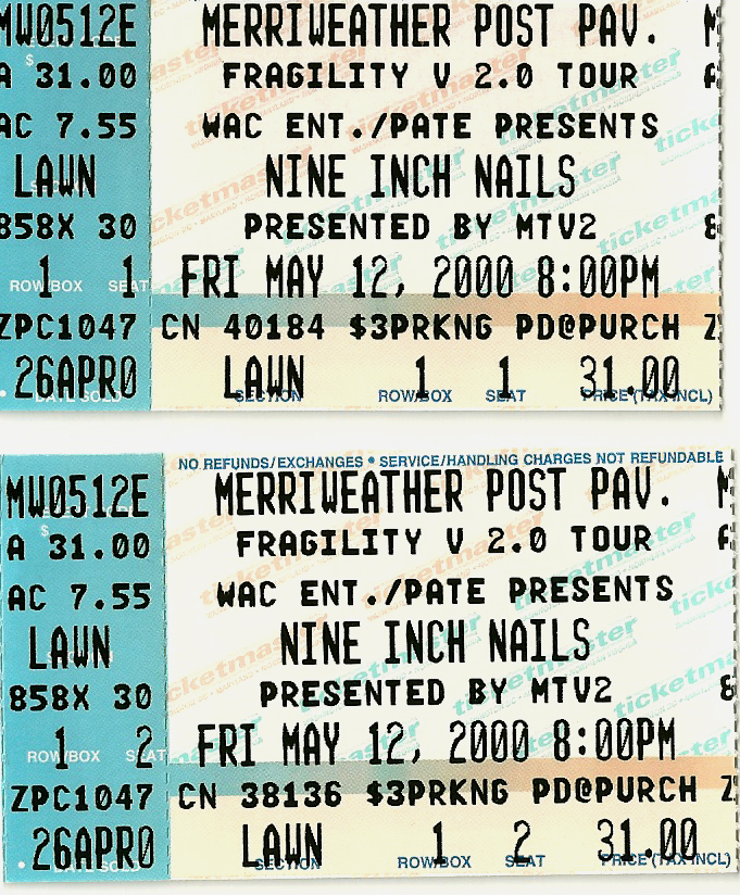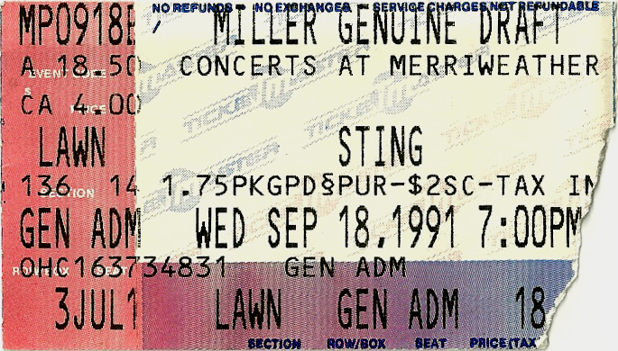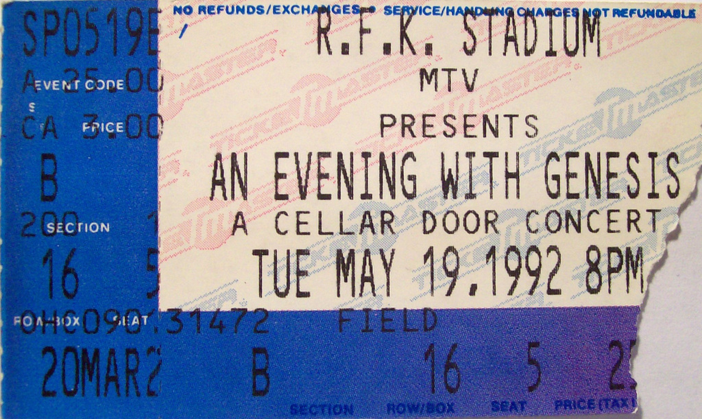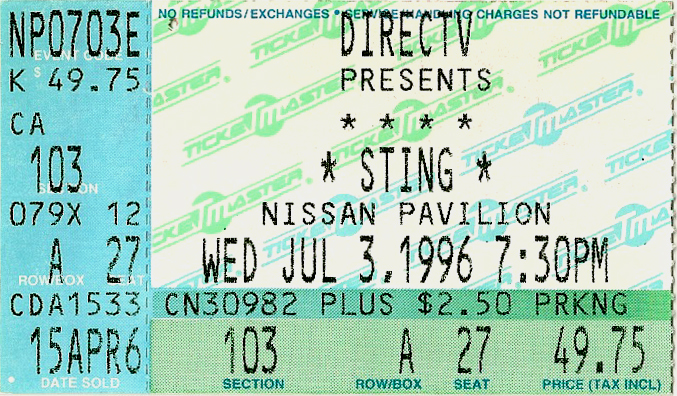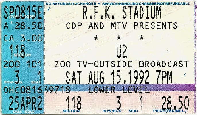For a long time, I stored these tickets in the CD booklets for their respective tours, but when I created this site, I took the time to scan each one for use here. Check out how much ticket prices have increased through the years, and remember, the prices are per ticket.