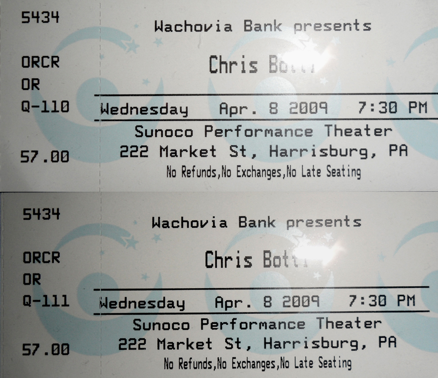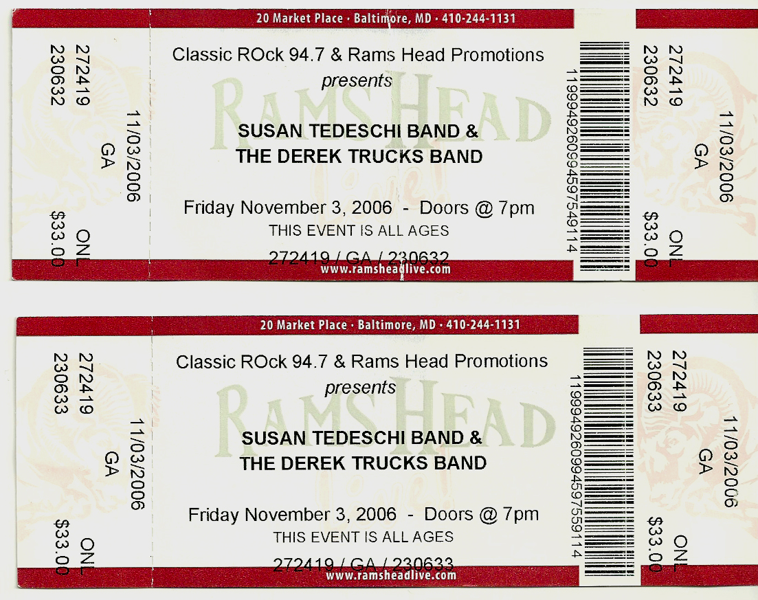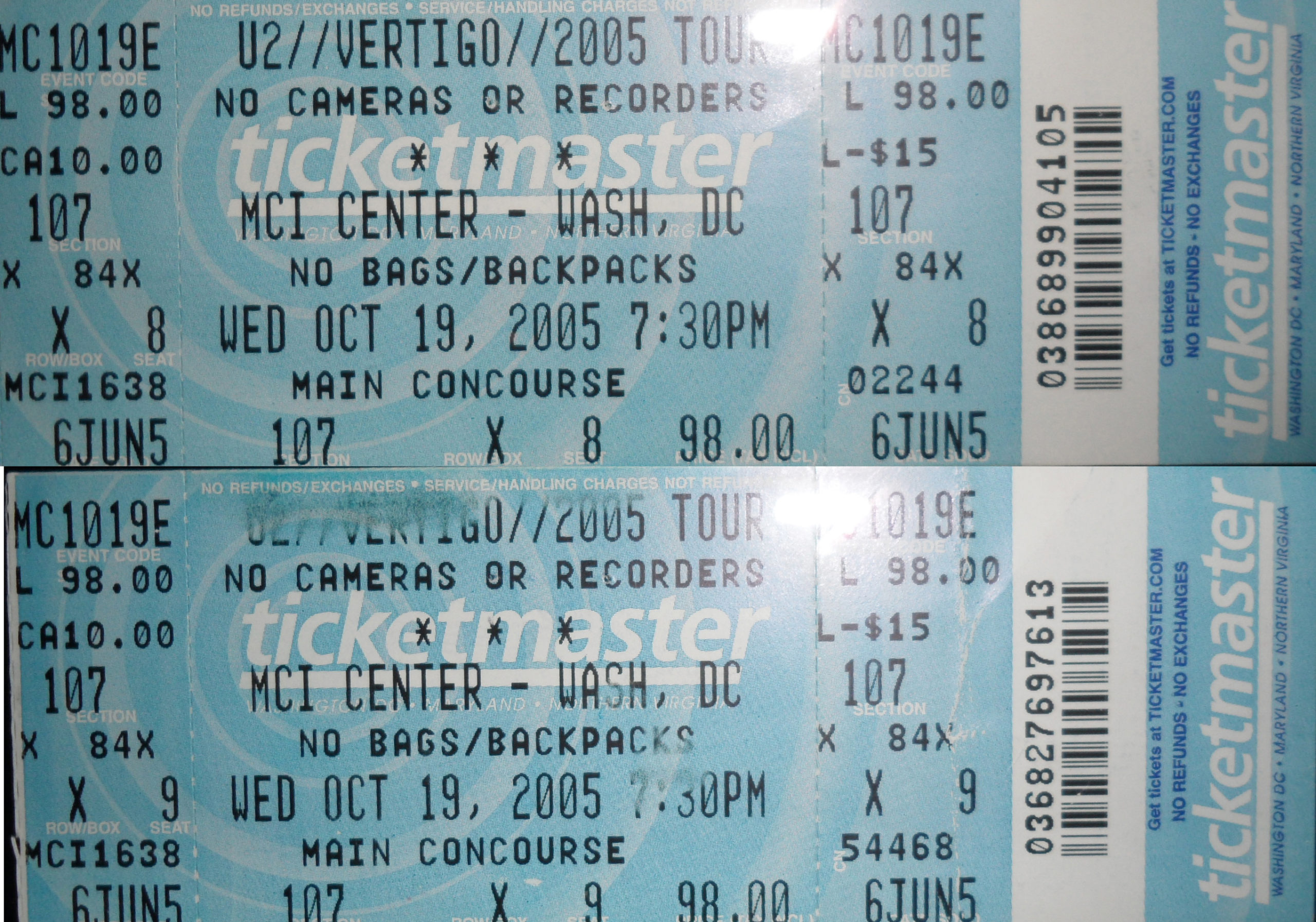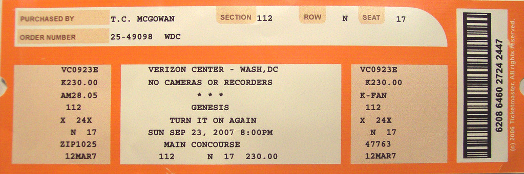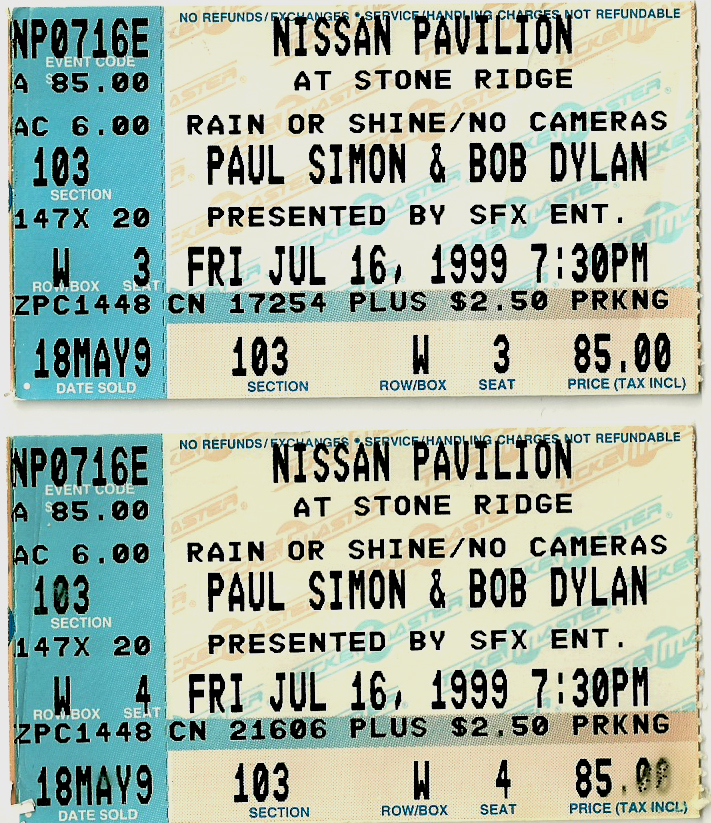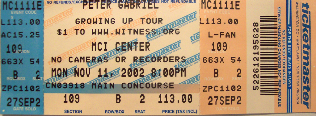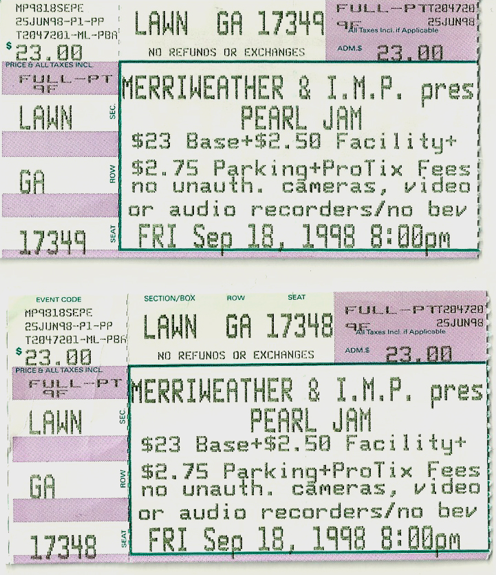 For a long time, I stored these tickets in the CD booklets for their respective tours, but when I created this site, I took the time to scan each one for use here. Check out how much ticket prices have increased through the years, and remember, the prices are per ticket.