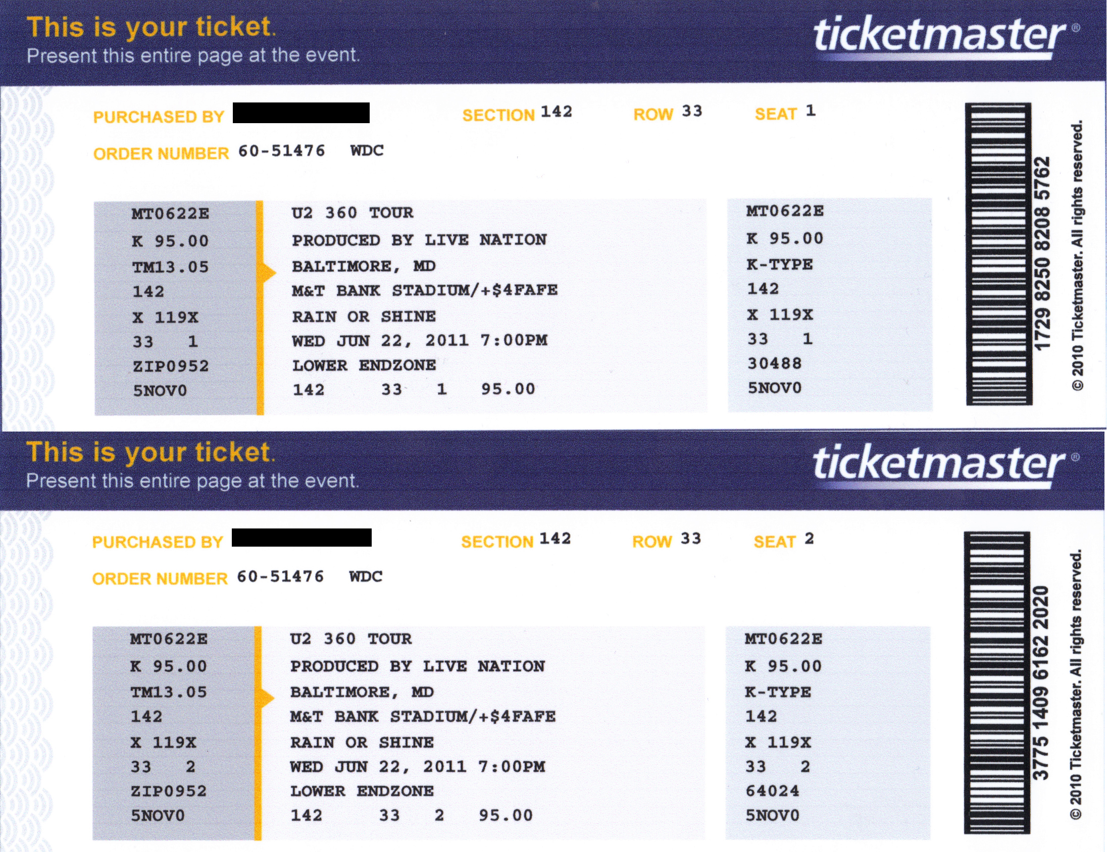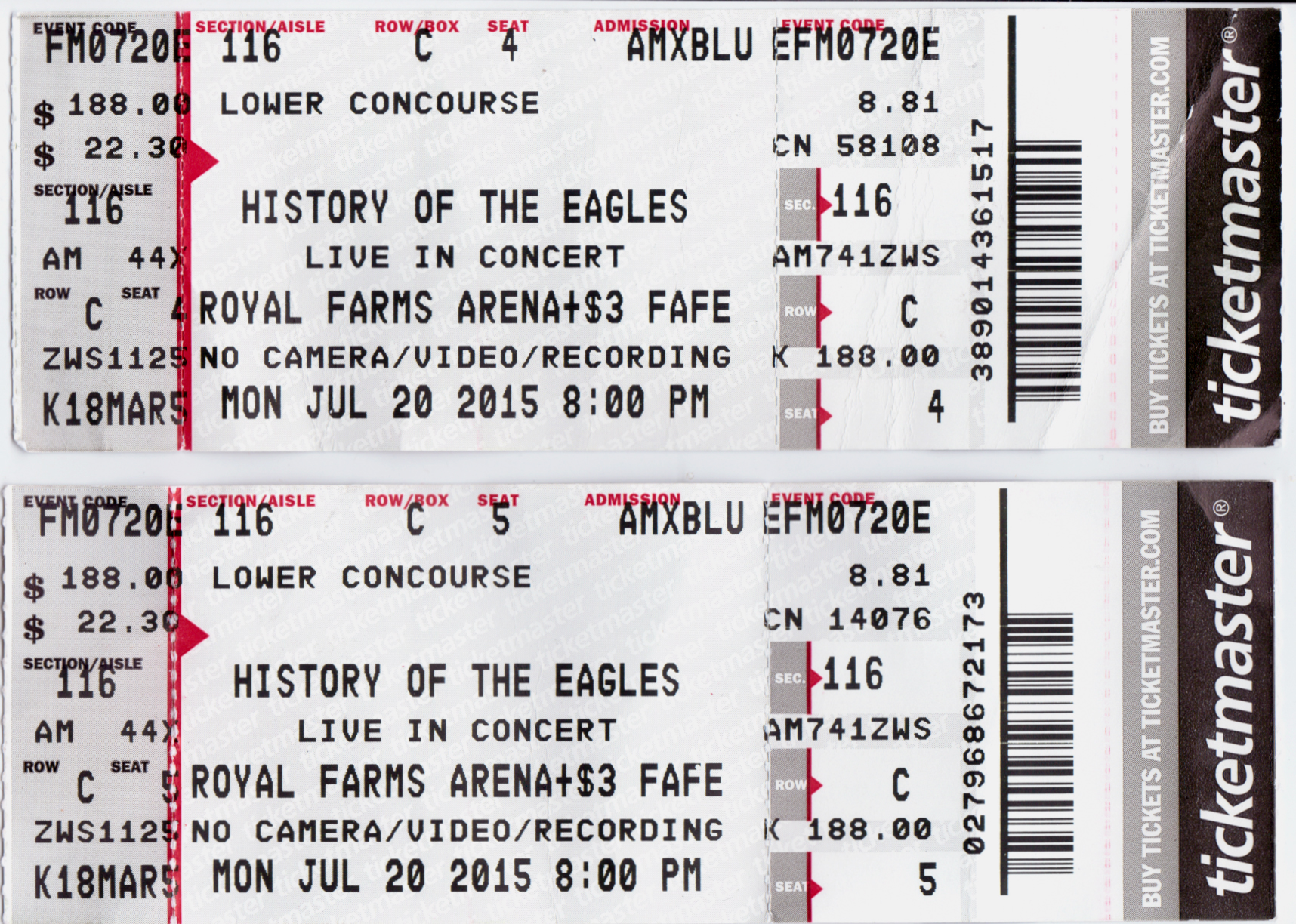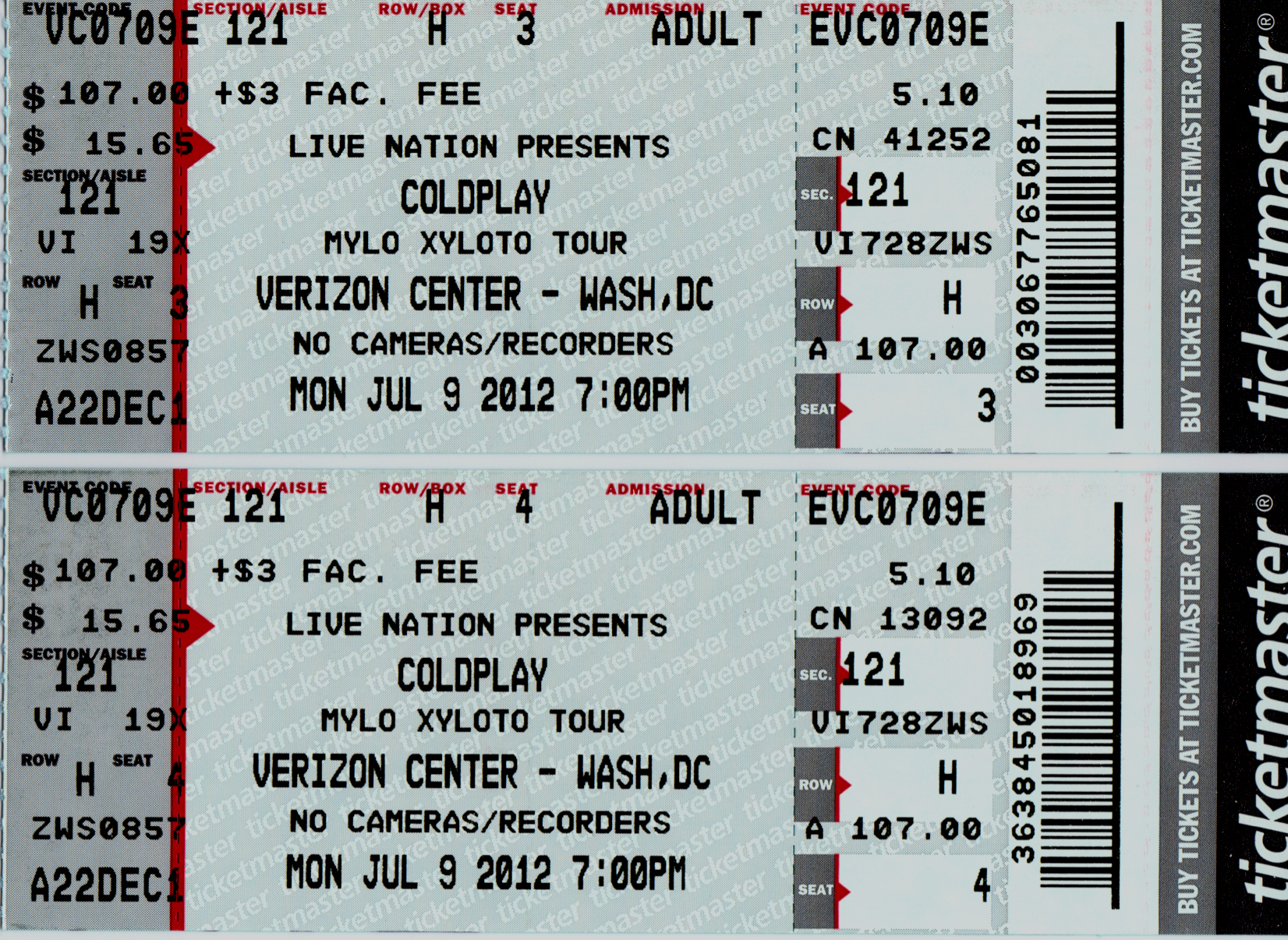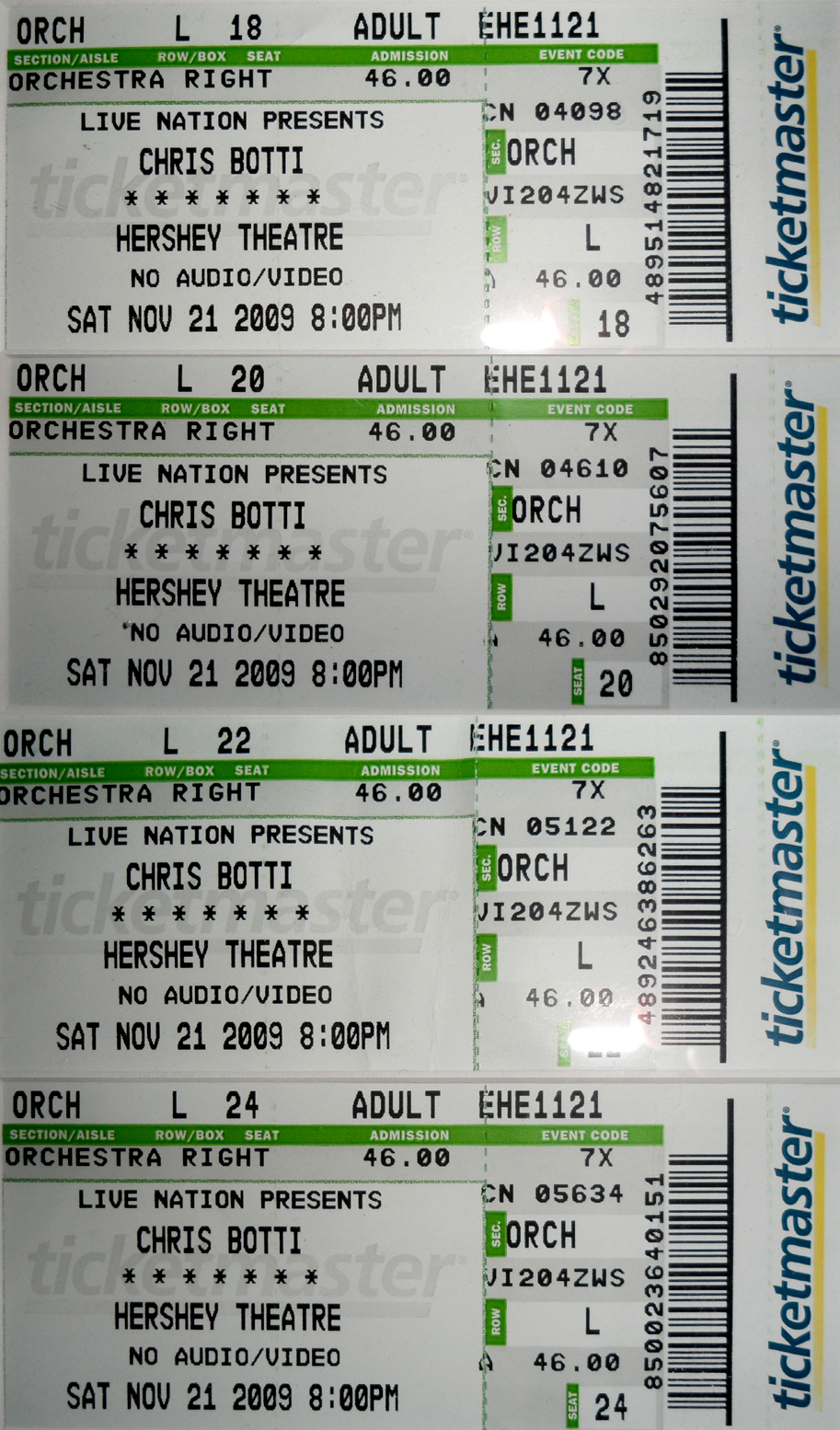 I attended many of these concerts with my then girlfriend / now wife, (and sometimes our two daughters) thus some shows list two or more seats and not just one.