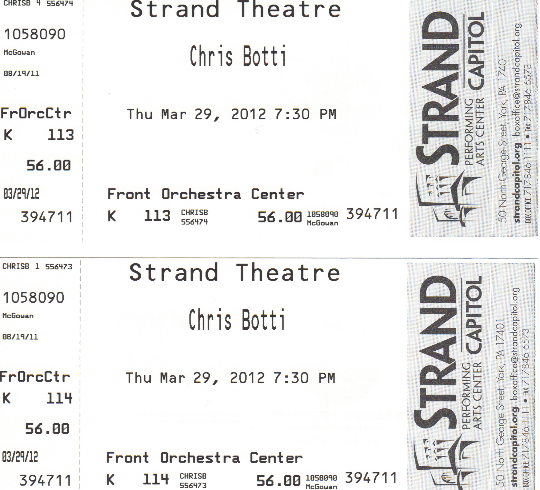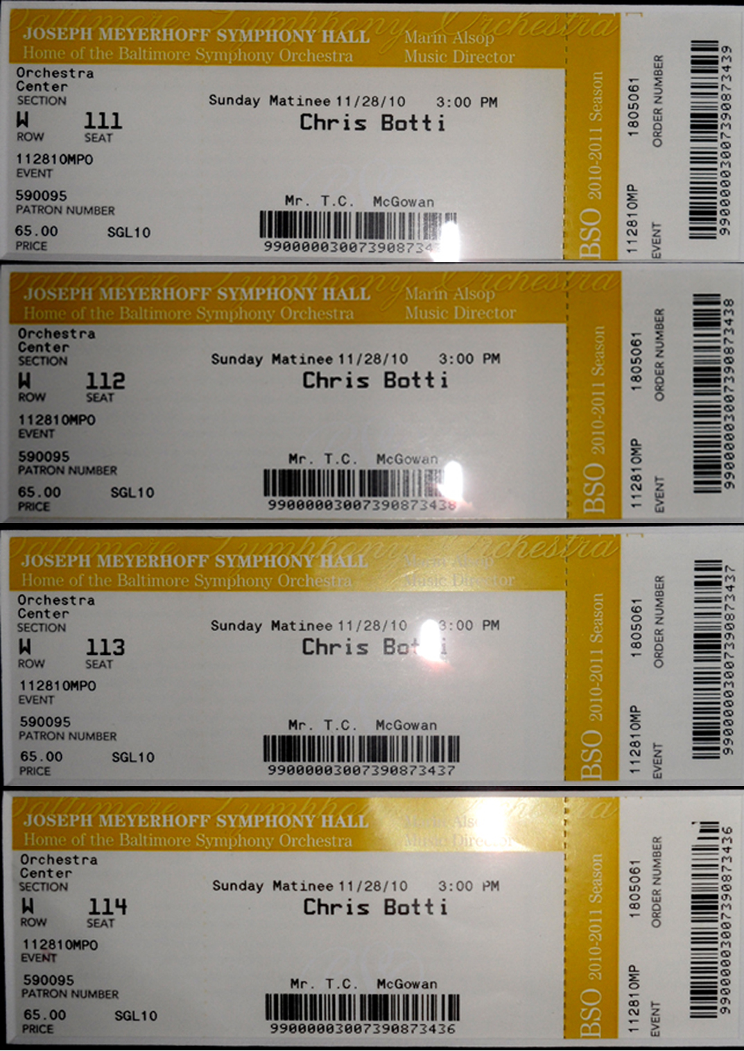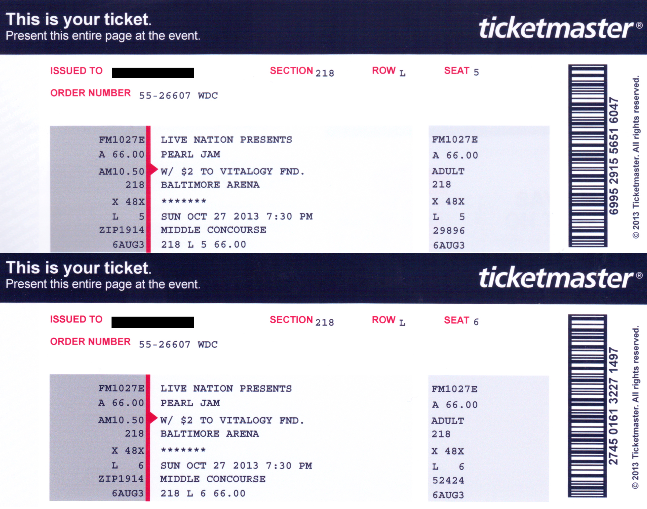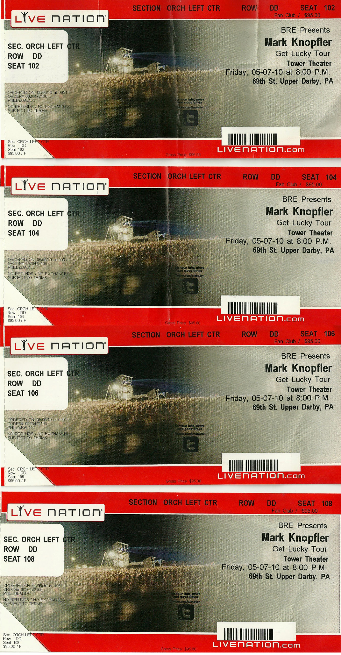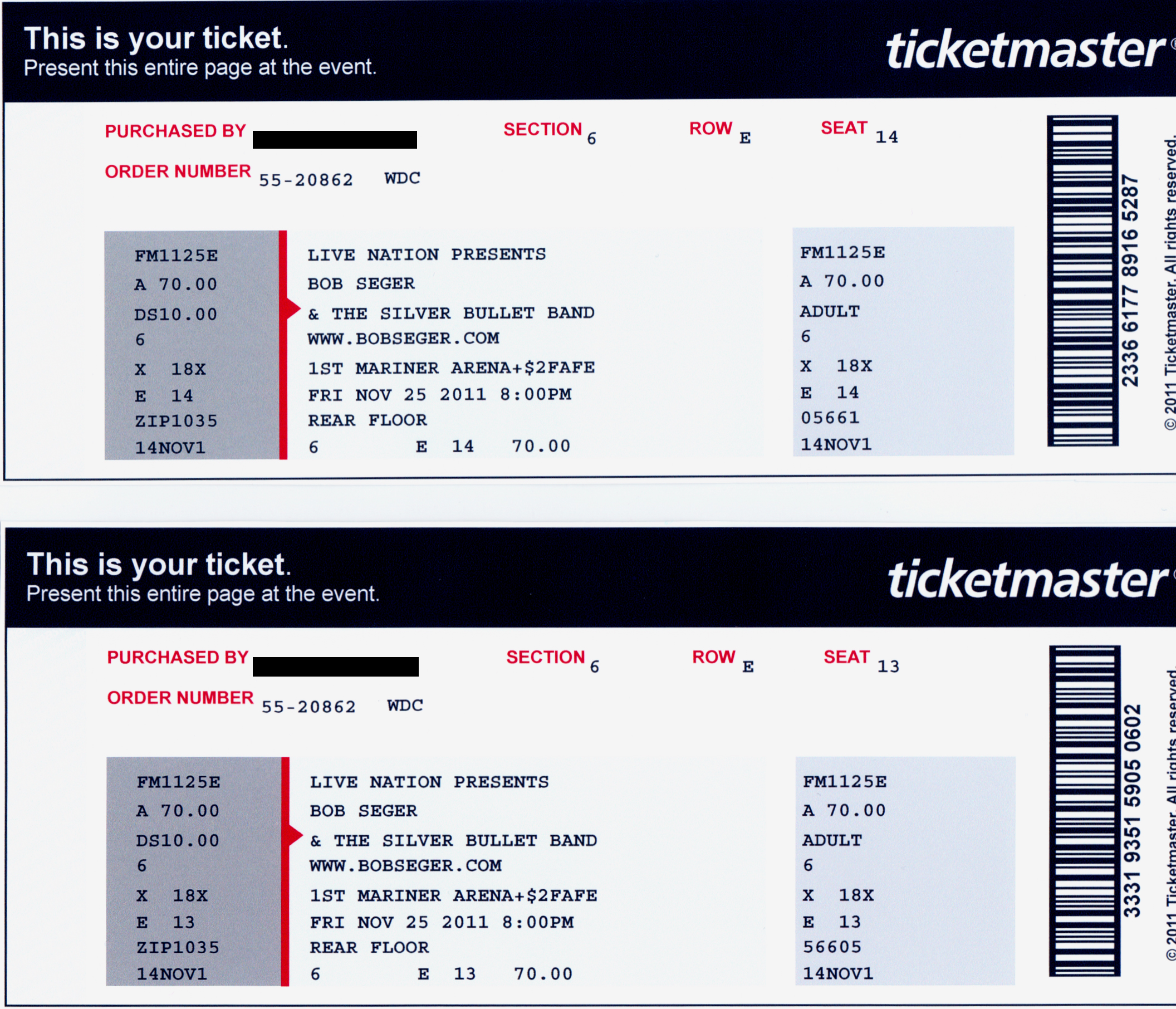 I attended many of these concerts with my then girlfriend / now wife, (and sometimes our two daughters) thus some shows list two or more seats and not just one.
