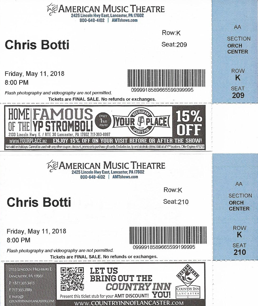 Seats: 209, 210