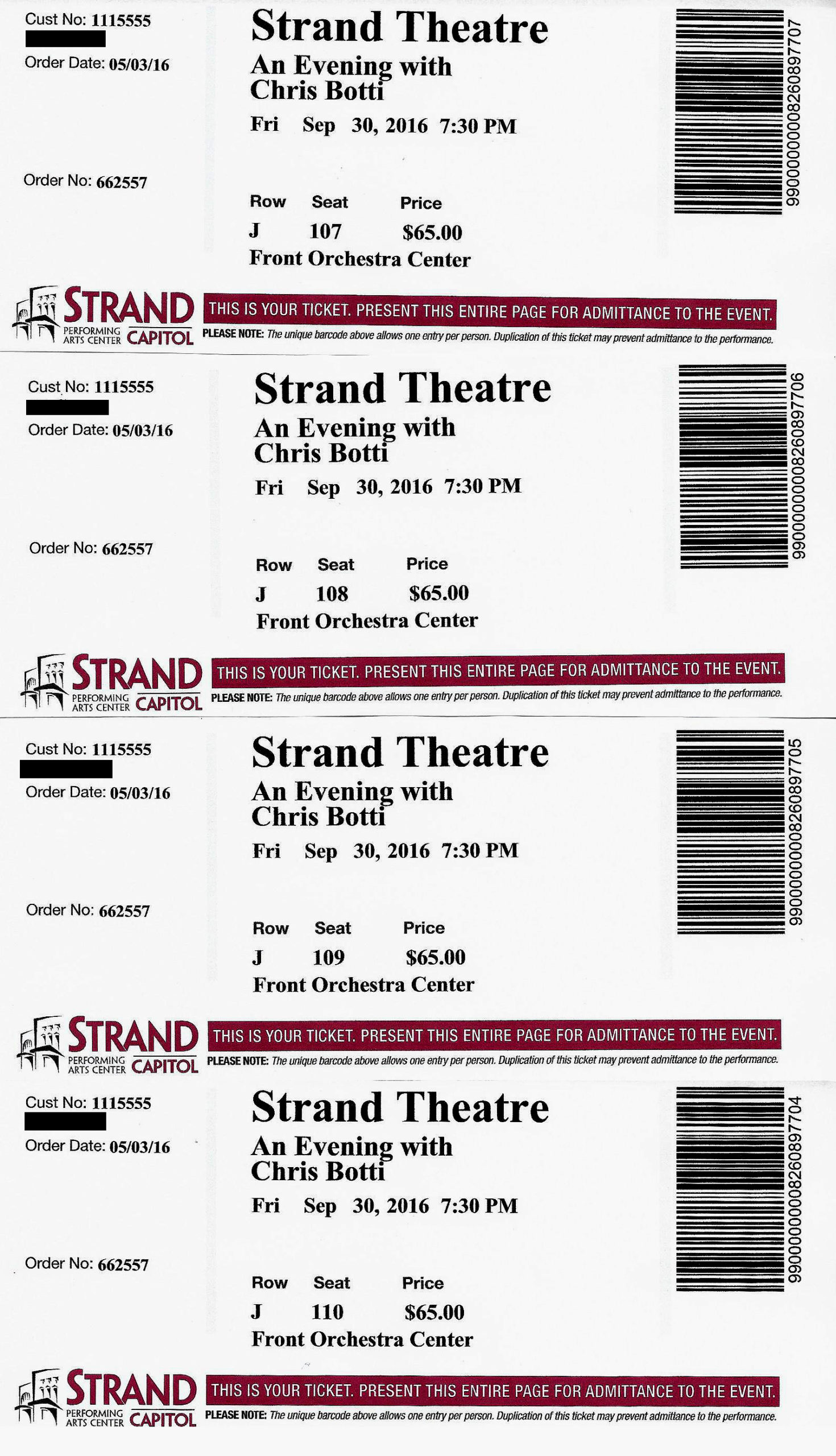 Seats: 107, 108, 109, 110