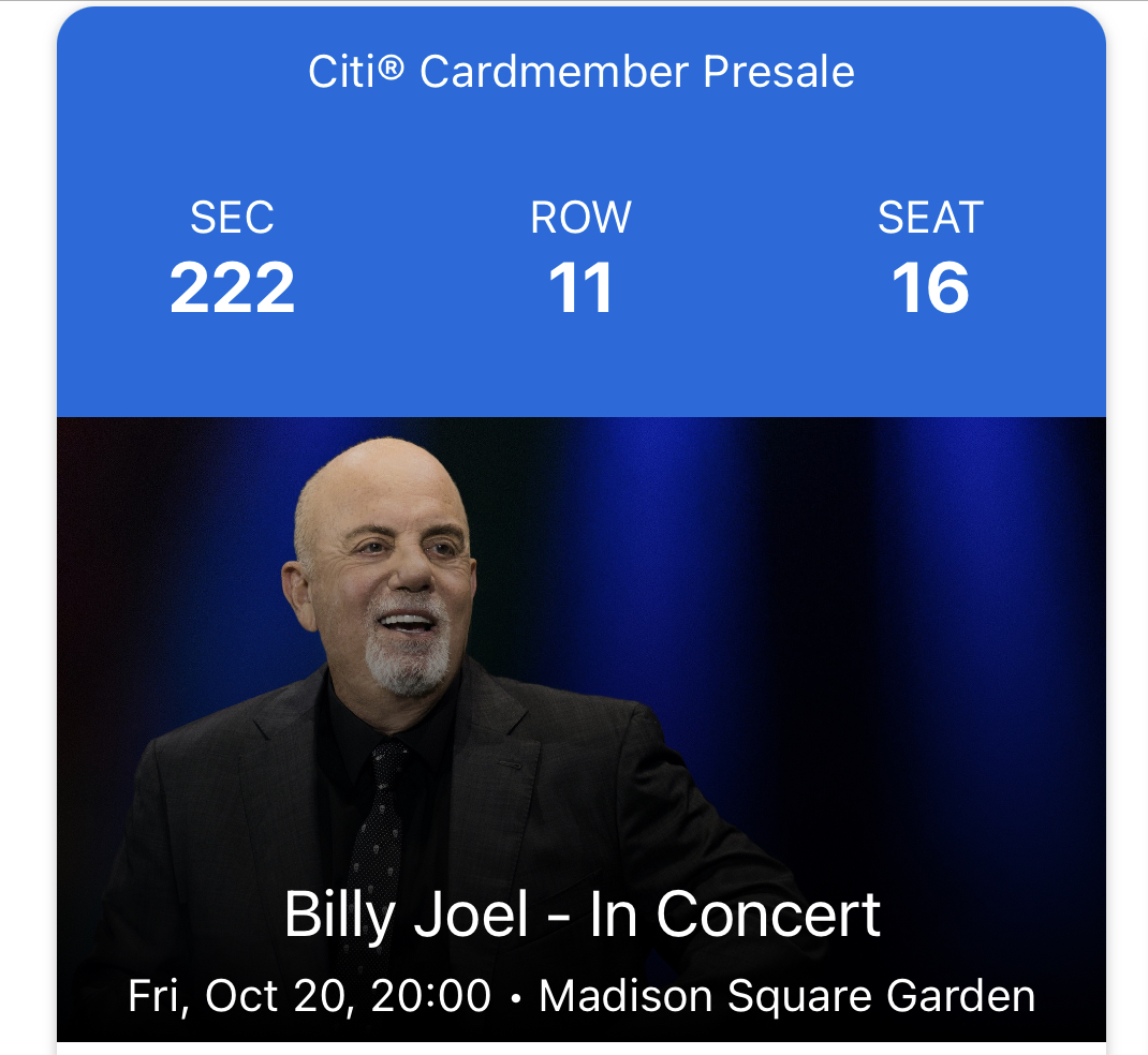 My first time at MSG. I took my wife to see her favorite artist. Tickets were digitally presented on our phones; no scans are available.