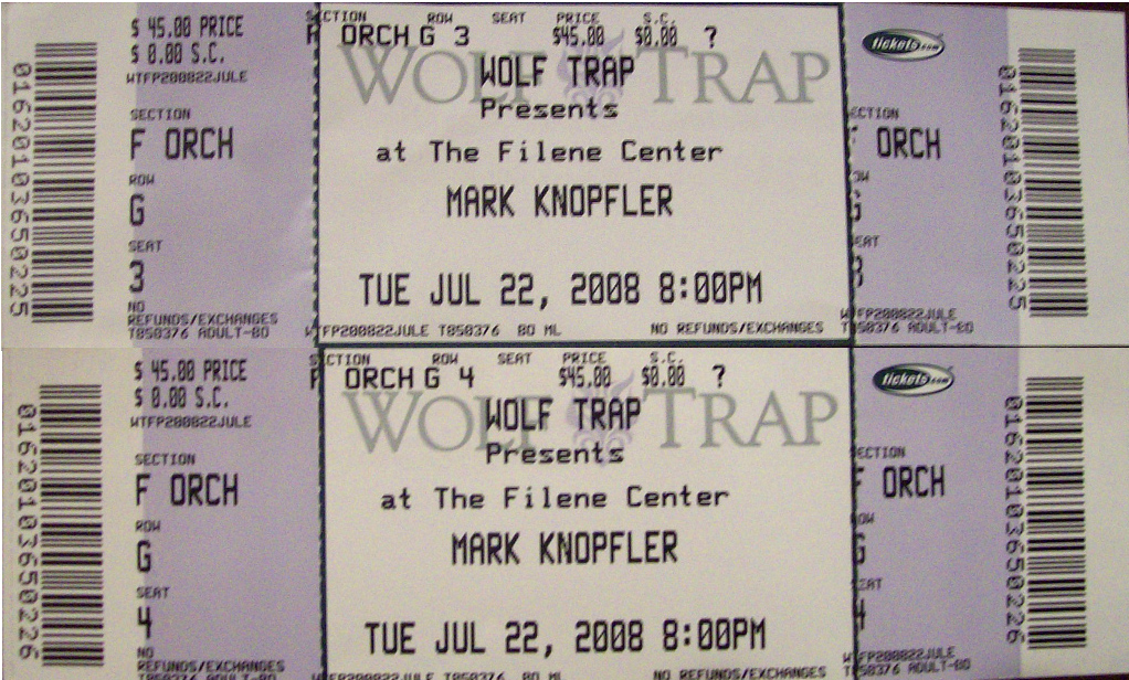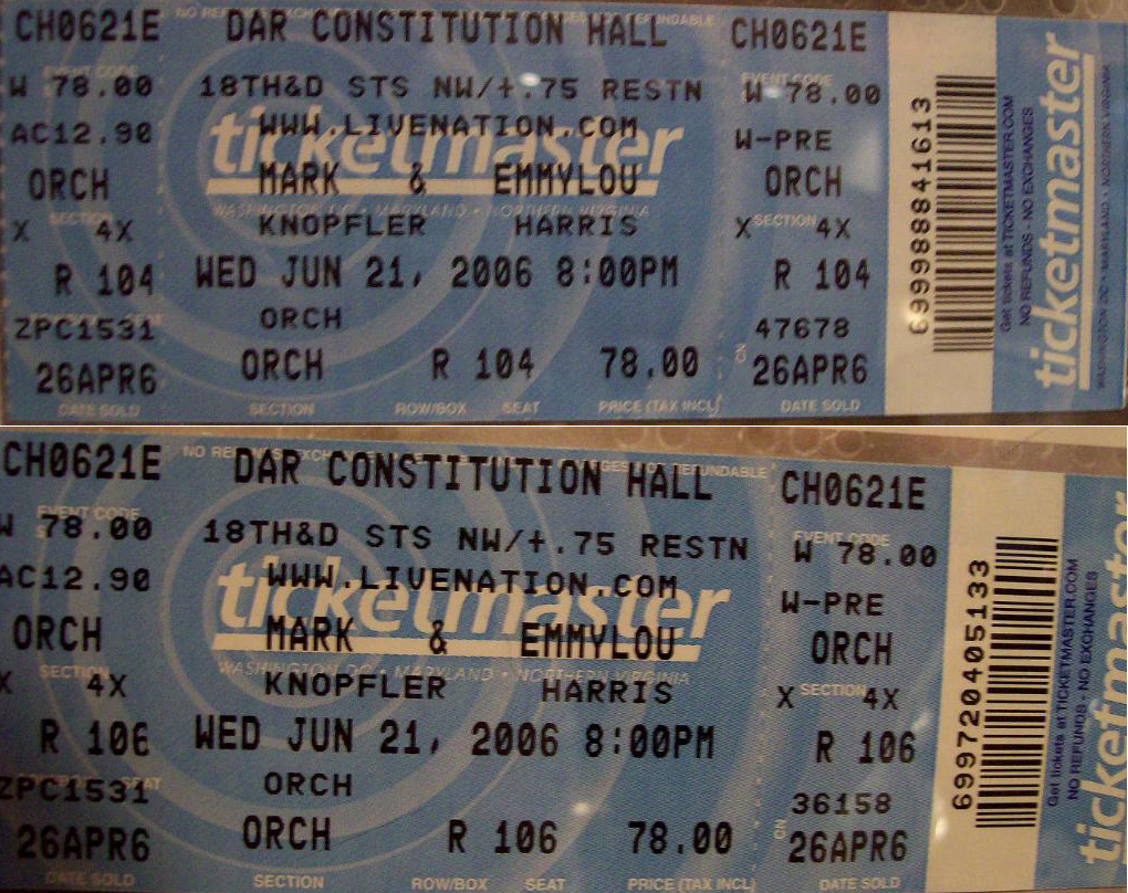 (I slept out all night to buy tickets at the Columbia Mall in Columbia, MD, was first in line, could have had front row seats but knew that would be too close to the stage to fully enjoy the view. Ended up dead center just sixteen rows back. Perfect seats.)