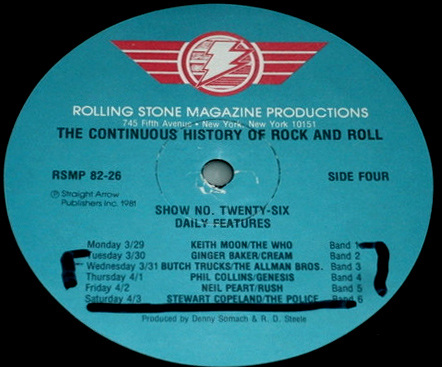 This interview and music show is an entry in Rolling Stone Magazine’s Continuous History Of Rock And Roll. The show features music from The Who, Cream, The Police, Genesis and Phil. There is also an interview segment with Phil on Side C.