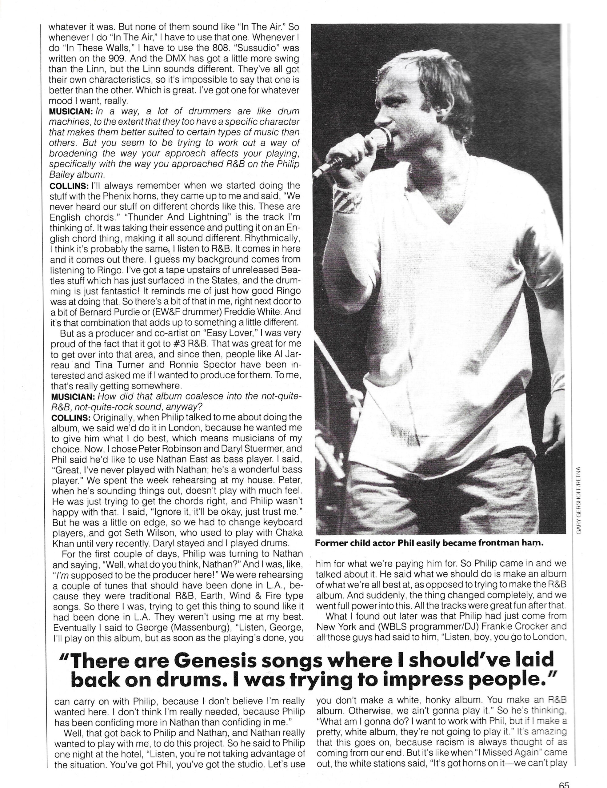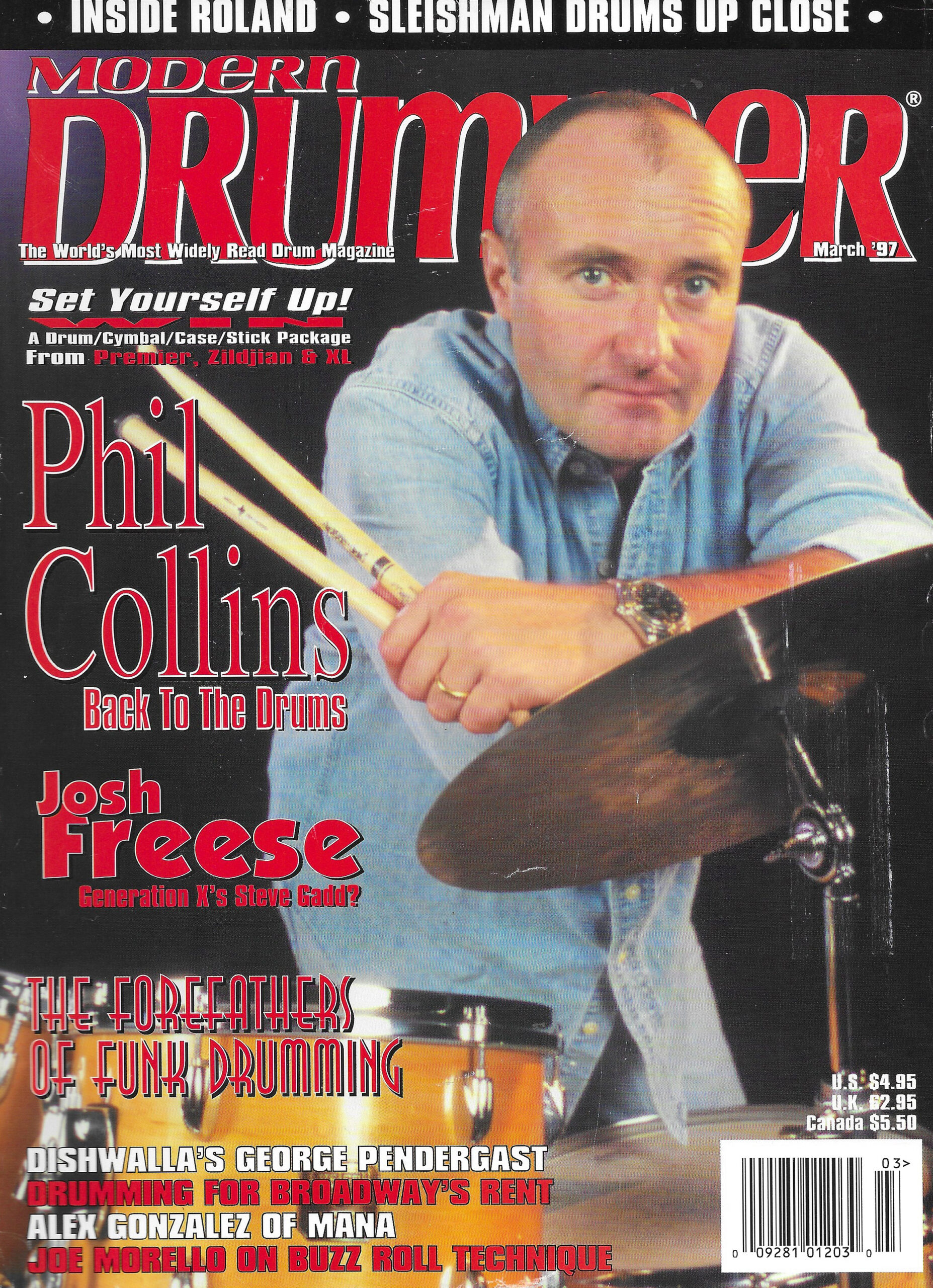 This next magazine article was featured in the March 1997 issue of Modern Drummer magazine. This cover story article is a lengthy (fifteen-page) discussion on Phil’s music, and includes several breakdowns of the drum parts from some of his favorite songs. You can view scans of the article in the gallery to the right.