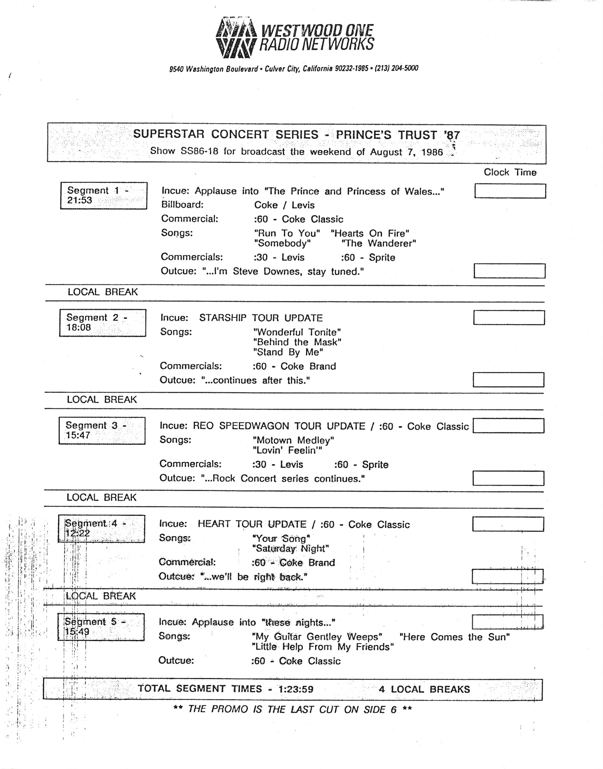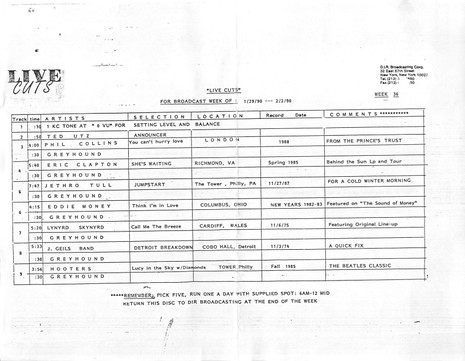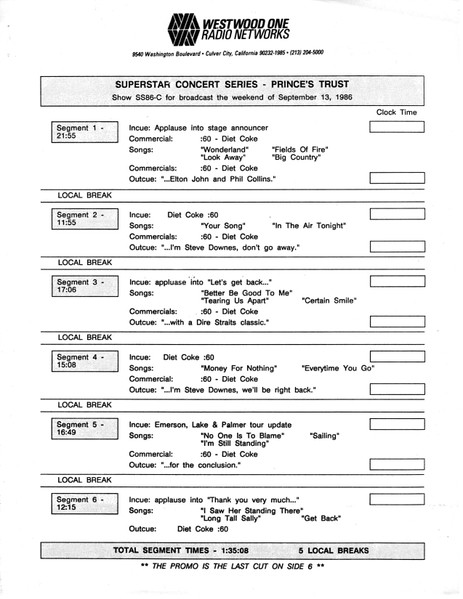 This is the exact same show as listed above under Superstar Concert Series Show #SS87-18, repackaged and slated for broadcast in April of 1988. Once again, Phil’s portion of that year’s show (which included the aforementioned duet with Paul Young) is presented.