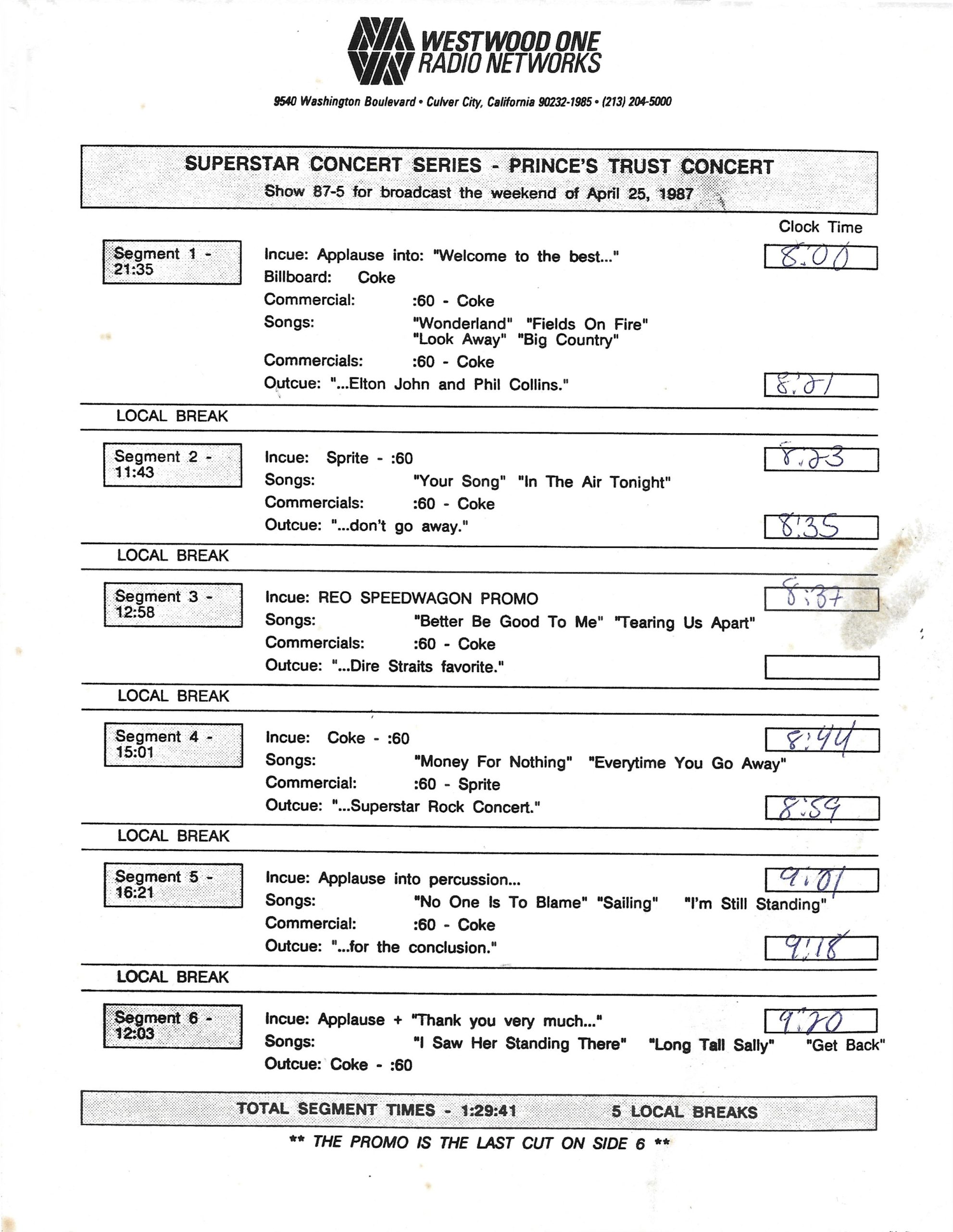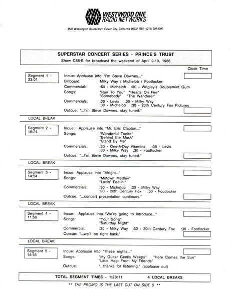 One of the most reproduced Prince’s Trust shows was performed and recorded in June of 1986. It was the 10th Anniversary of the Trust, and there was even an official LP, CD and cassette released which contained portions of the show. You can view that official release HERE.