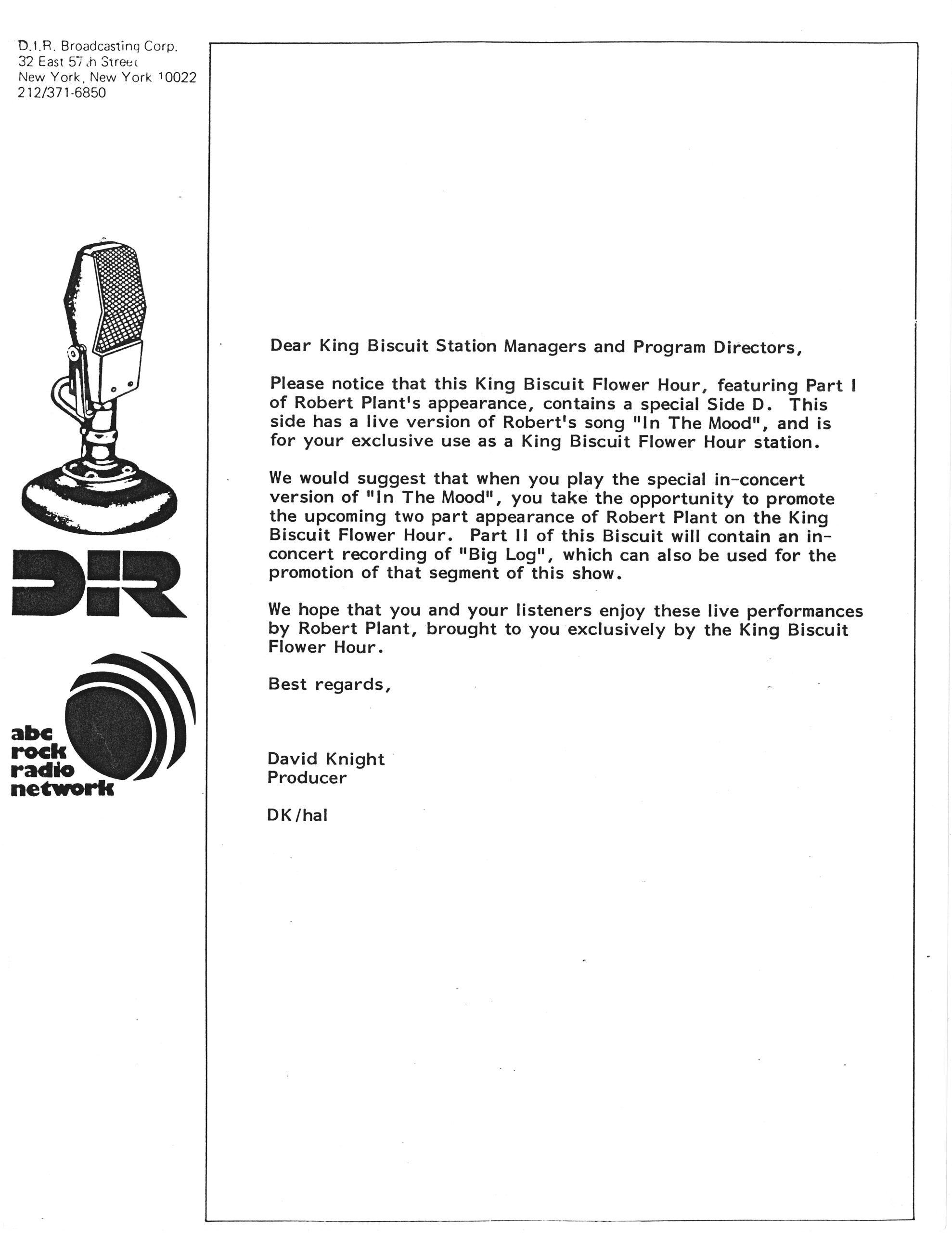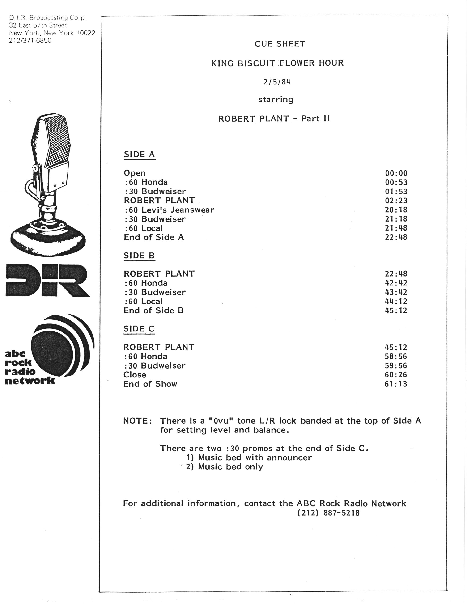 Robert Plant (with Phil Collins) King Biscuit Flower Hour #KB-508 / 509: