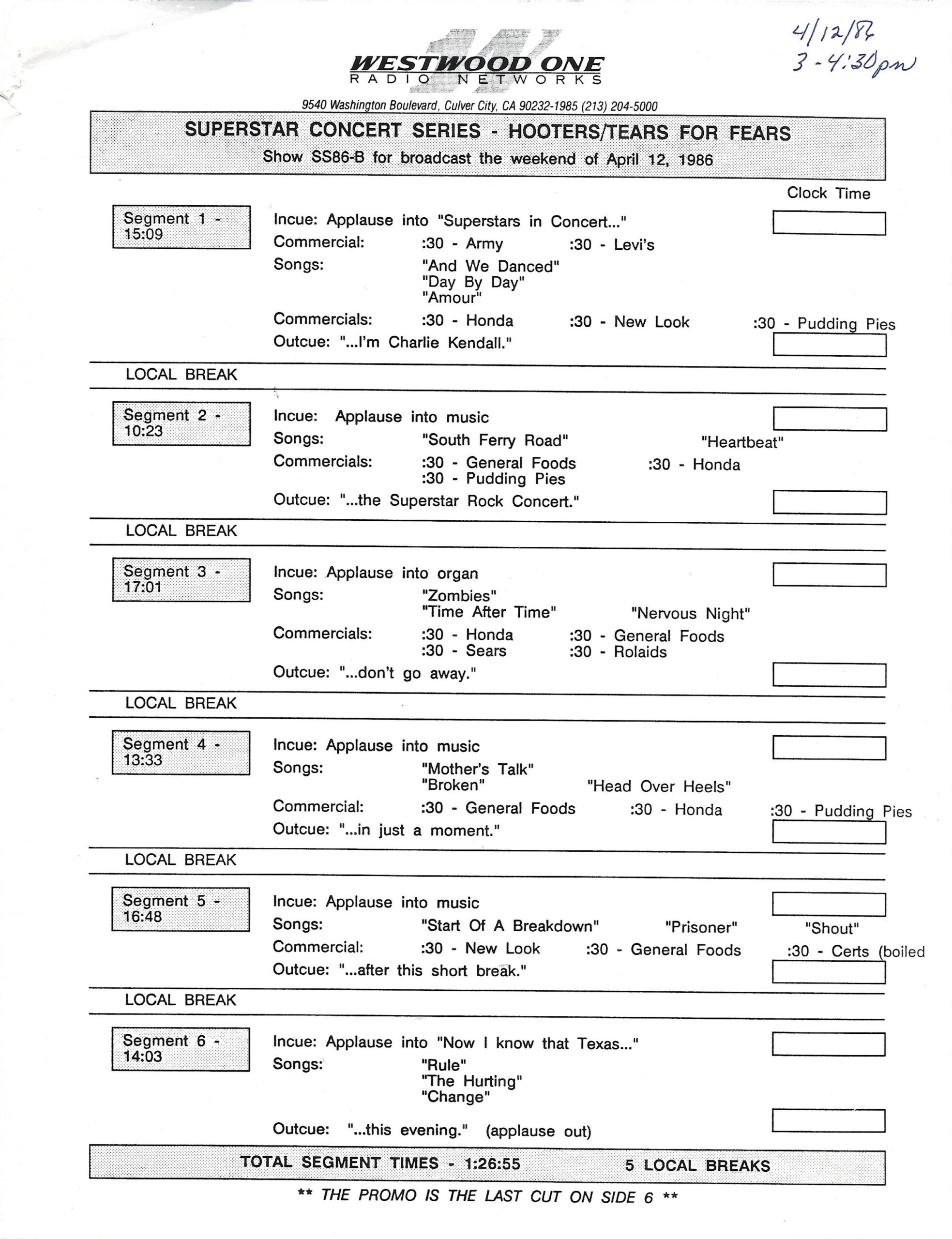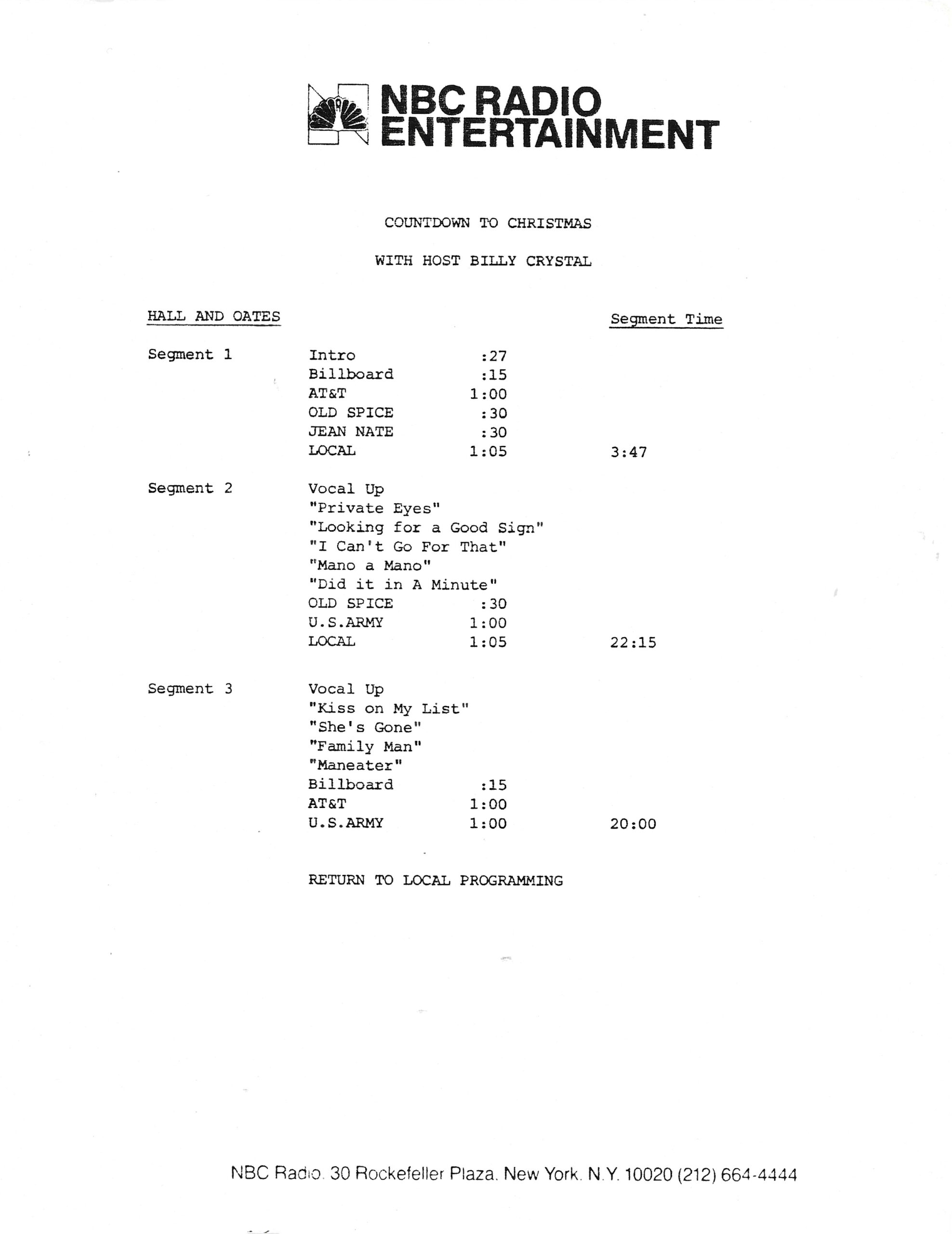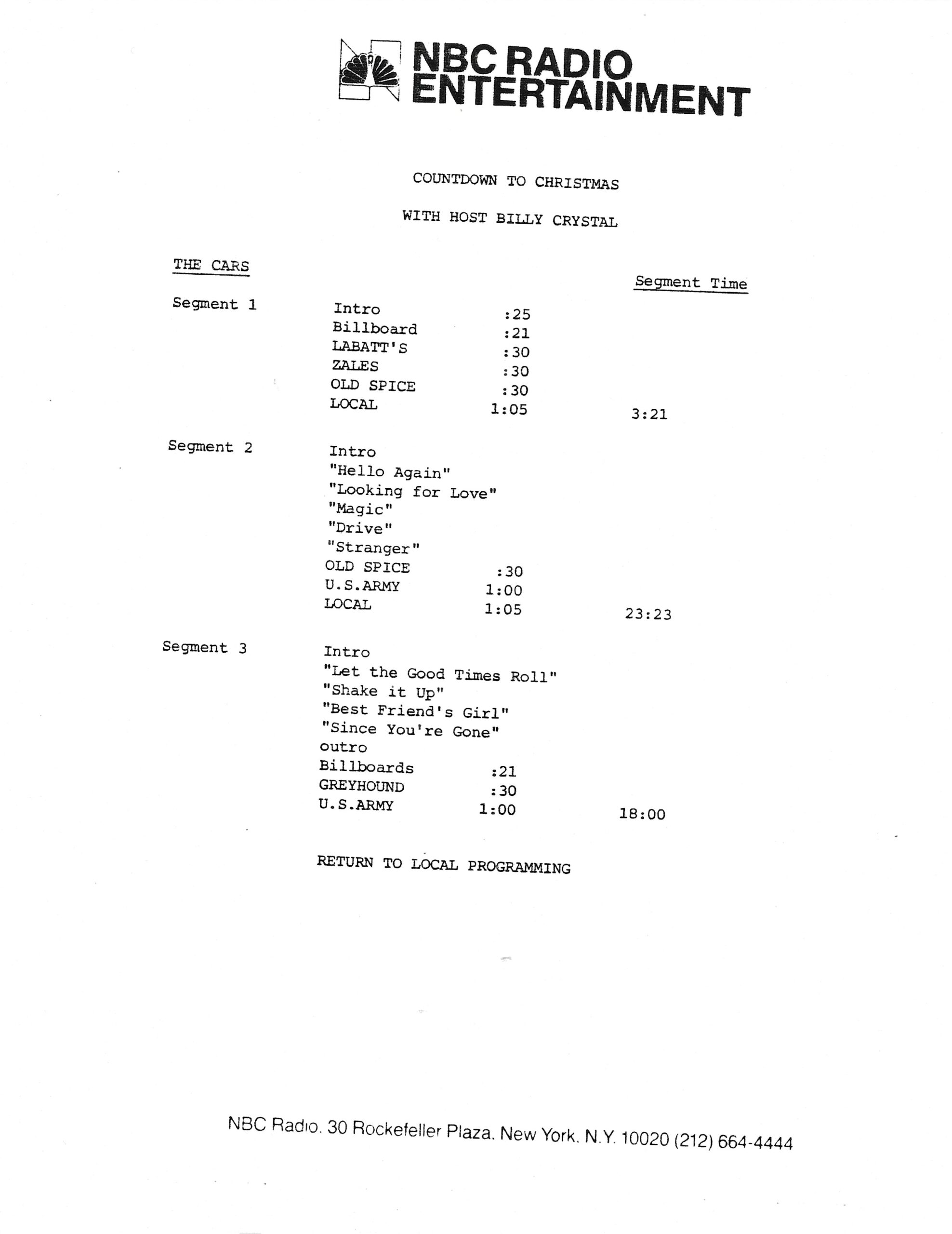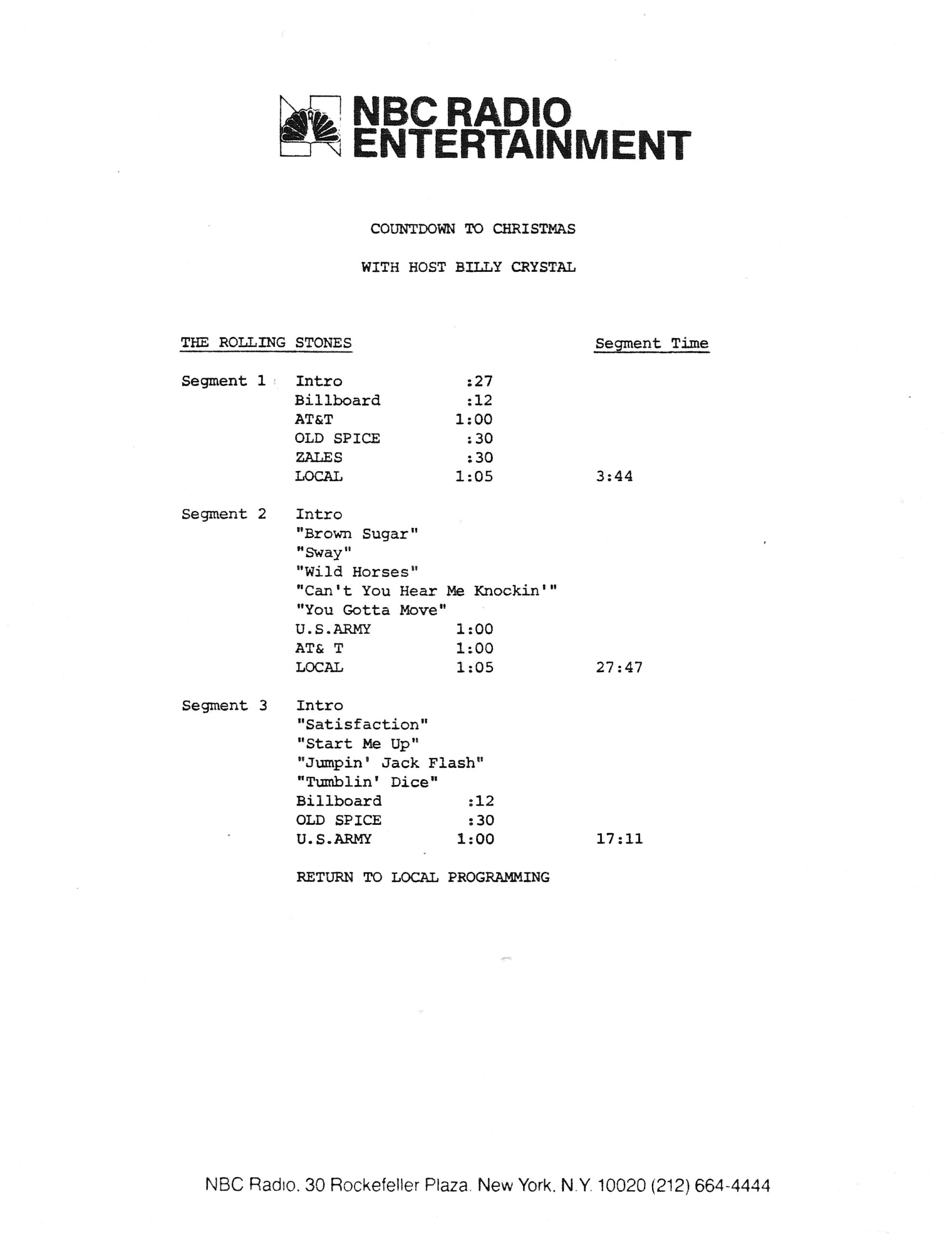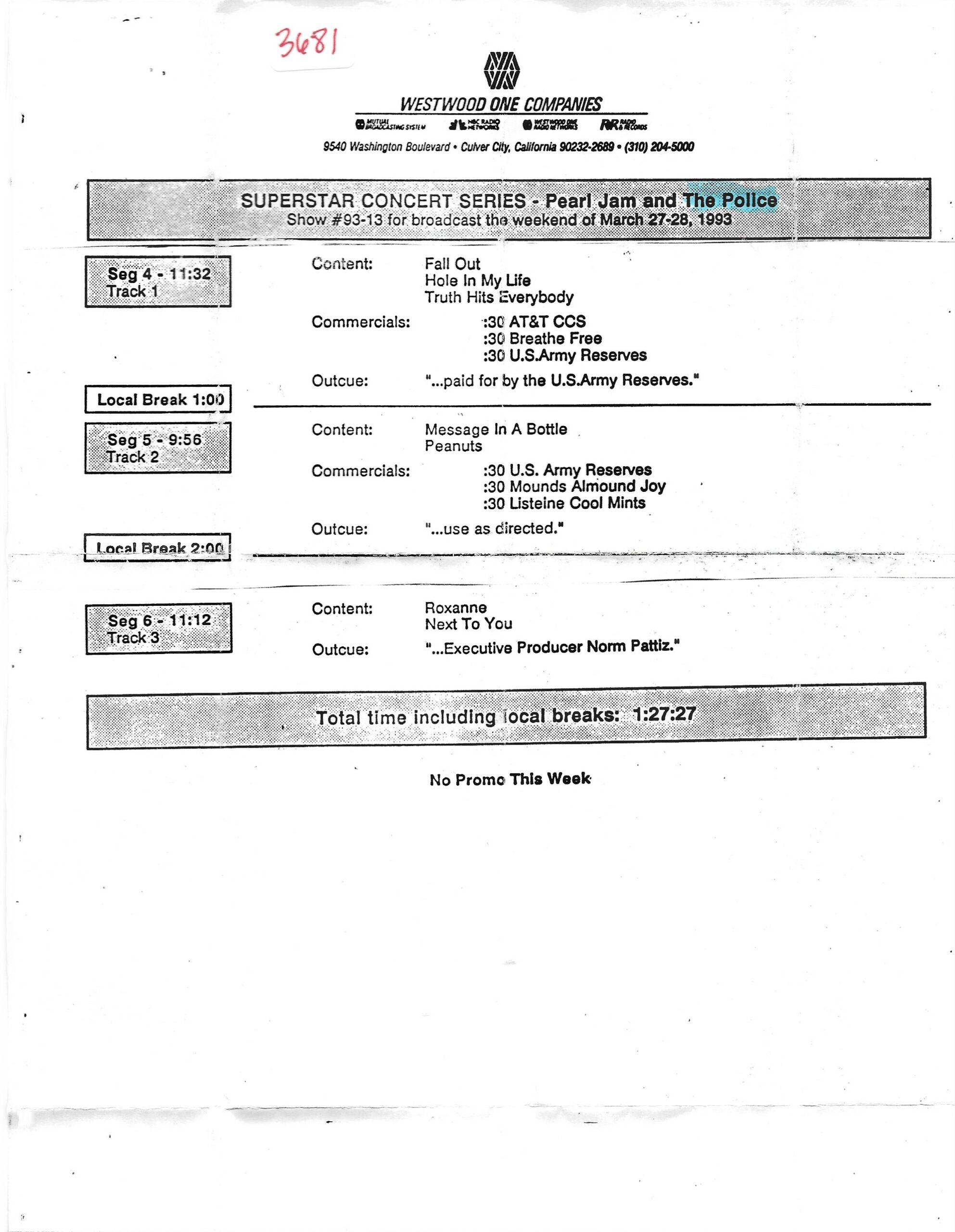 Tracks 1 – 4 are the actual radio show, Tracks 5 – 7 are promo spots, Tracks 8 – 15 are commercial spots, while Tracks 16 – 27 are the actual interview segments and segment intros separated into individual tracks.