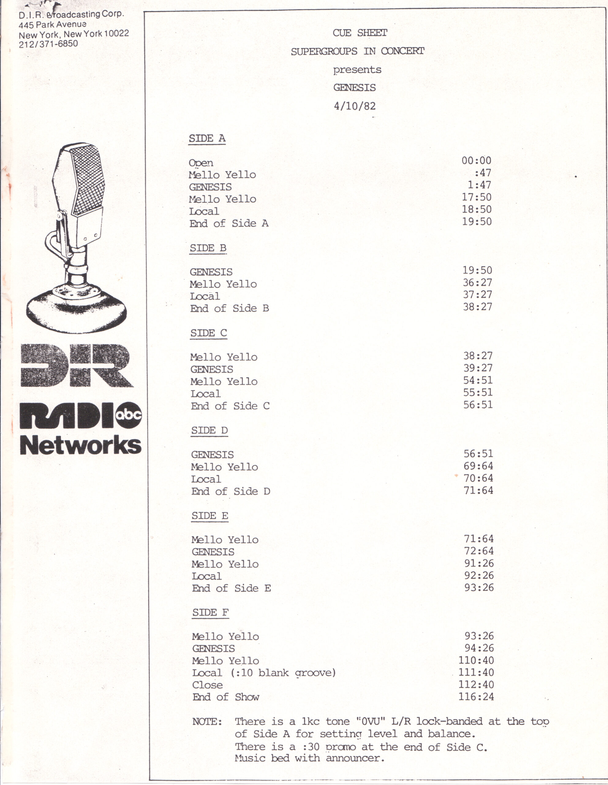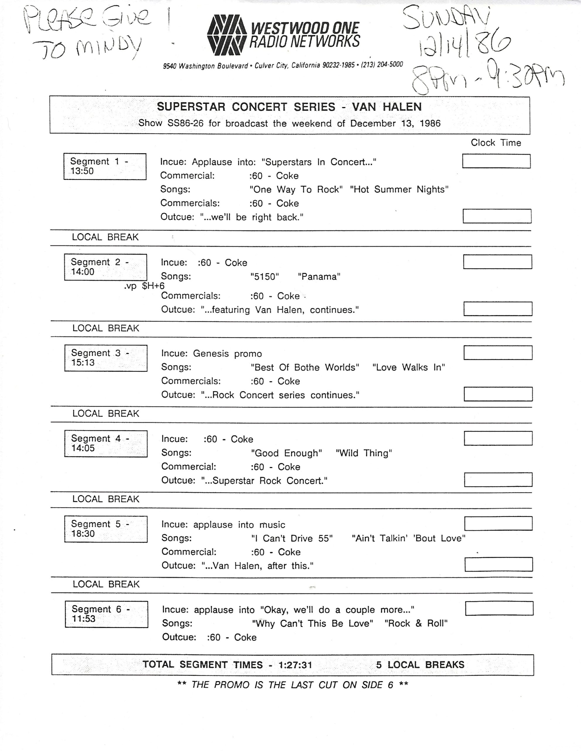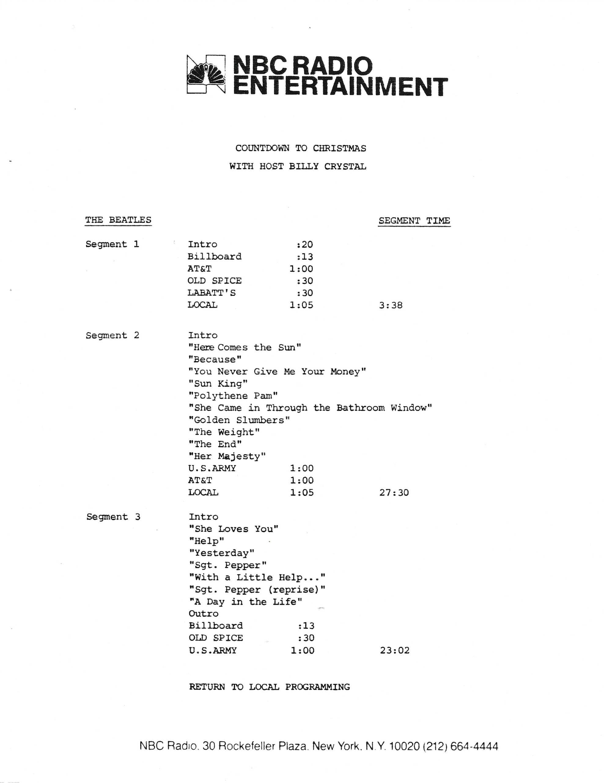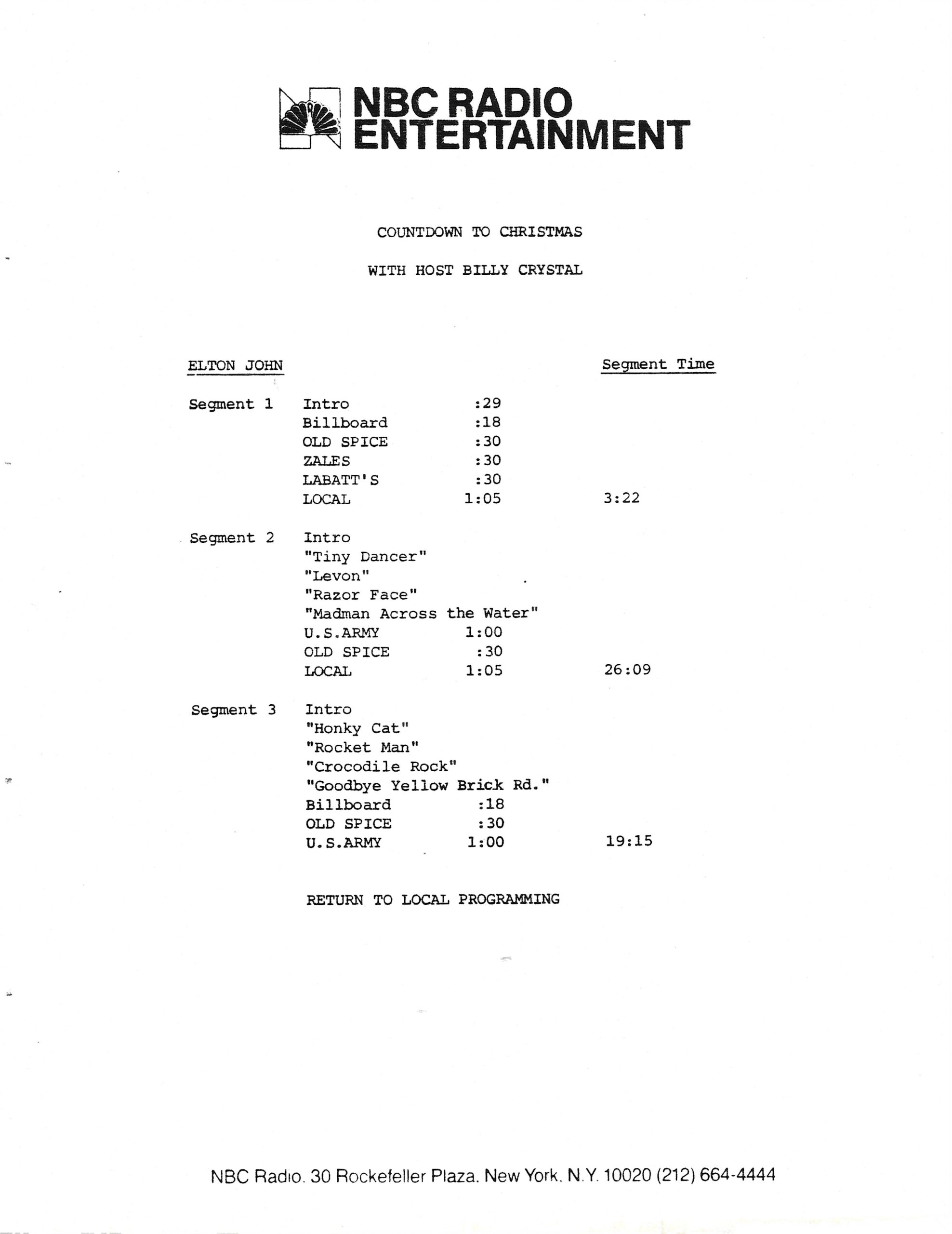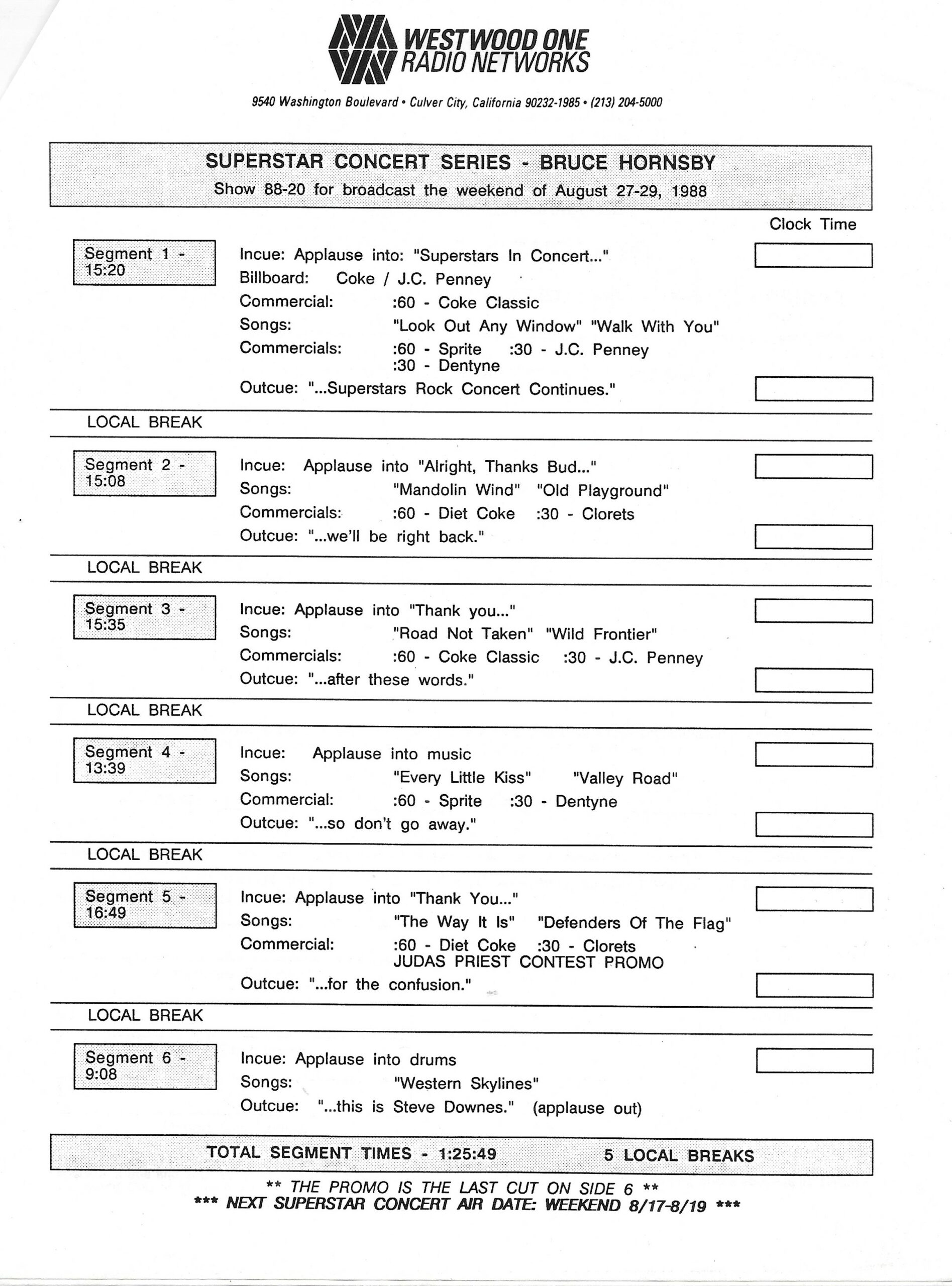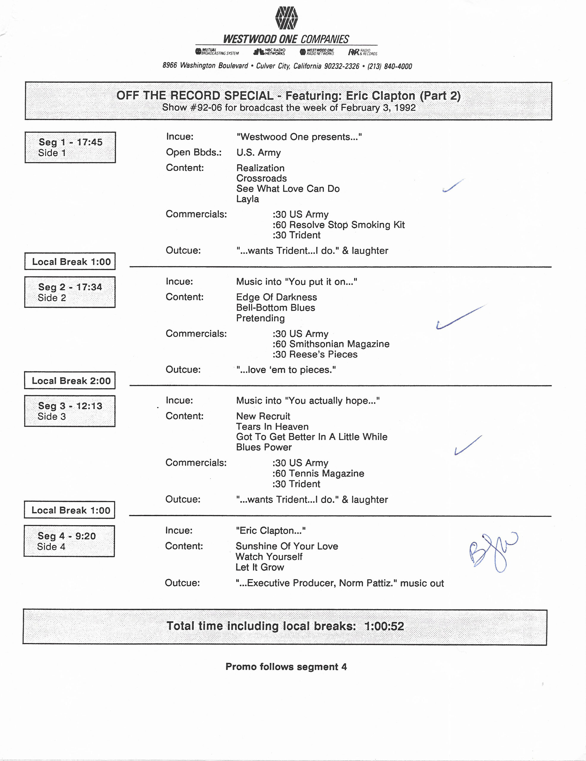 Tracks 1 – 4 are the actual radio show, Tracks 5 – 7 are promo spots, Tracks 8 – 15 are commercial spots, while Tracks 16 – 27 are the actual interview segments and segment intros separated into individual tracks.