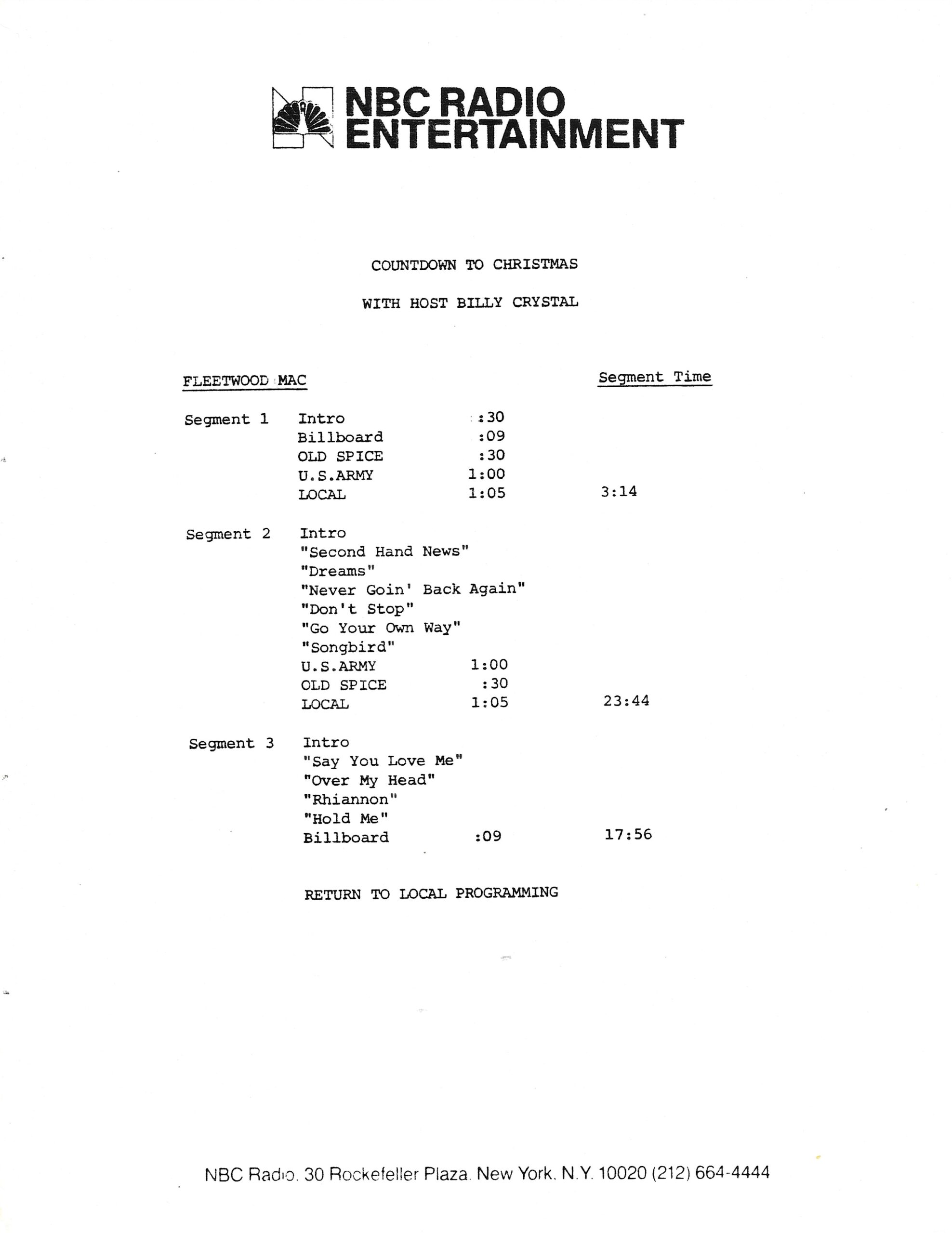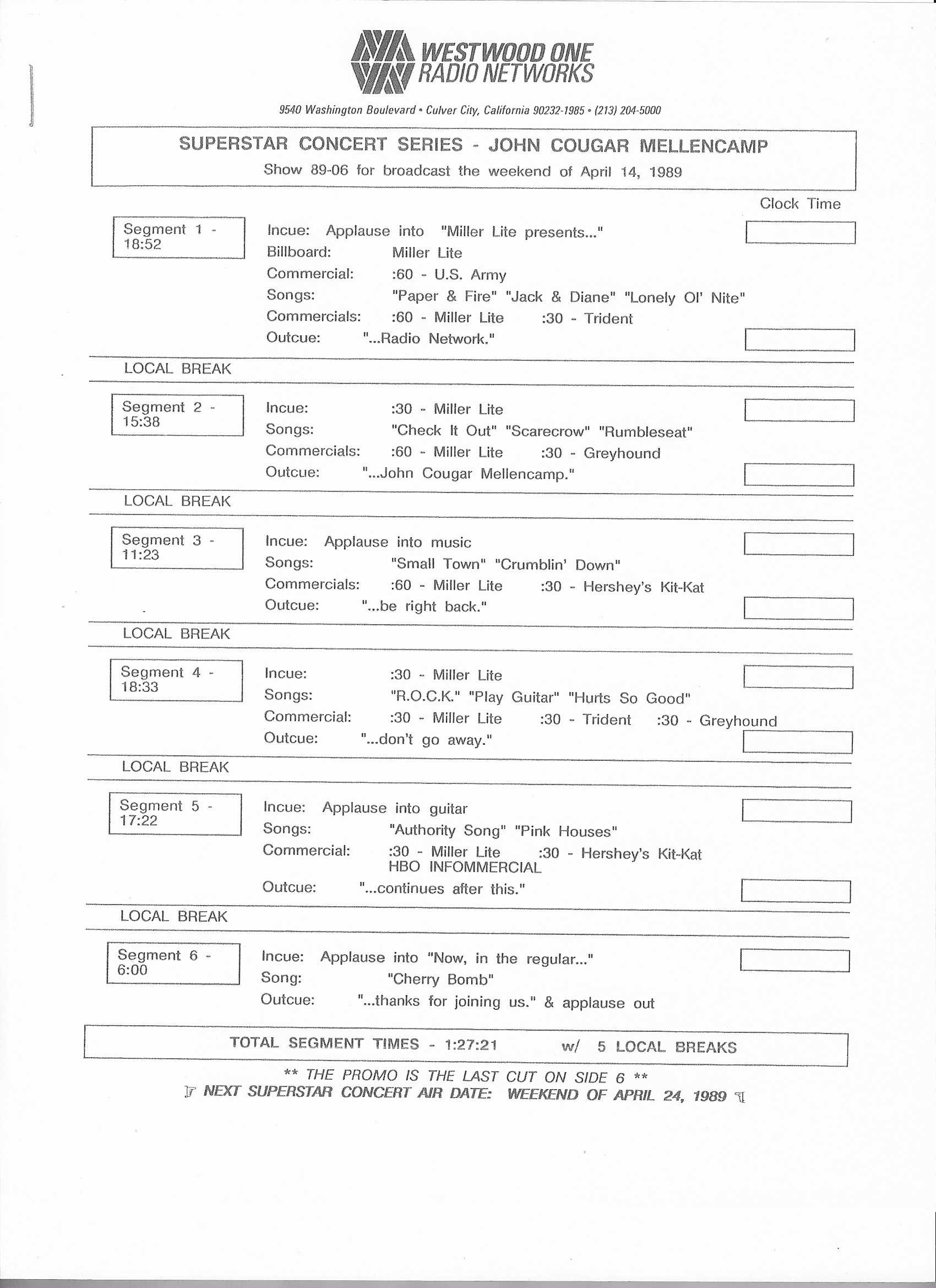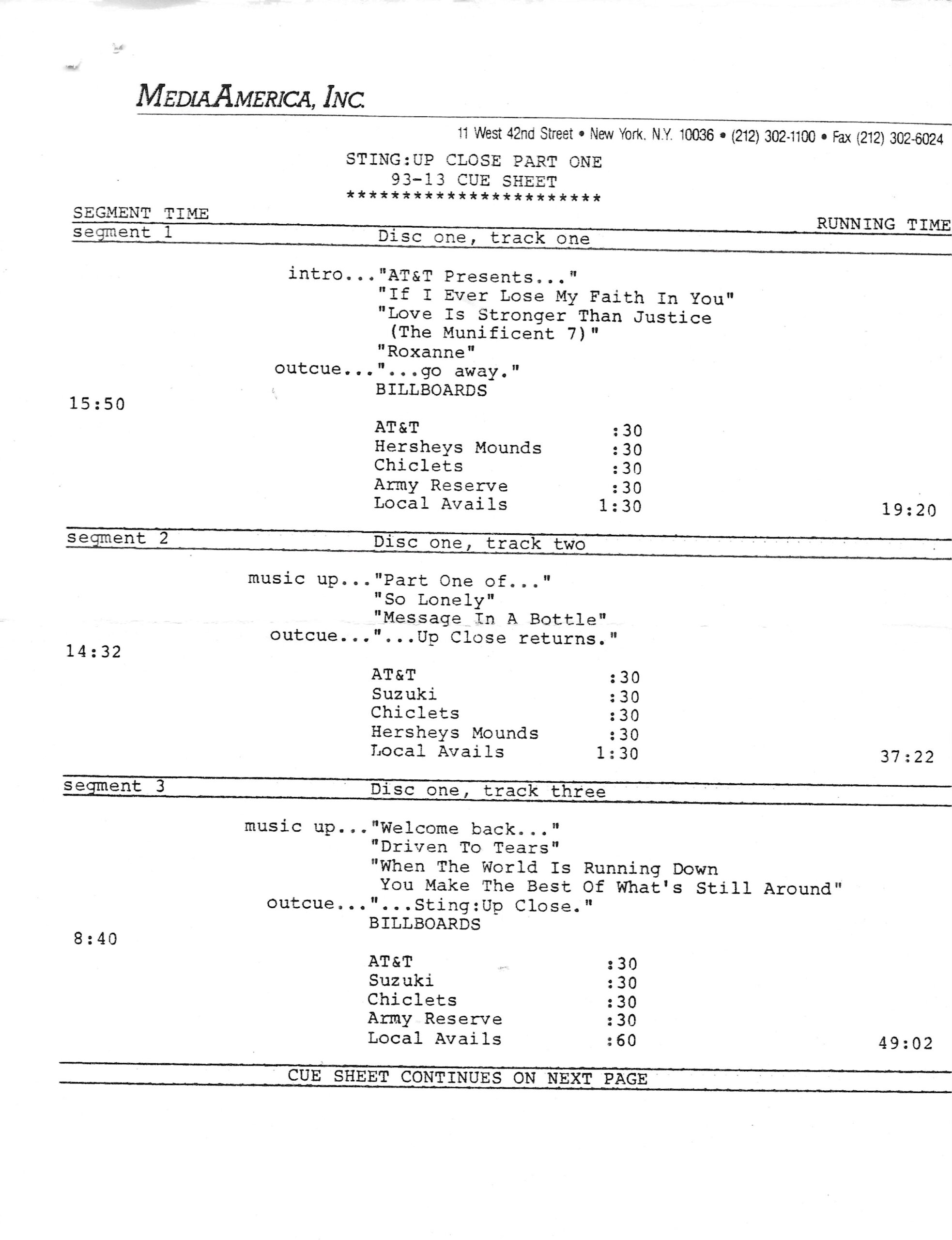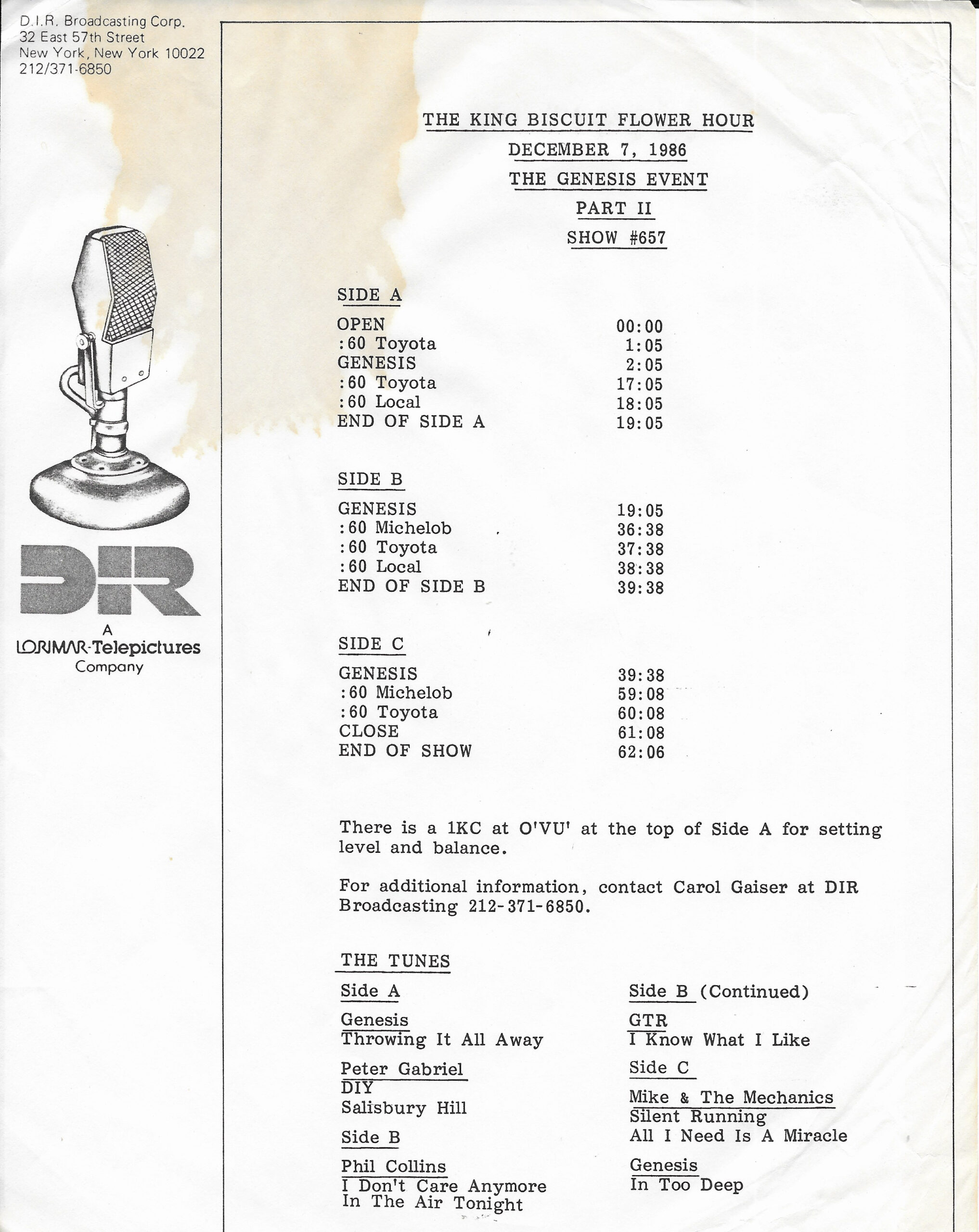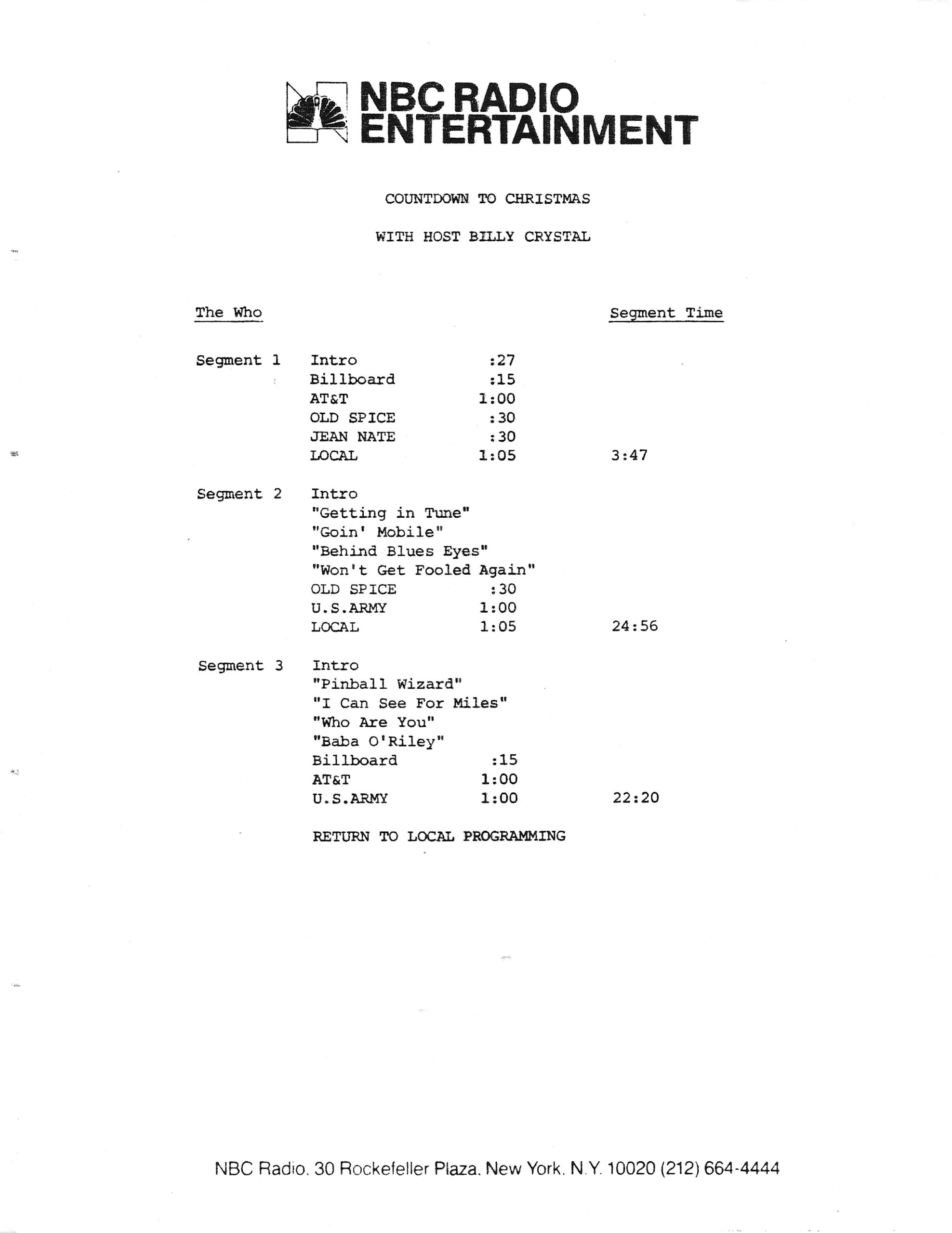 Tracks 1 – 4 are the actual radio show, Tracks 5 – 7 are promo spots, Tracks 8 – 15 are commercial spots, while Tracks 16 – 27 are the actual interview segments and segment intros separated into individual tracks.