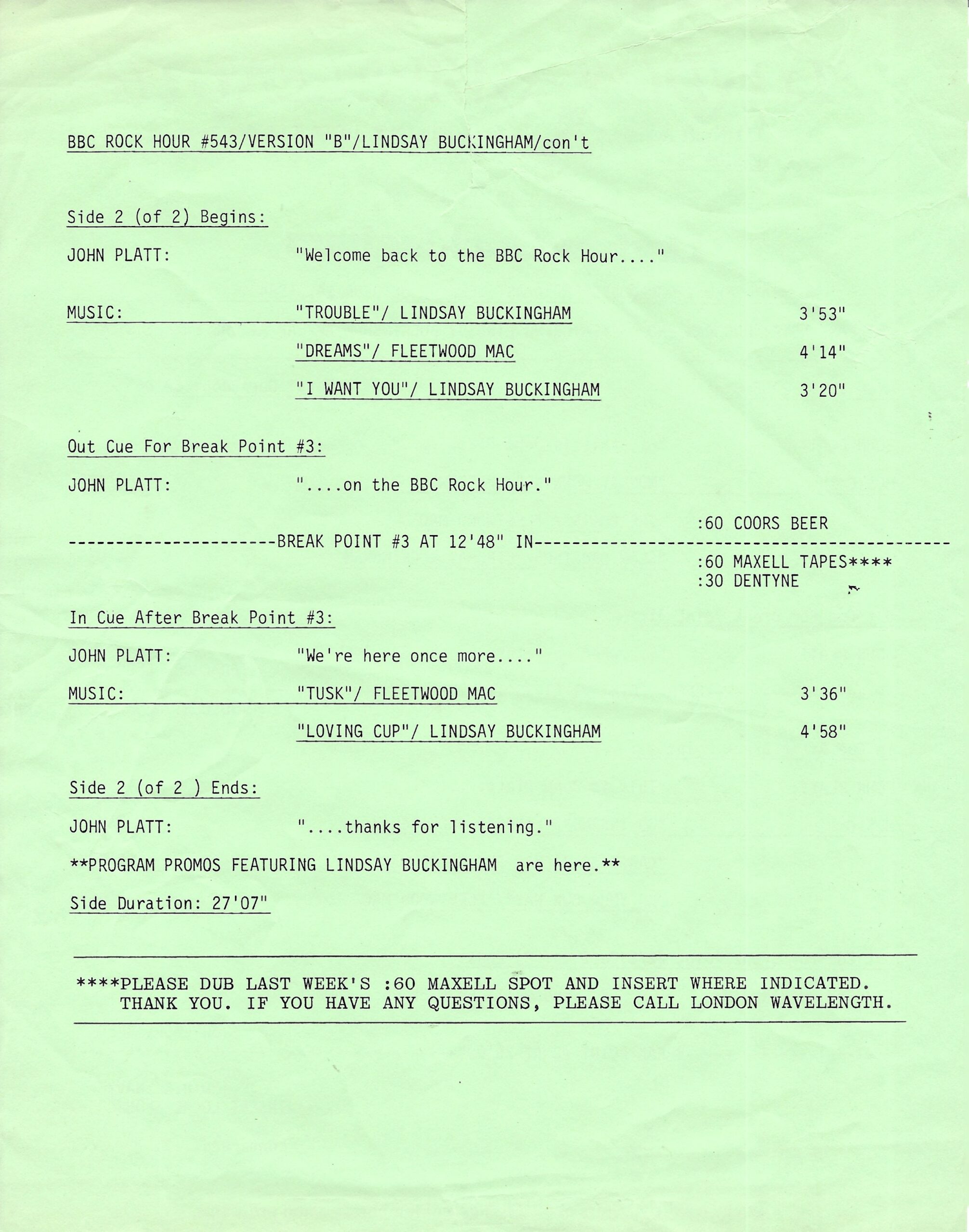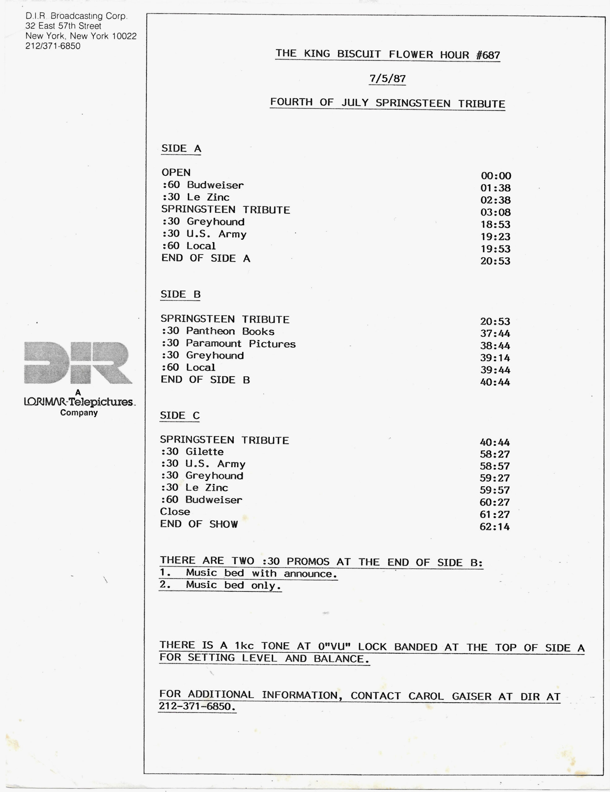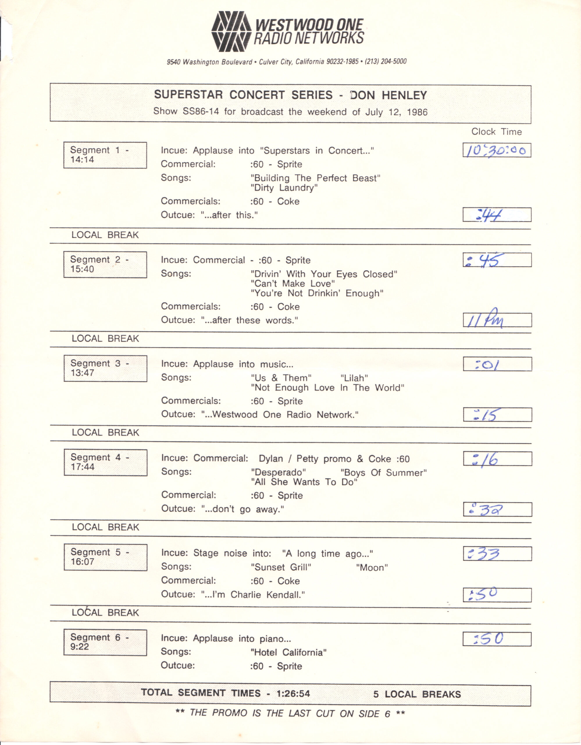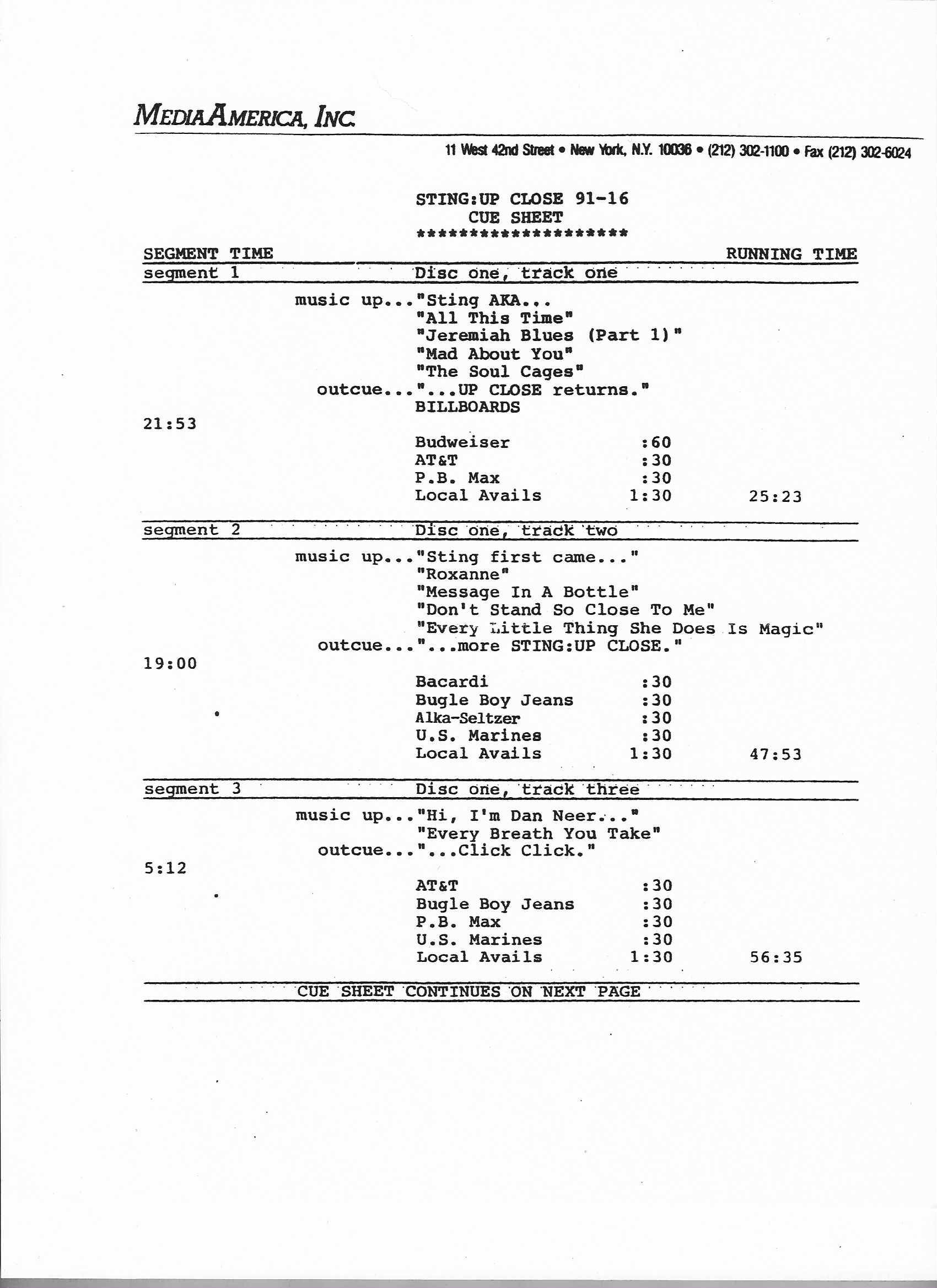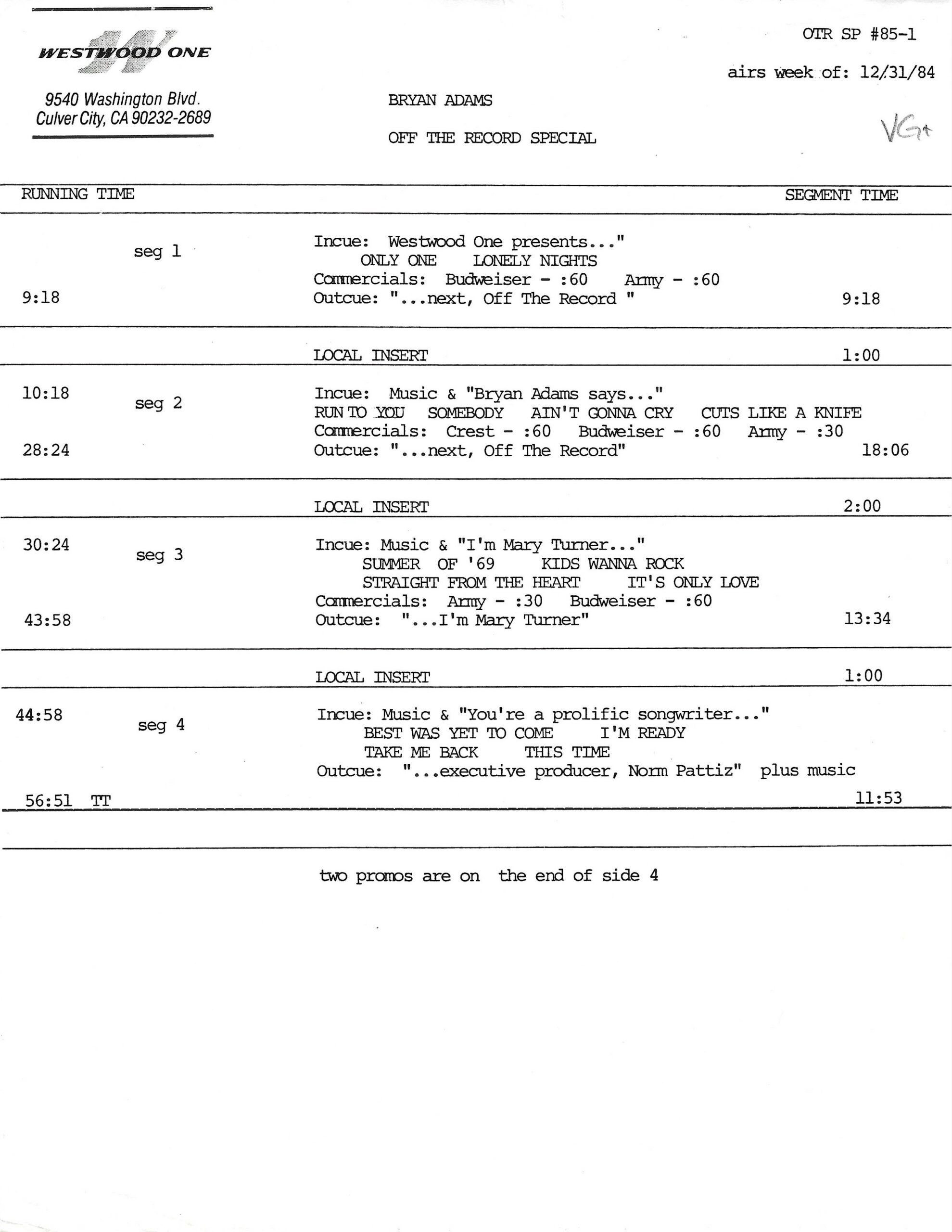 Tracks 1 – 4 are the actual radio show, Tracks 5 – 7 are promo spots, Tracks 8 – 15 are commercial spots, while Tracks 16 – 27 are the actual interview segments and segment intros separated into individual tracks.