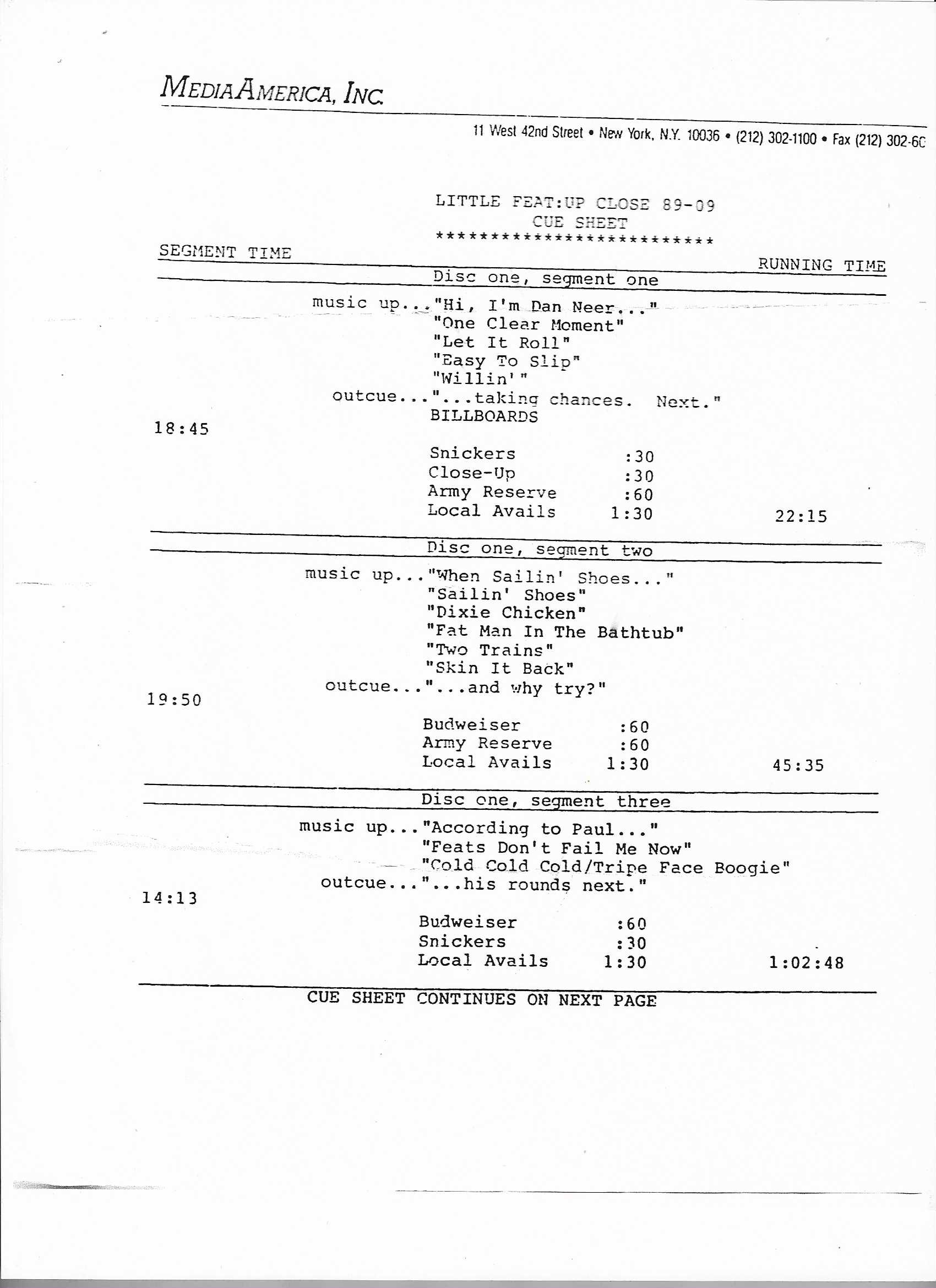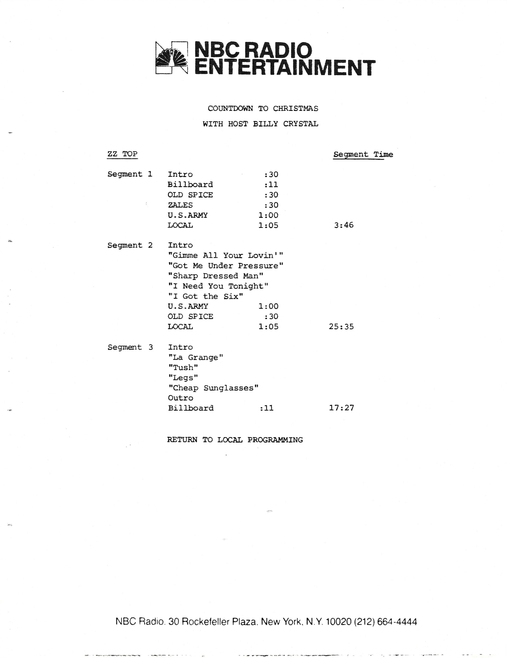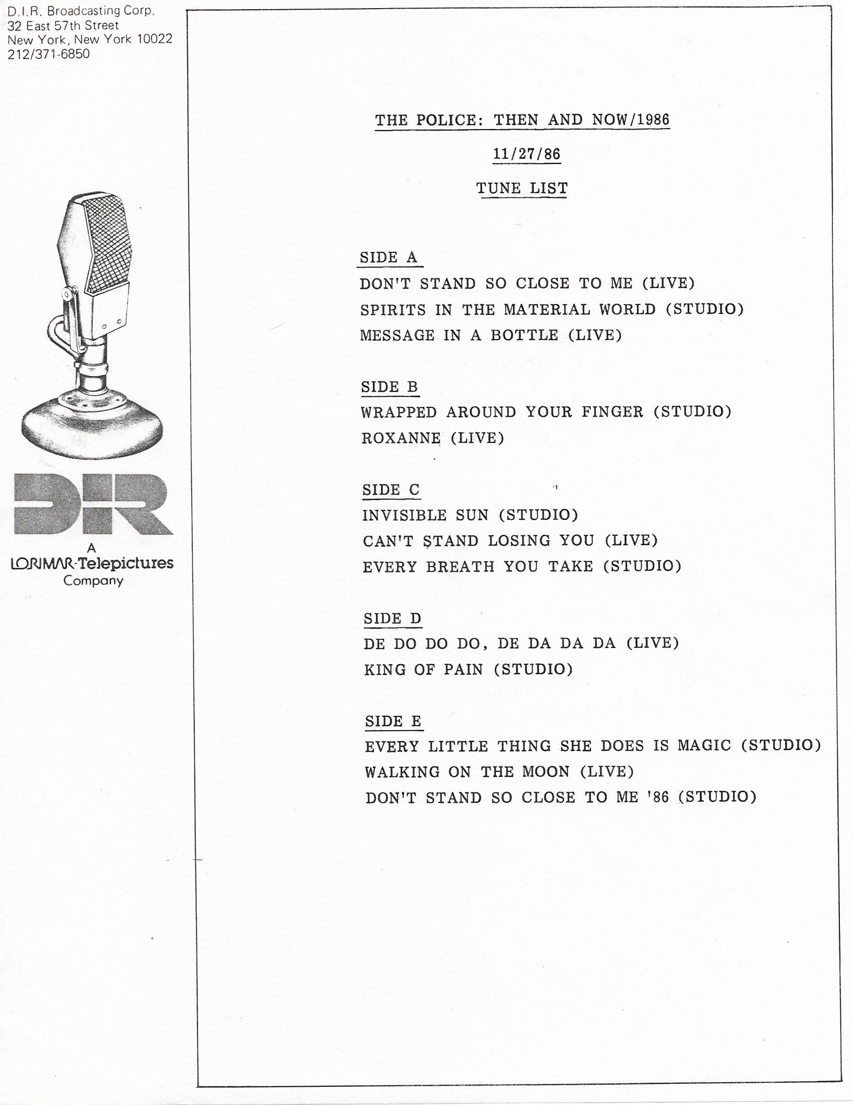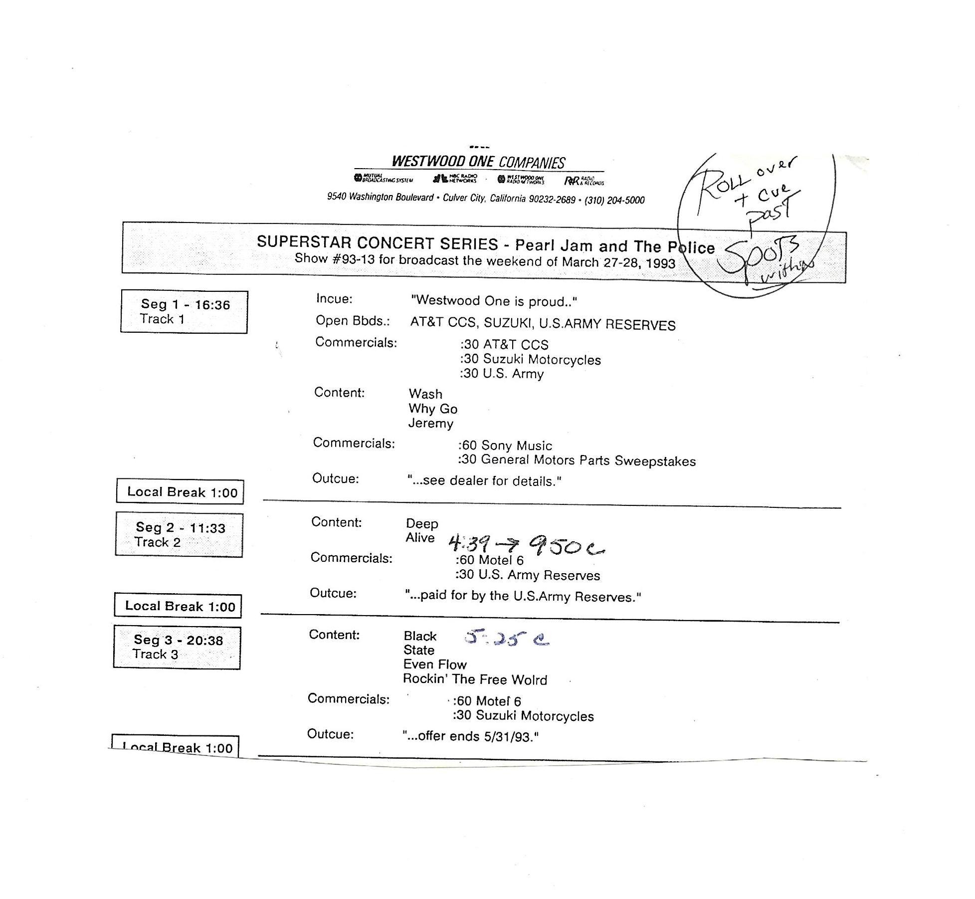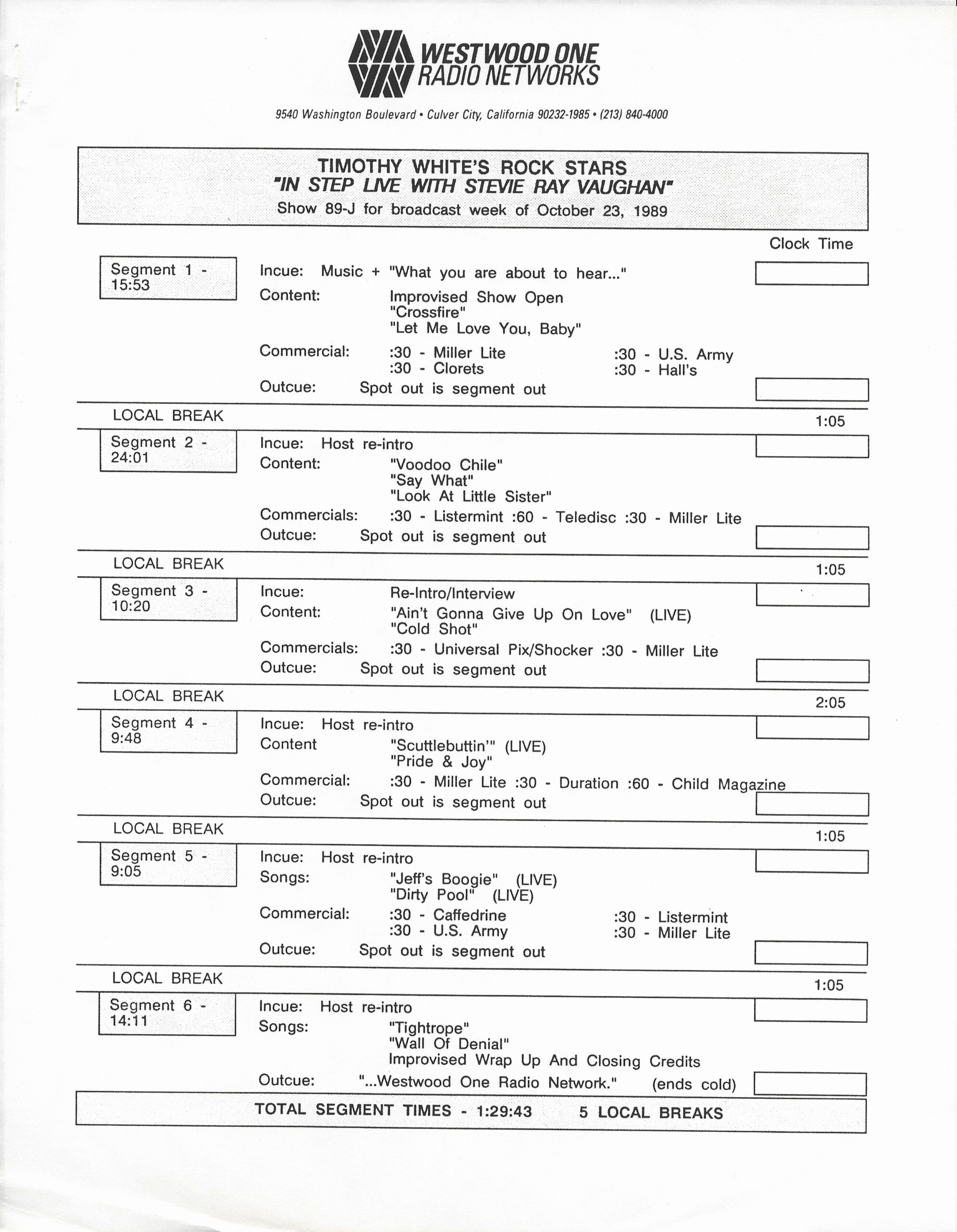 Tracks 1 – 4 are the actual radio show, Tracks 5 – 7 are promo spots, Tracks 8 – 15 are commercial spots, while Tracks 16 – 27 are the actual interview segments and segment intros separated into individual tracks.