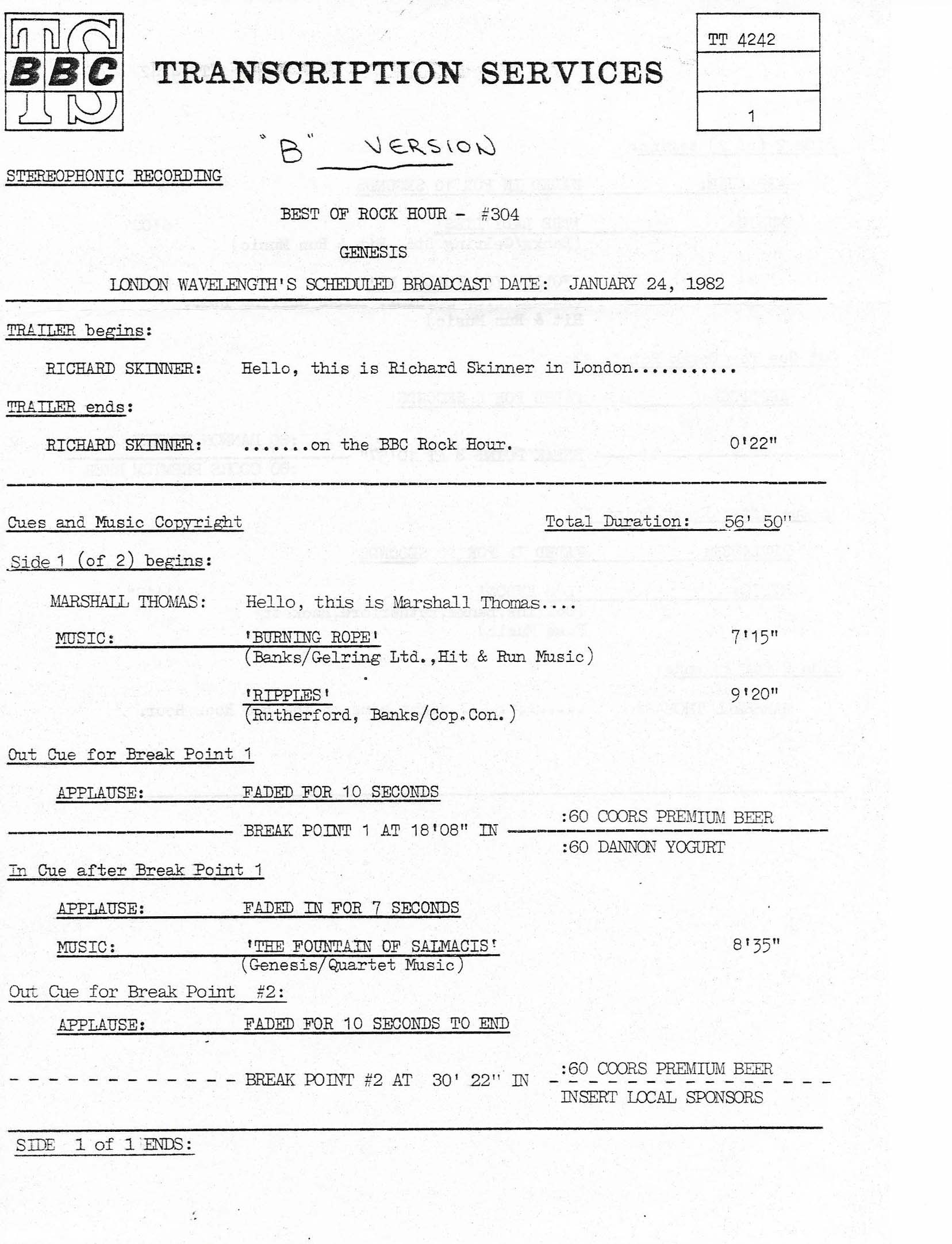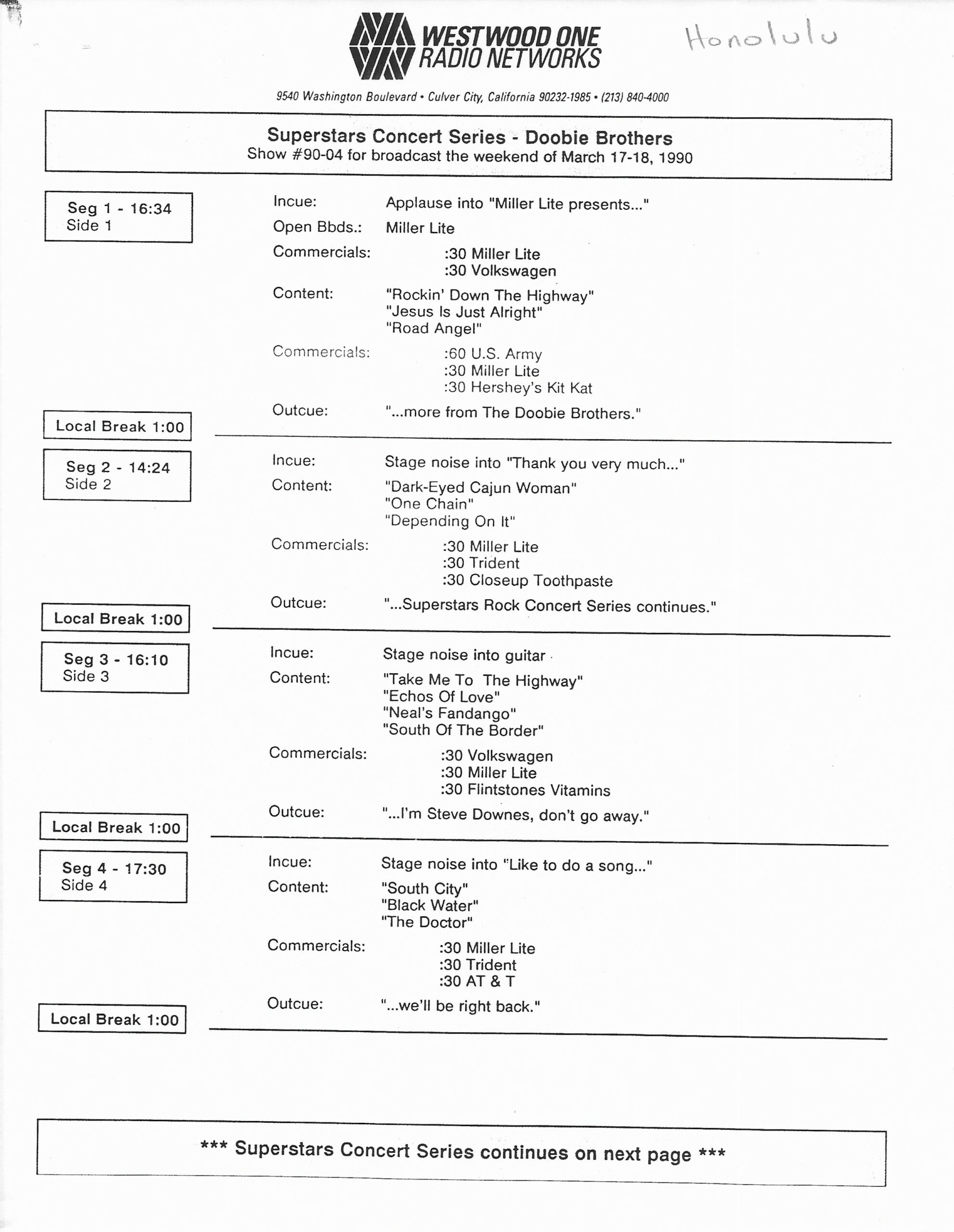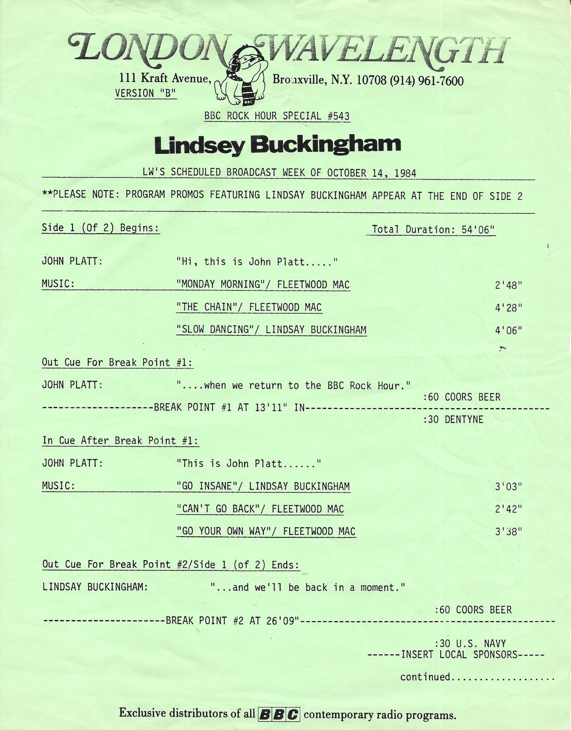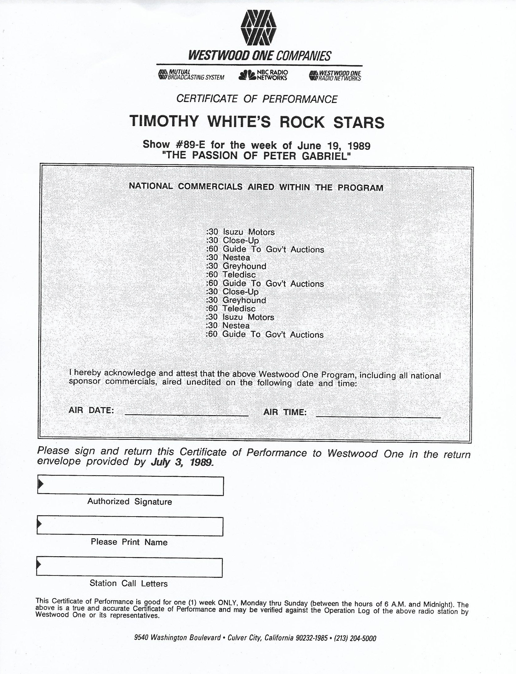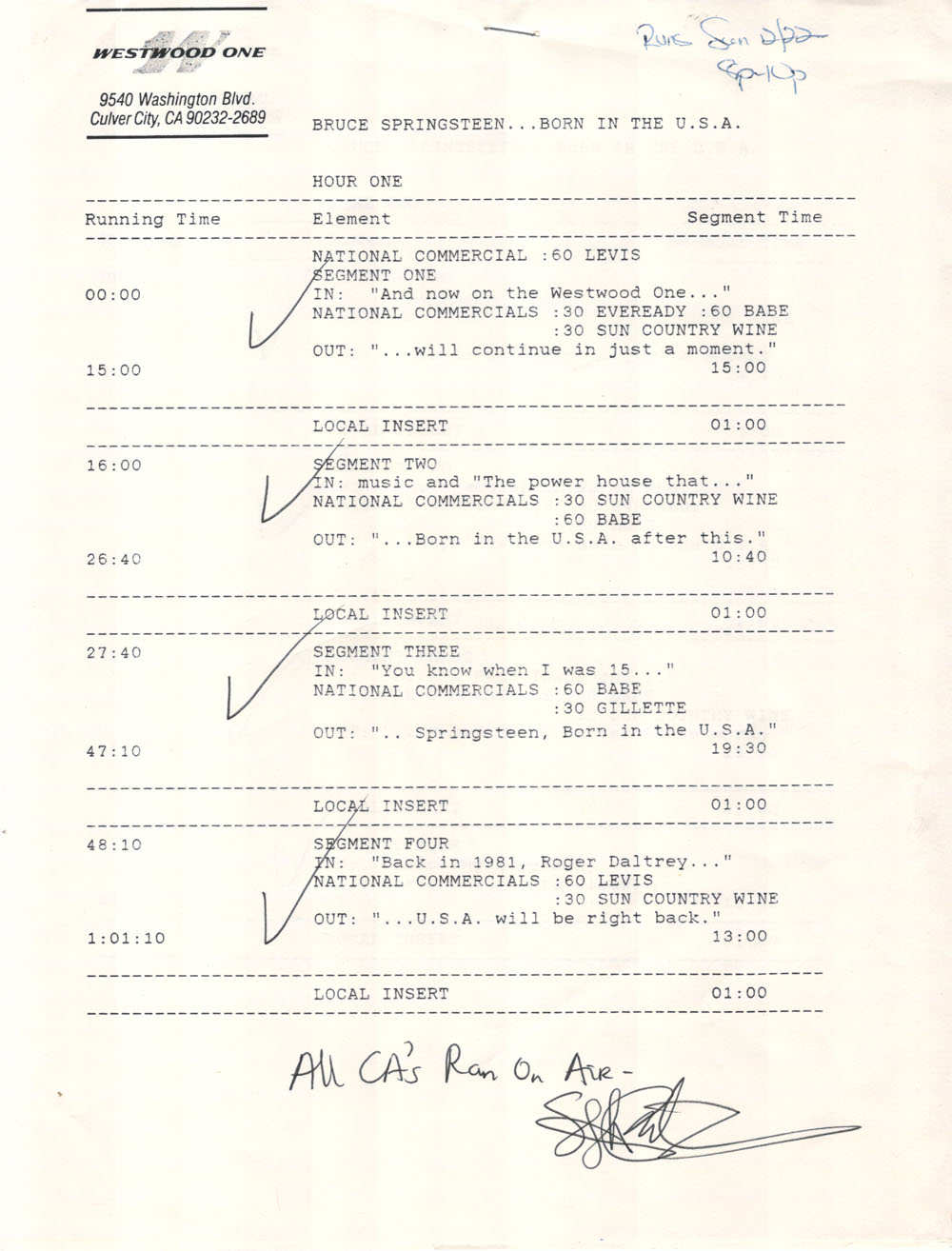Tracks 1 – 4 are the actual radio show, Tracks 5 – 7 are promo spots, Tracks 8 – 15 are commercial spots, while Tracks 16 – 27 are the actual interview segments and segment intros separated into individual tracks.