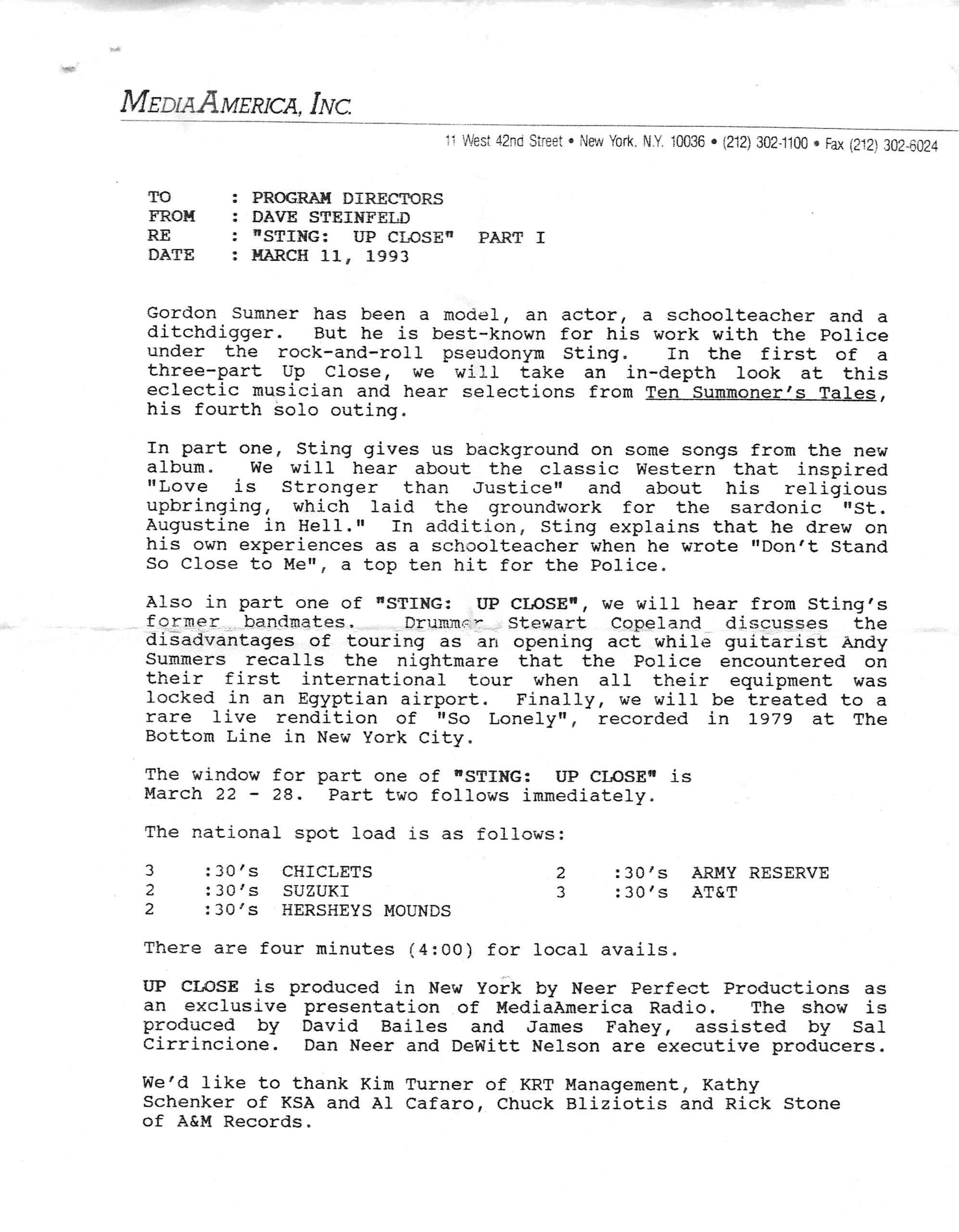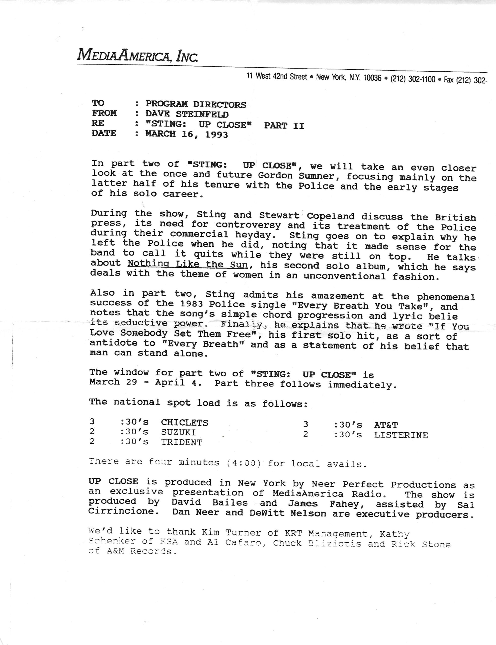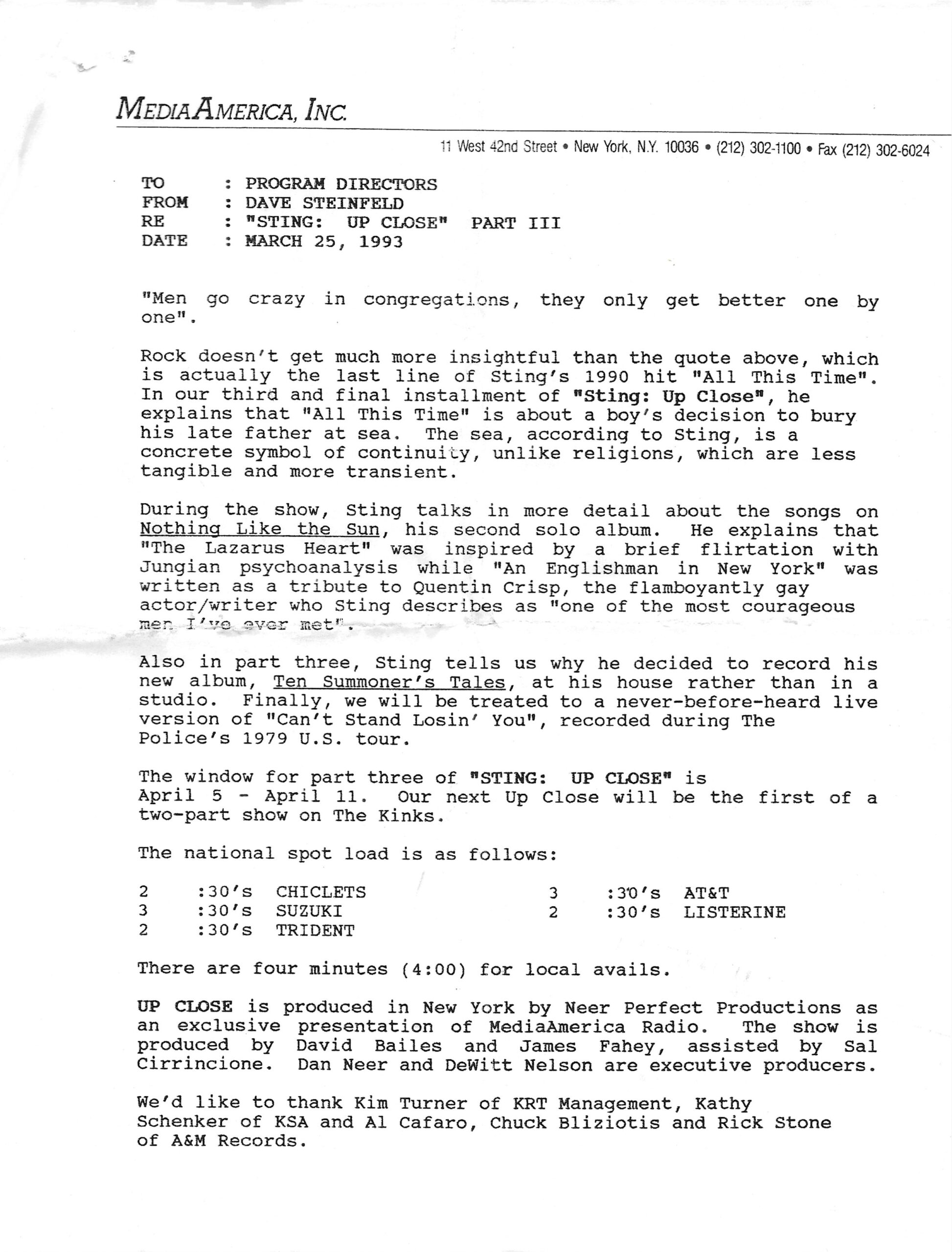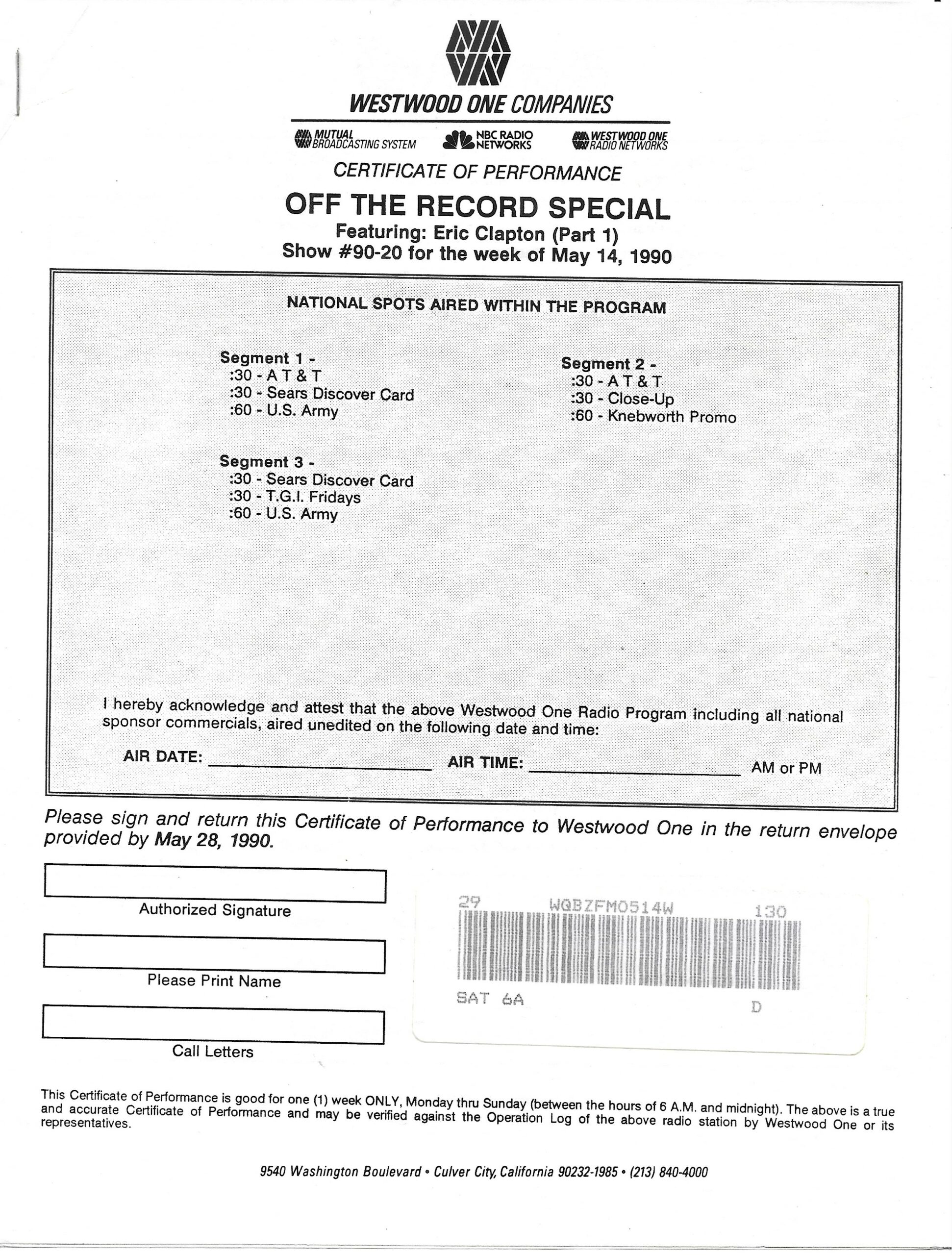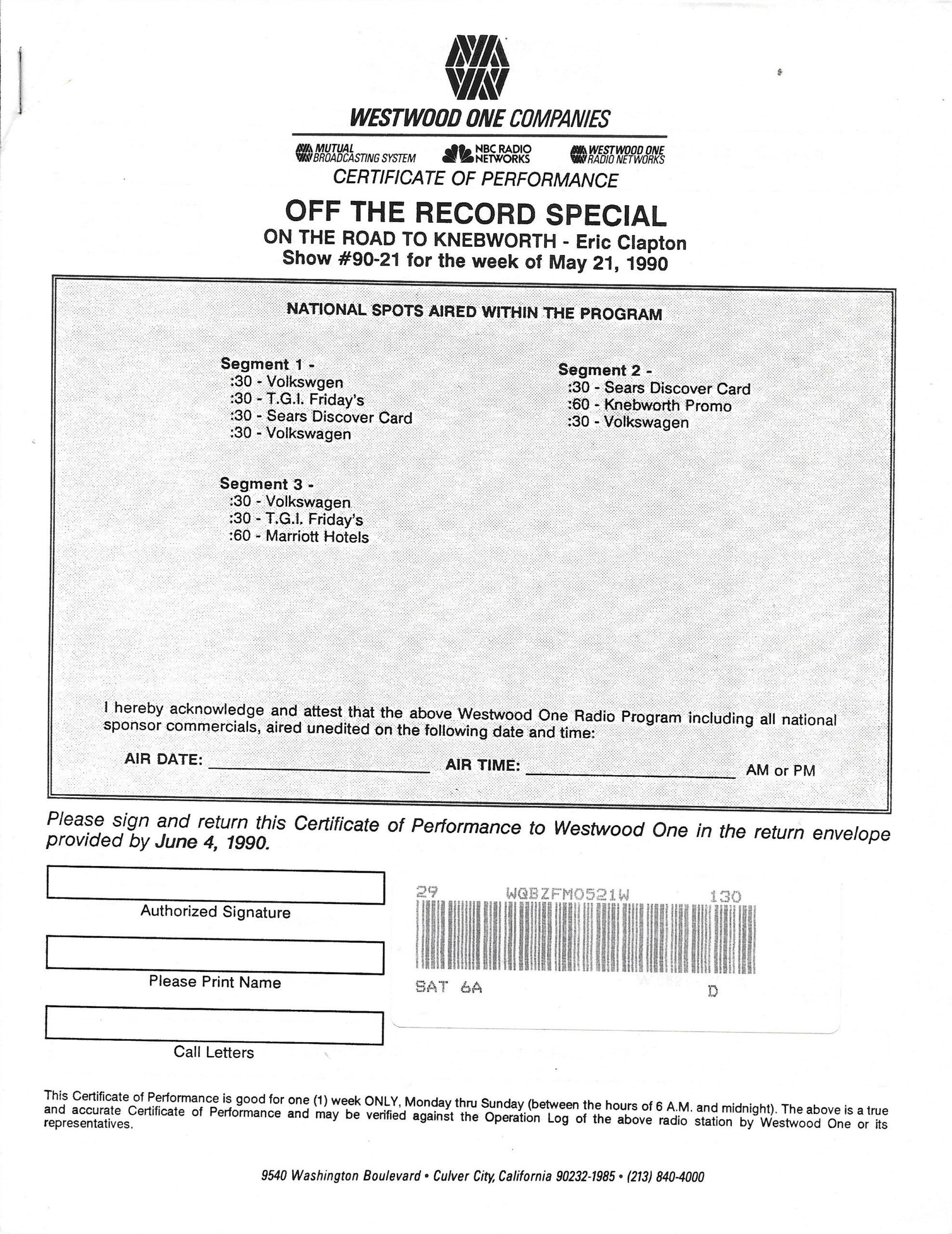 Tracks 1 – 4 are the actual radio show, Tracks 5 – 7 are promo spots, Tracks 8 – 15 are commercial spots, while Tracks 16 – 27 are the actual interview segments and segment intros separated into individual tracks.