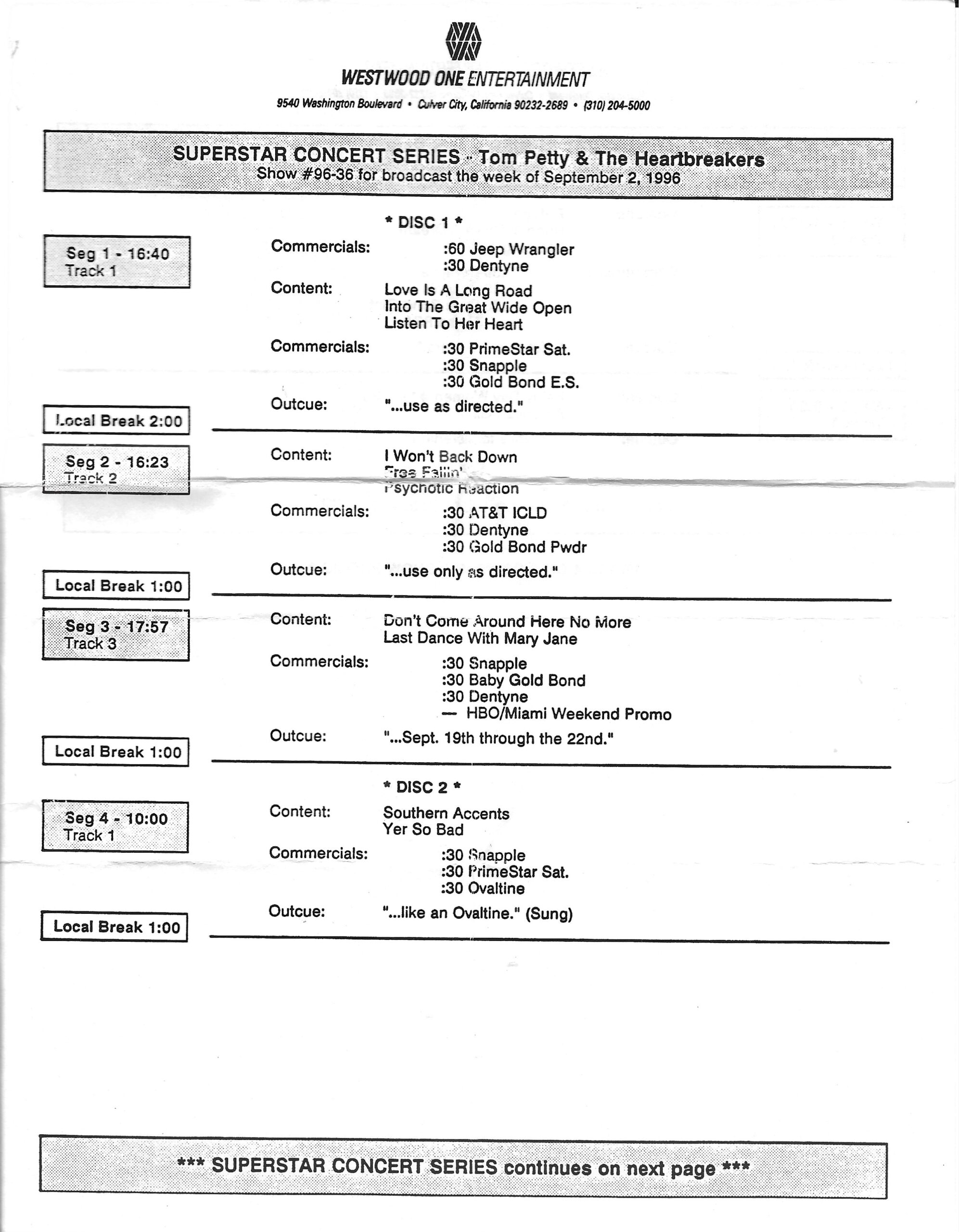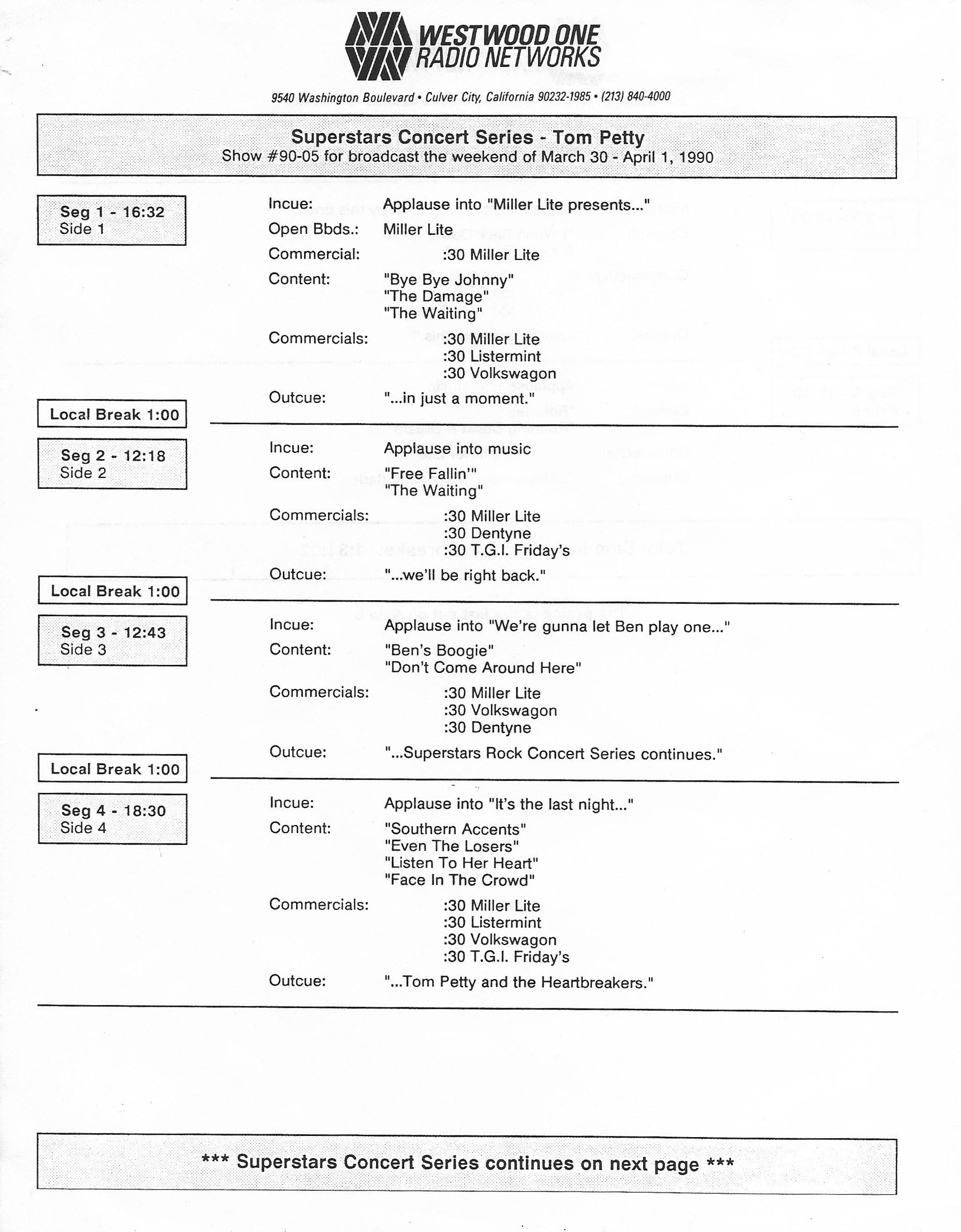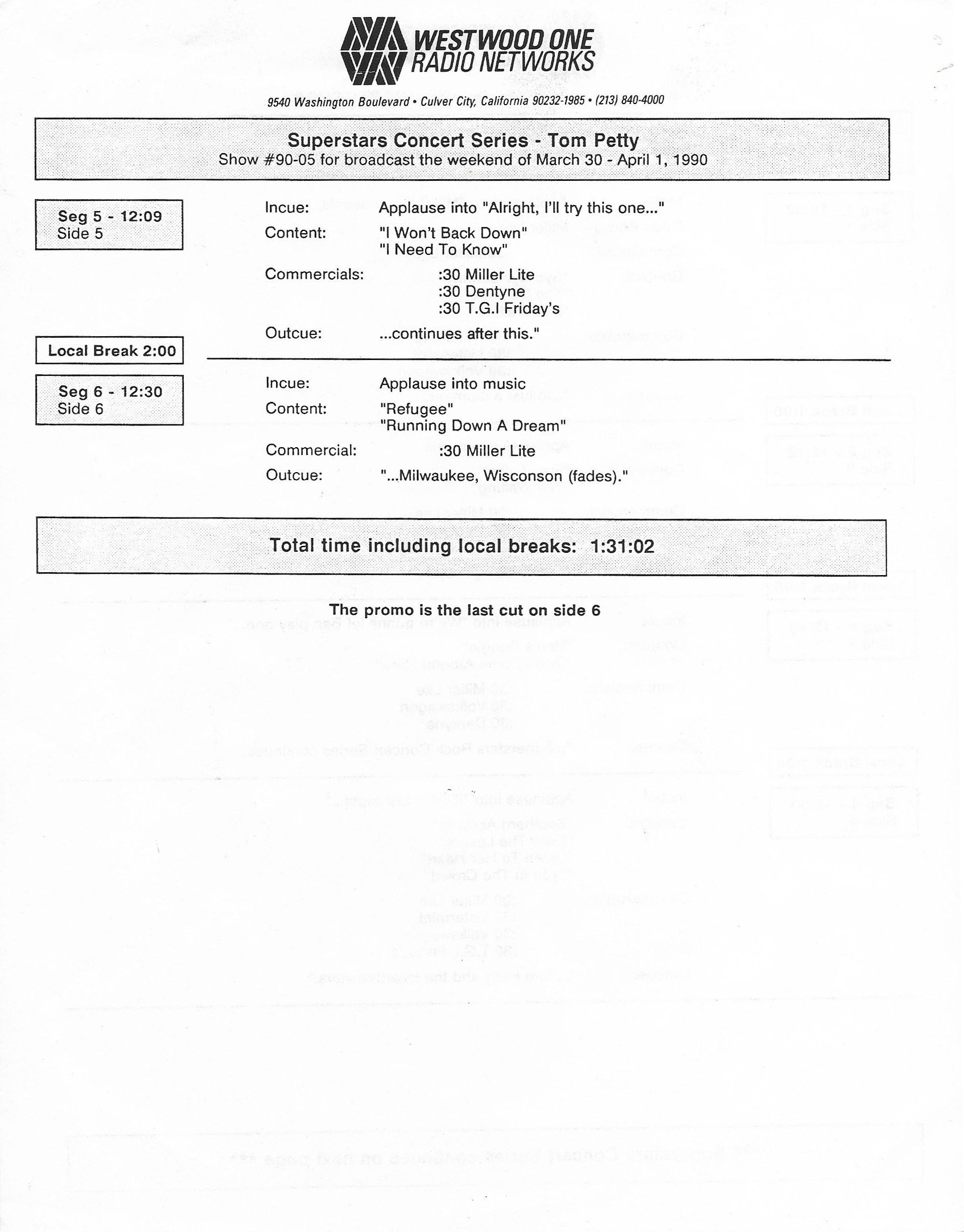 Westwood One two-disc (but not two-part) show featuring classic songs by Tom Petty and his band The Heartbreakers. A highly edited version of the famous “Homecoming Concert.” Contains commercial blocks and DJ introductions by J.J. Jackson.