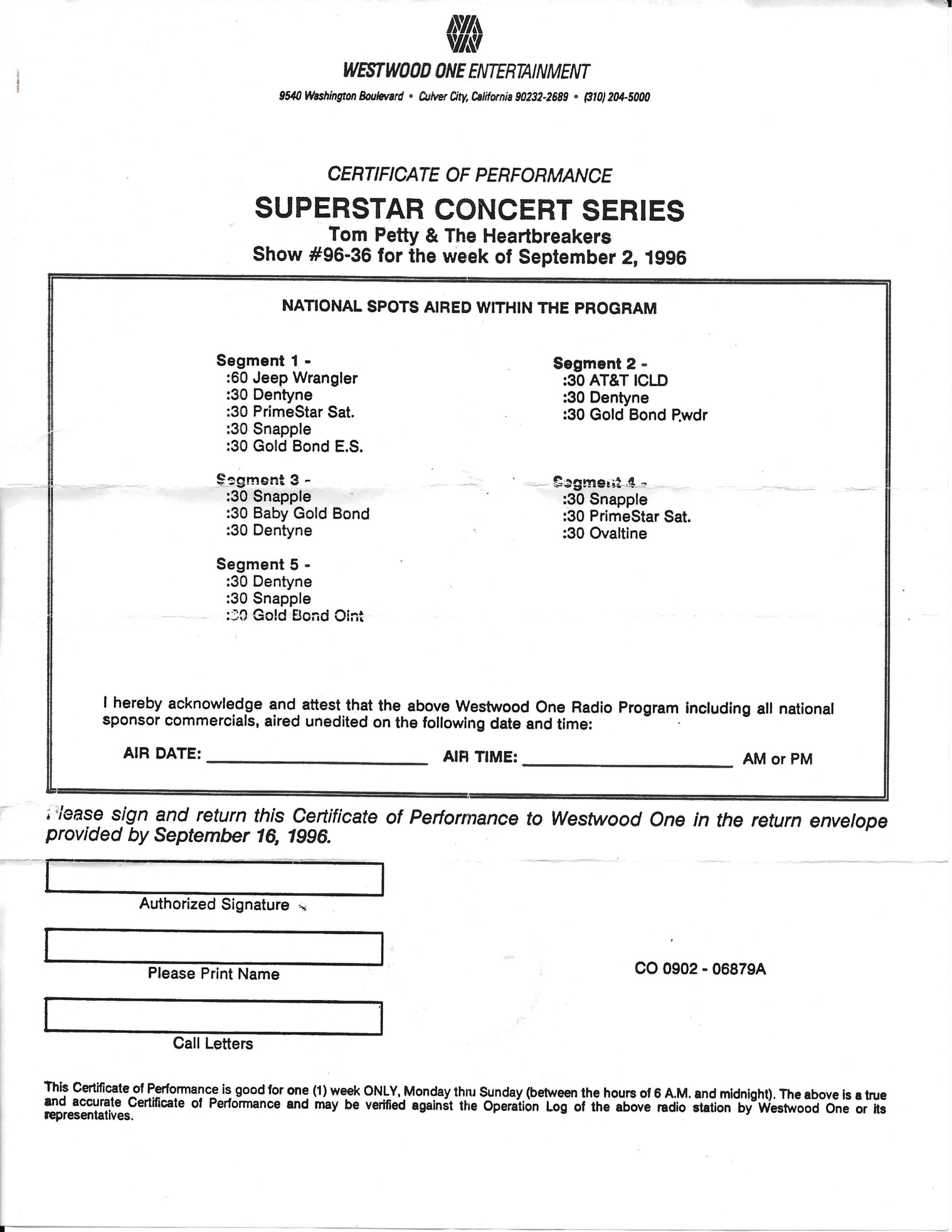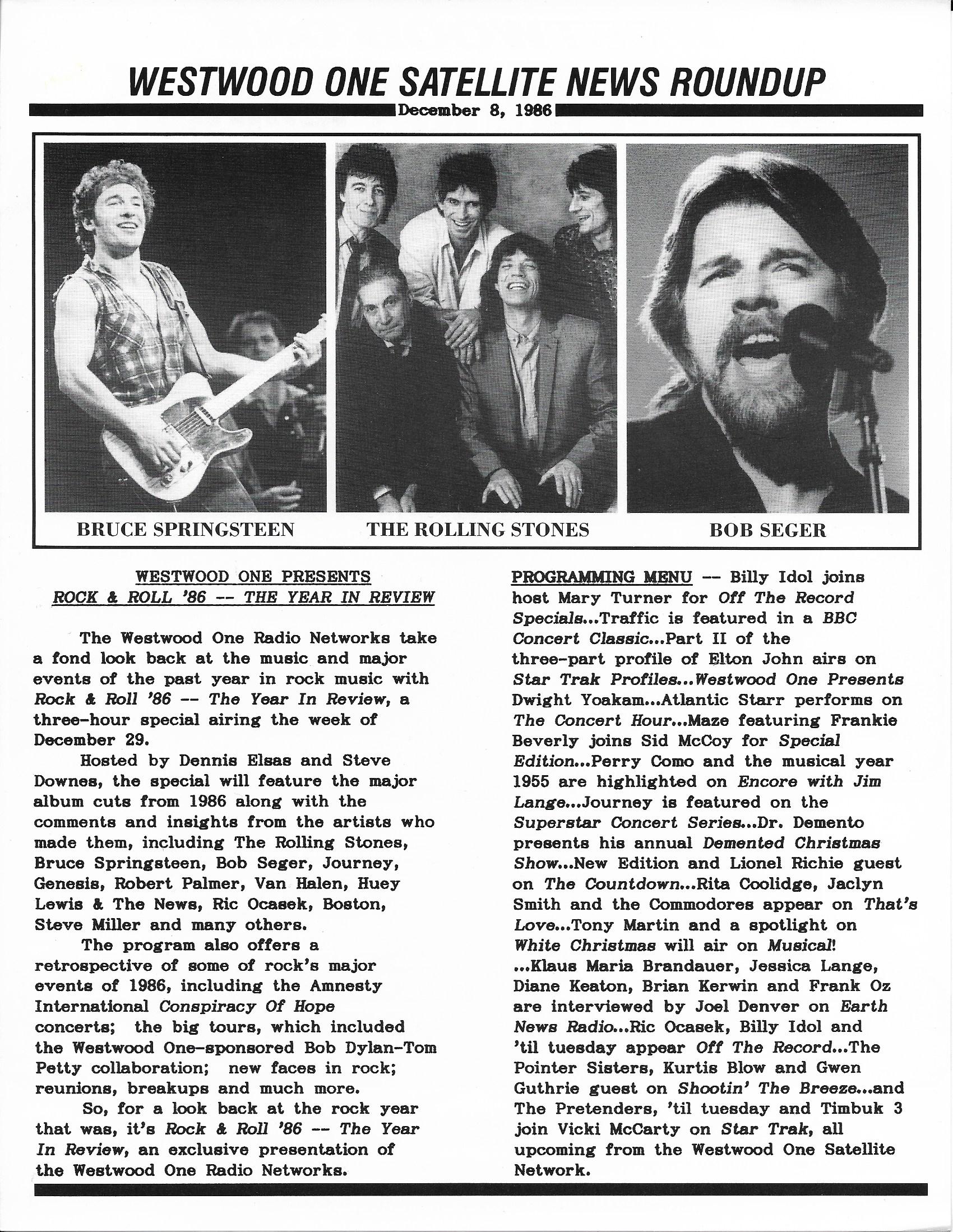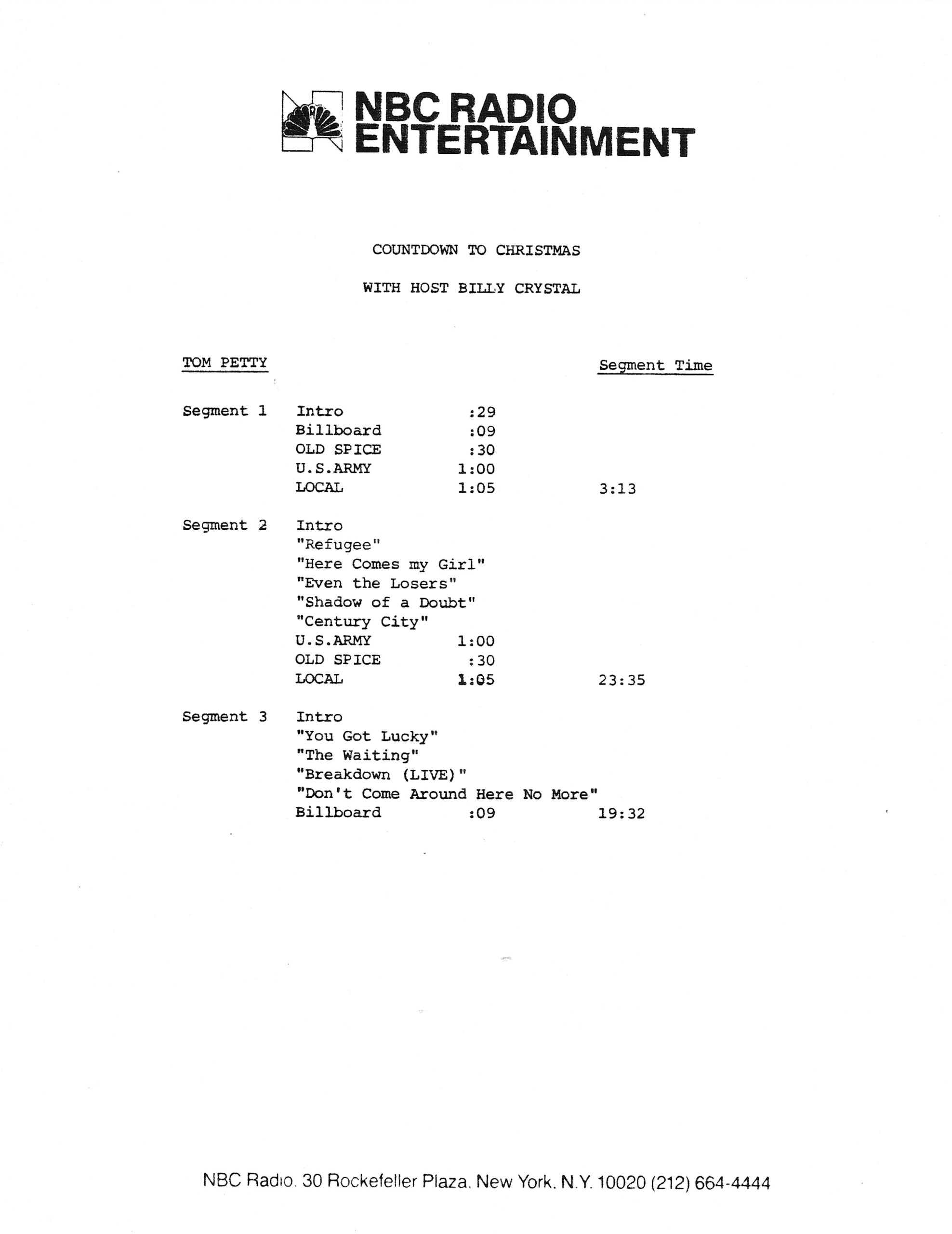 Westwood One two-disc (but not two-part) show featuring classic songs by Tom Petty and his band The Heartbreakers. A highly edited version of the famous “Homecoming Concert.” Contains commercial blocks and DJ introductions by J.J. Jackson.