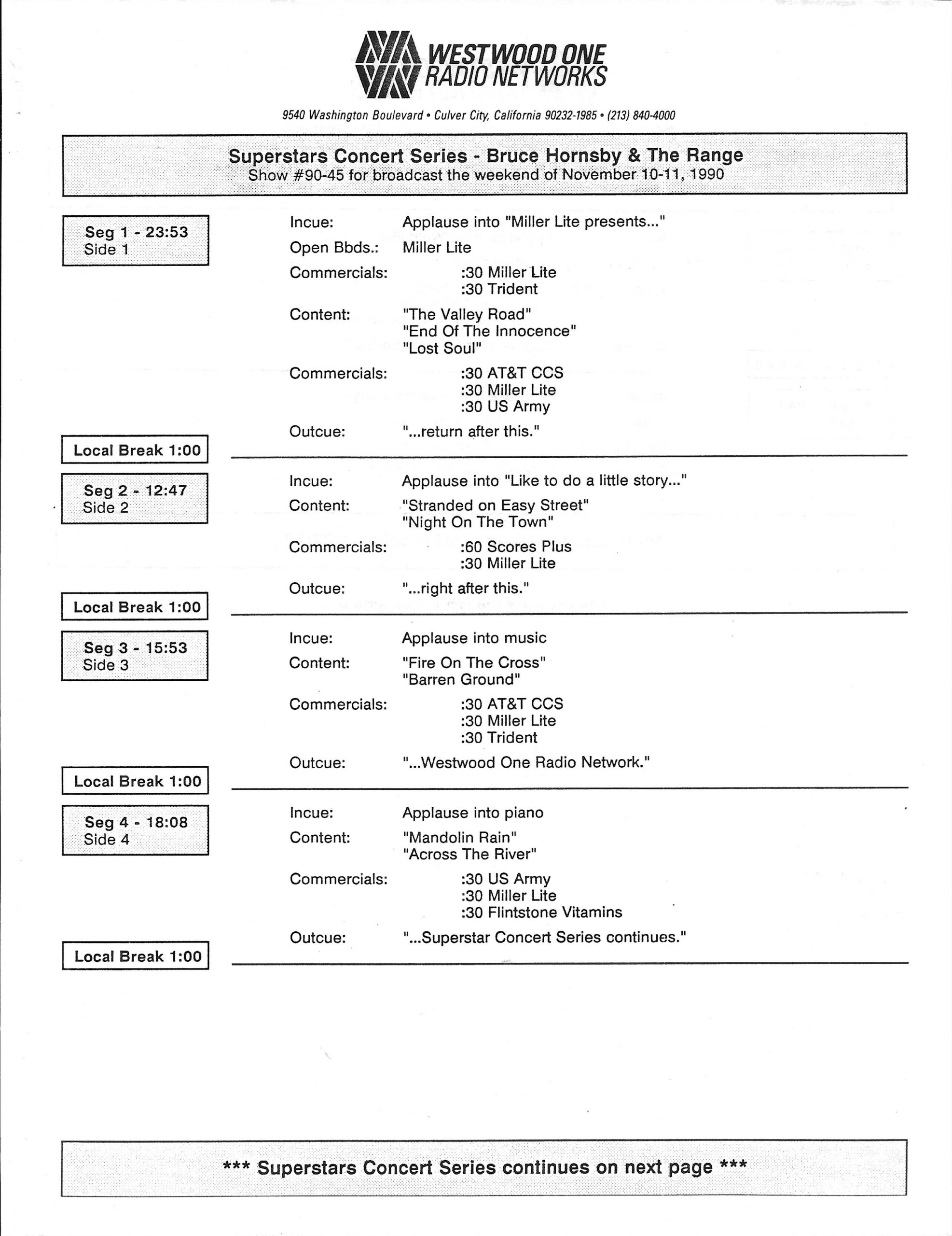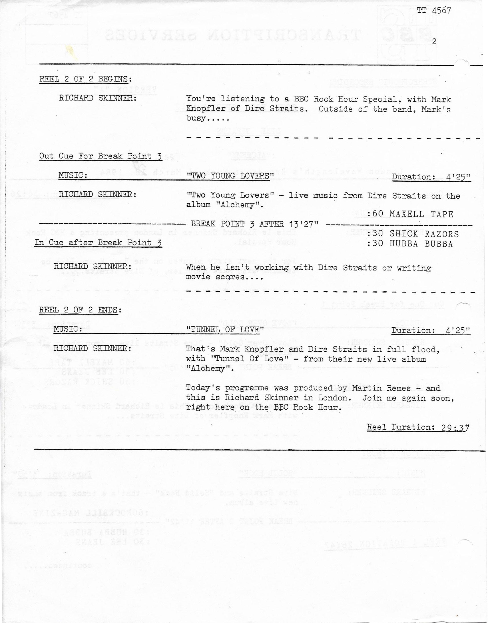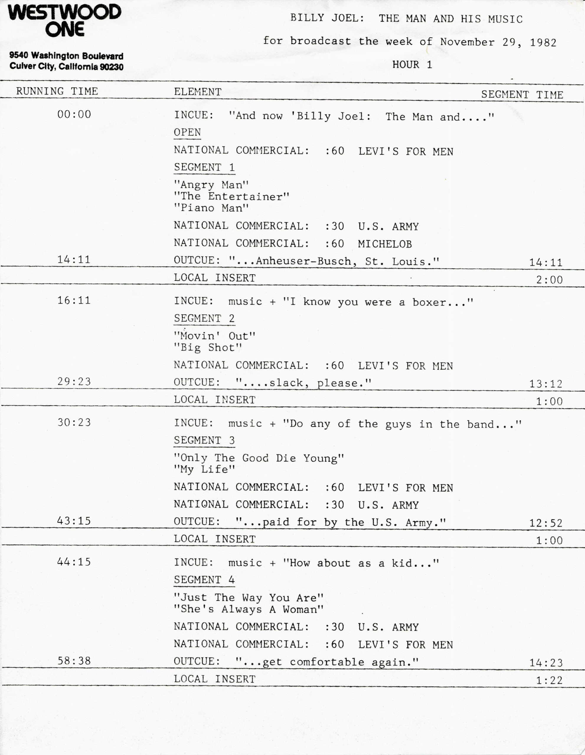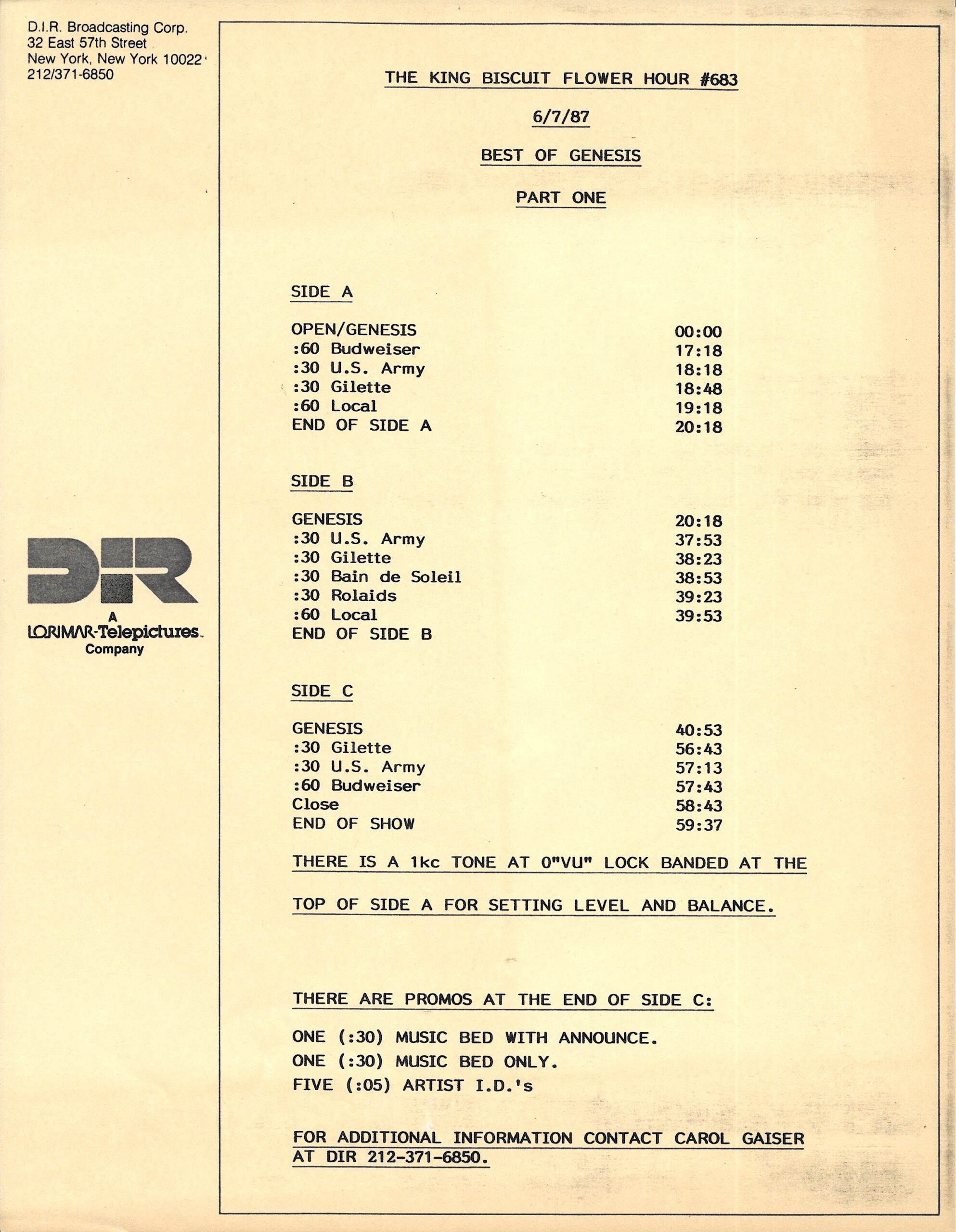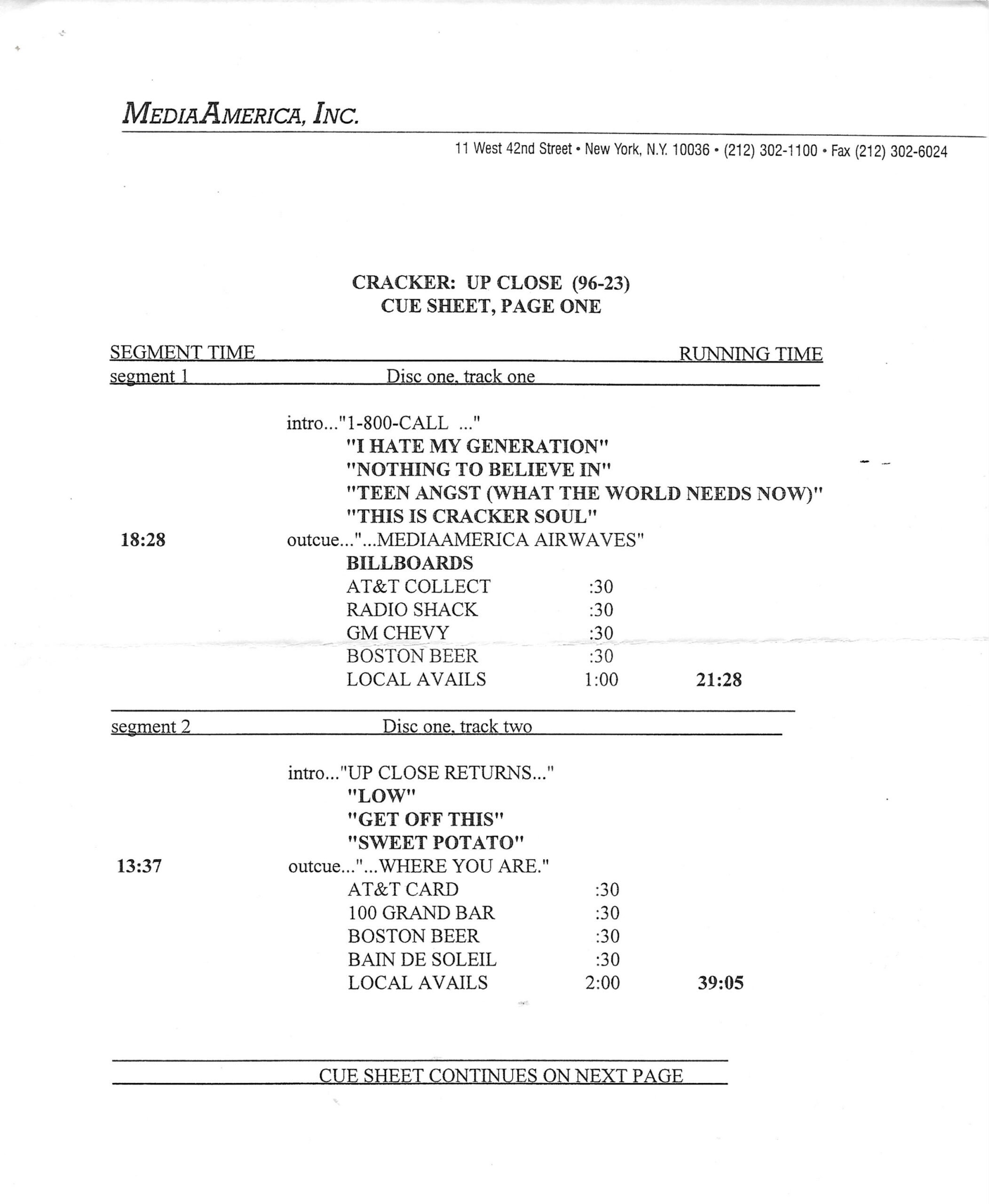 Tracks 1 – 4 are the actual radio show, Tracks 5 – 7 are promo spots, Tracks 8 – 17 are commercial spots, while Tracks 18 – 29 are the actual interview segments separated into individual tracks.