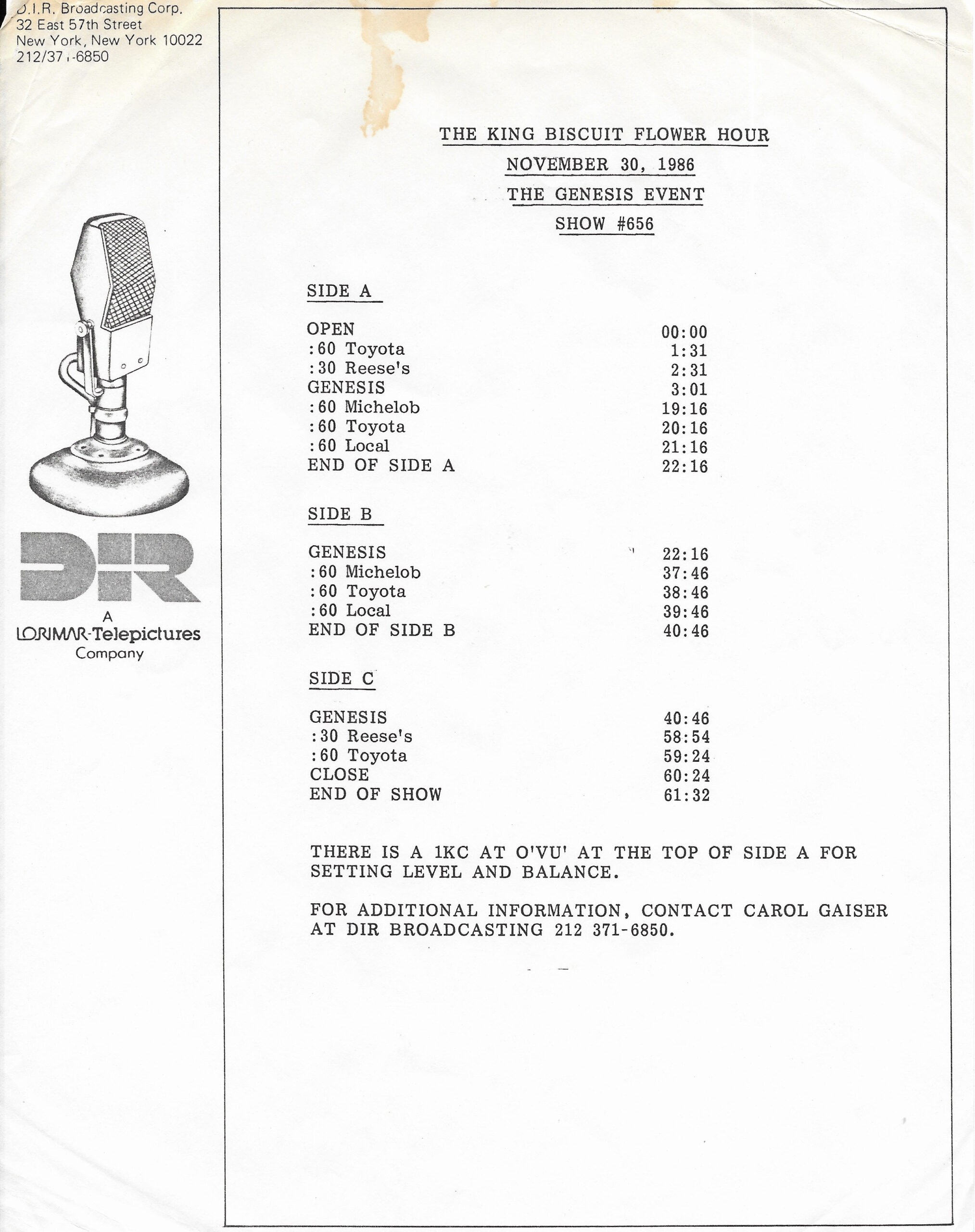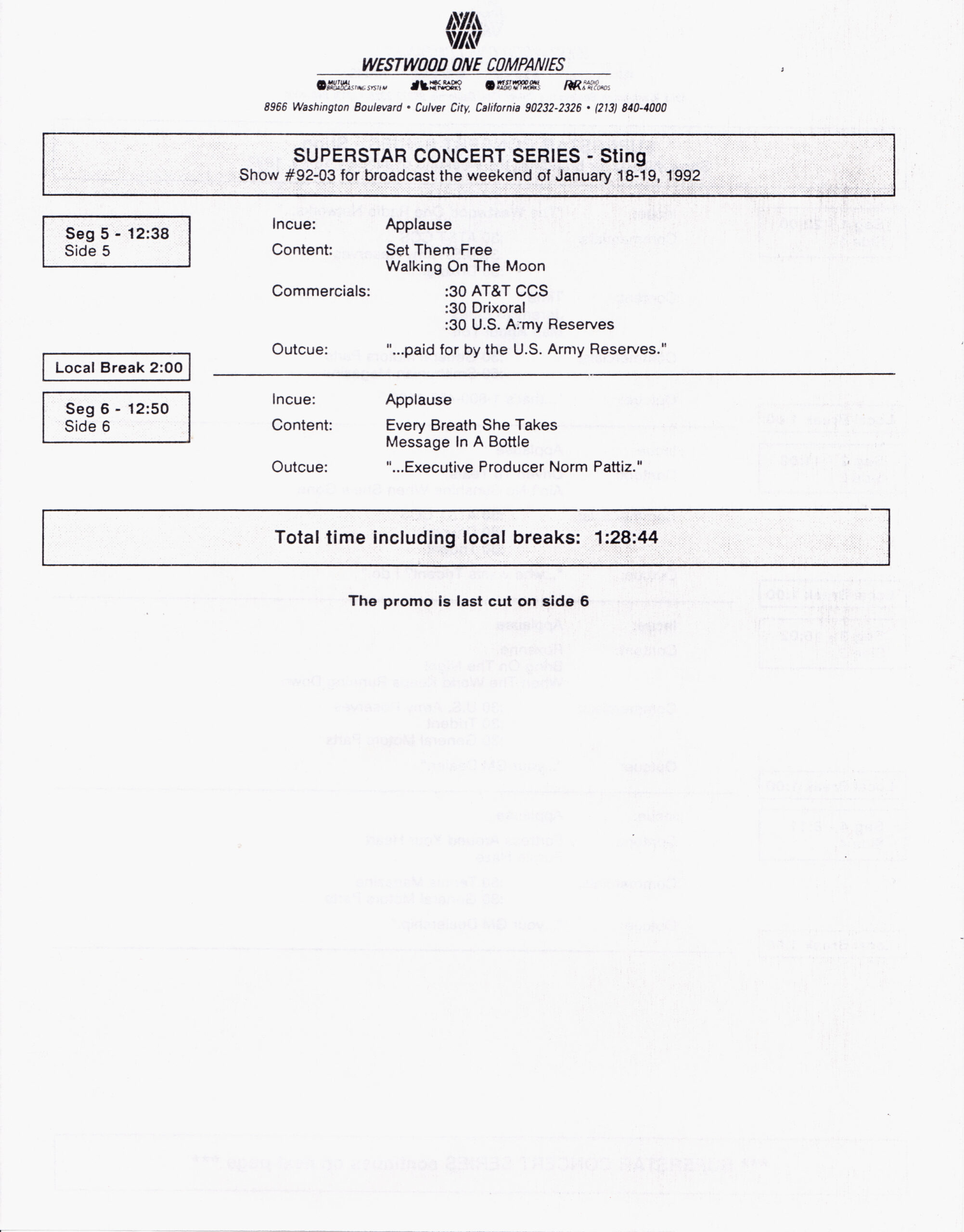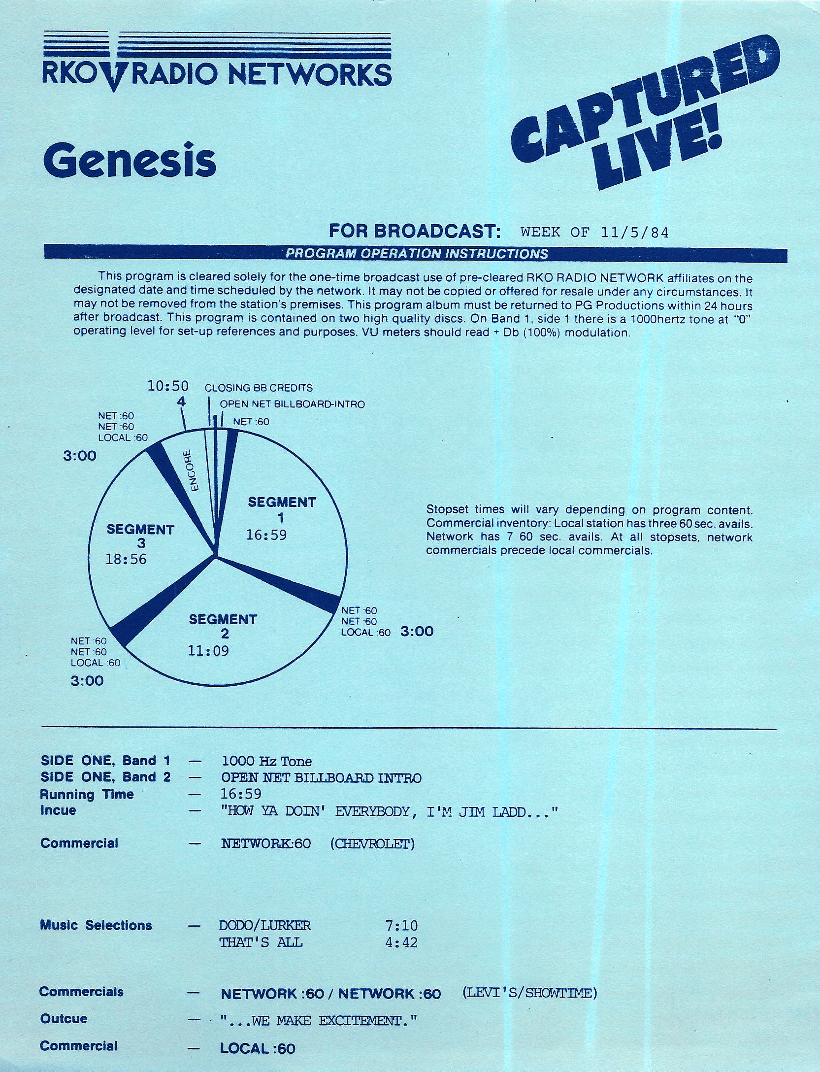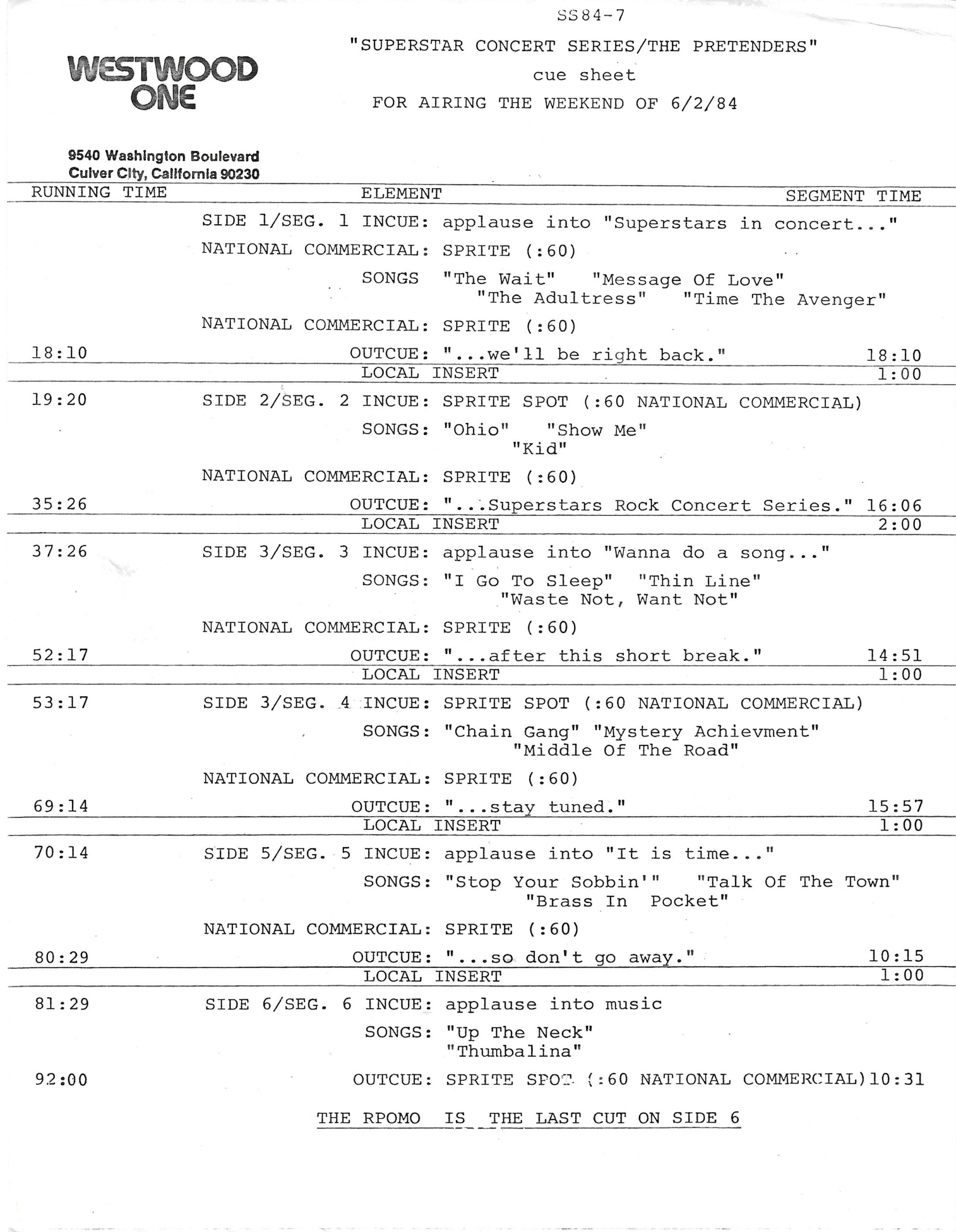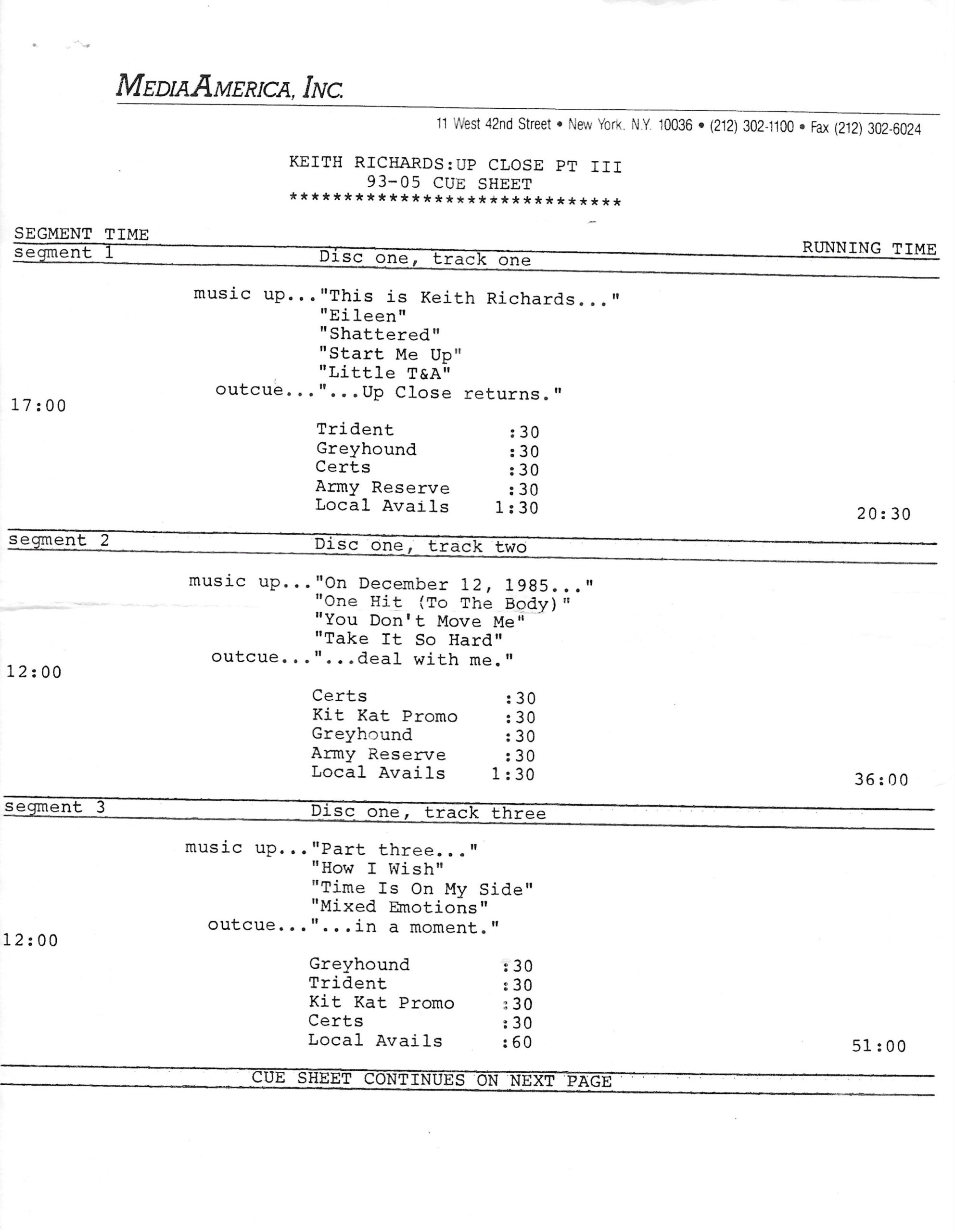 Tracks 1 – 4 are the actual radio show, Tracks 5 – 7 are promo spots, Tracks 8 – 17 are commercial spots, while Tracks 18 – 29 are the actual interview segments separated into individual tracks.