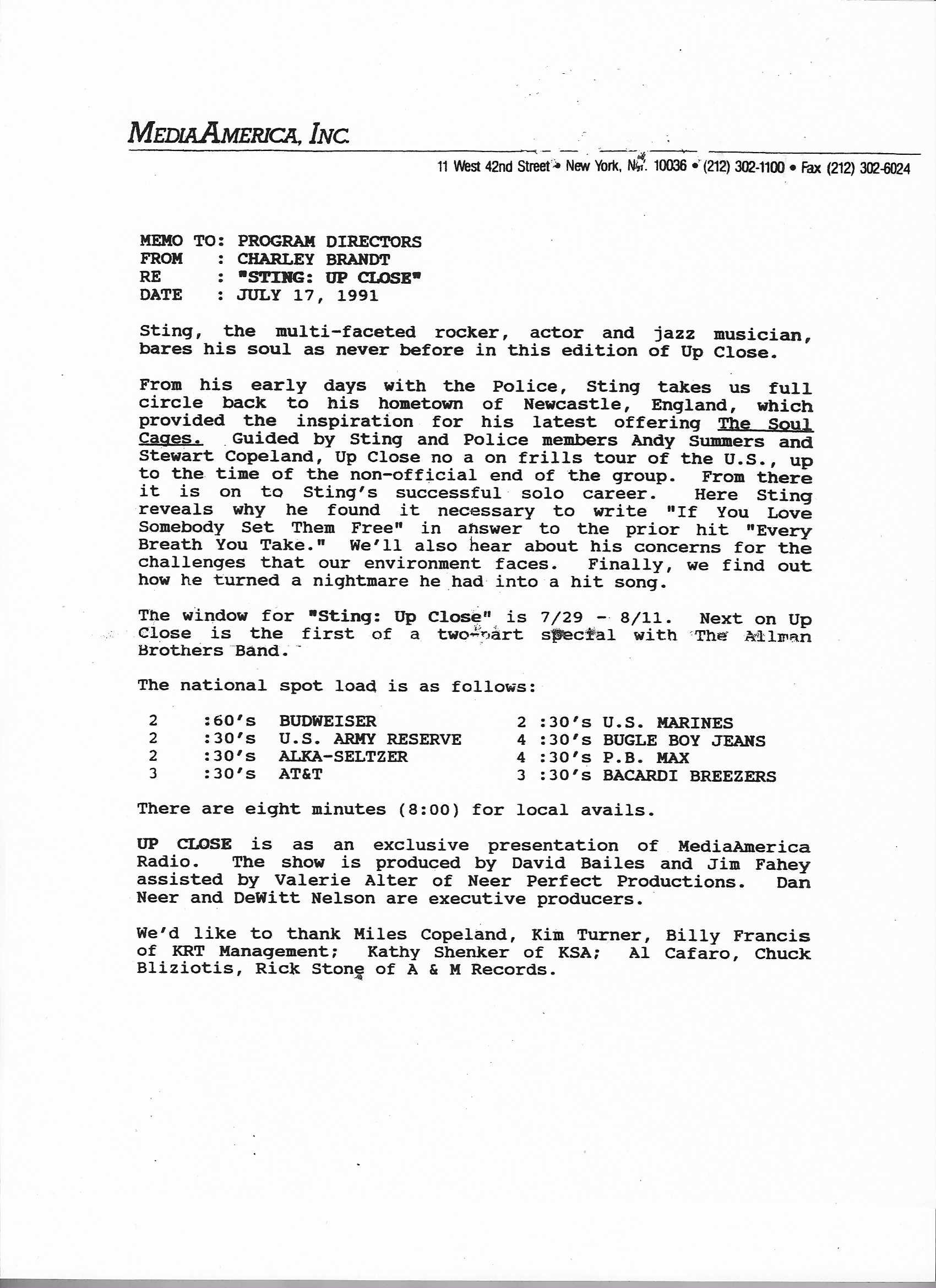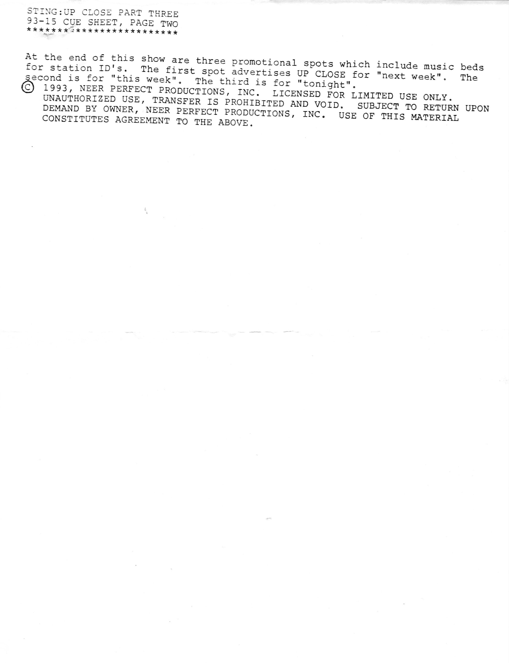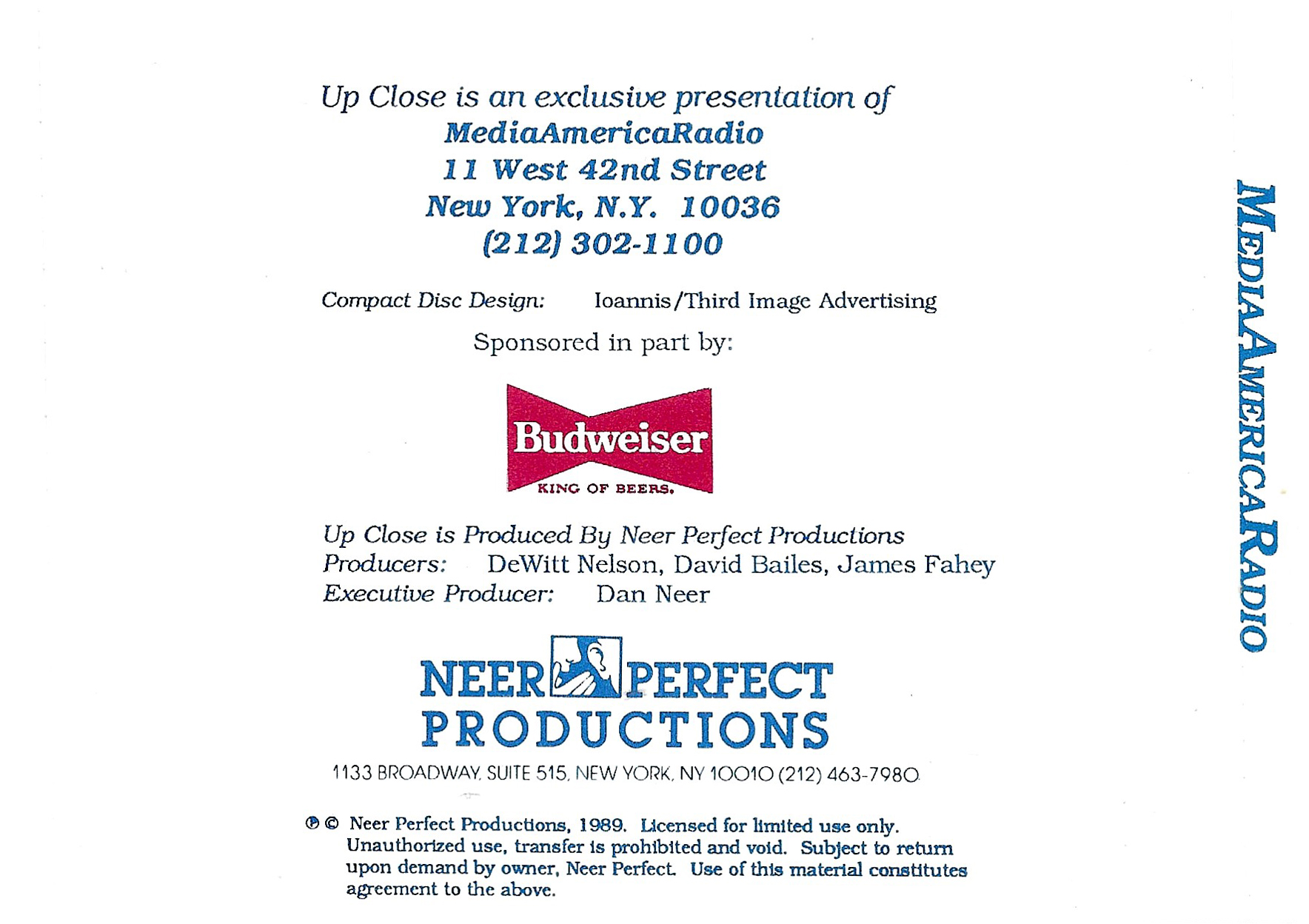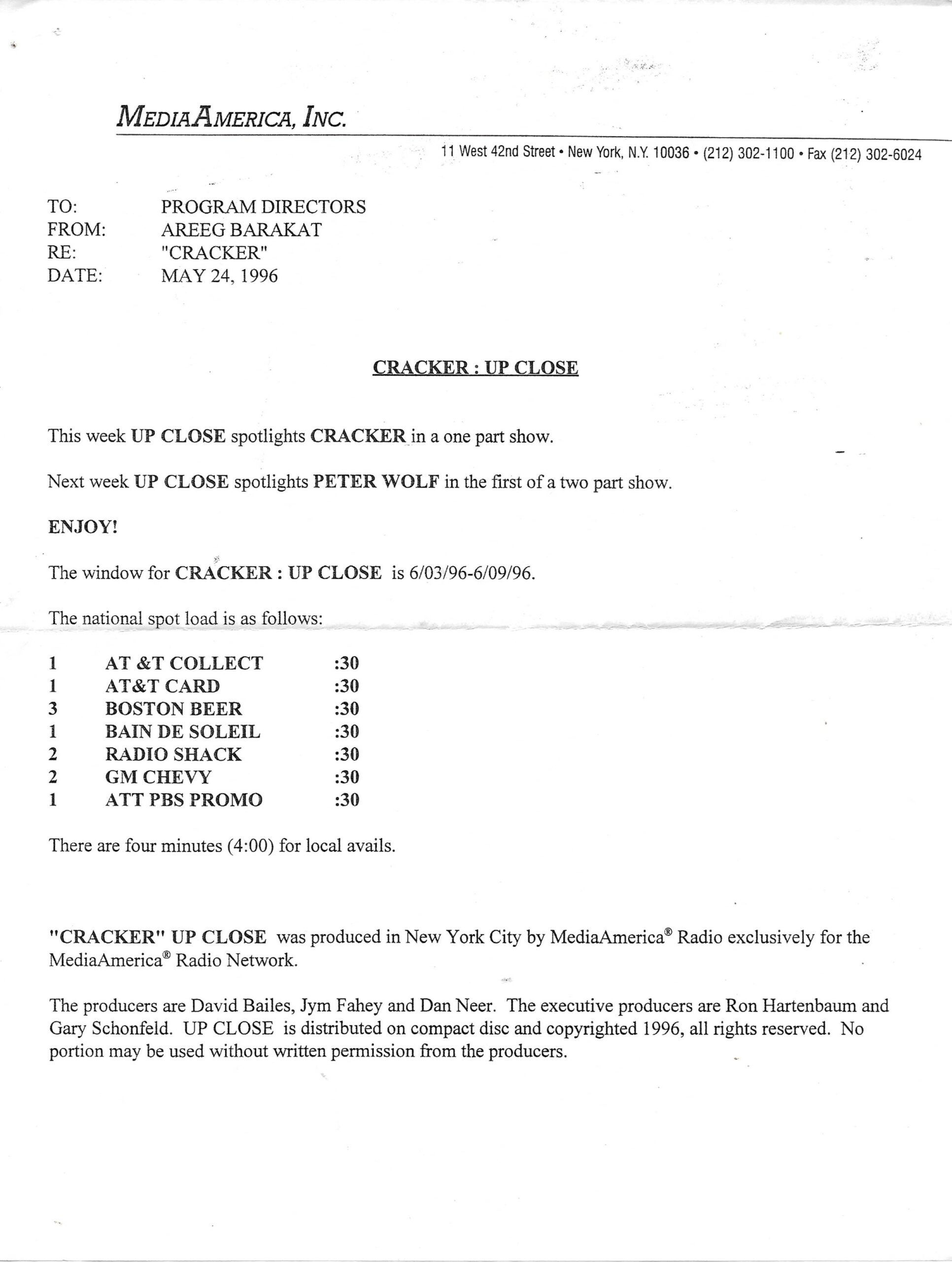 Exact same L.A. Forum show as the show on compact discs from June 1992 and February 1995, but repackaged onto compact disc for airplay in February of 1996. Unlike the February ’95 version, this show does not contain any tracks from Rusted Root, nor does Bill Minkin make an appearance. Contains original commercial blocks and DJ intros by Up Close host Dan Neer.