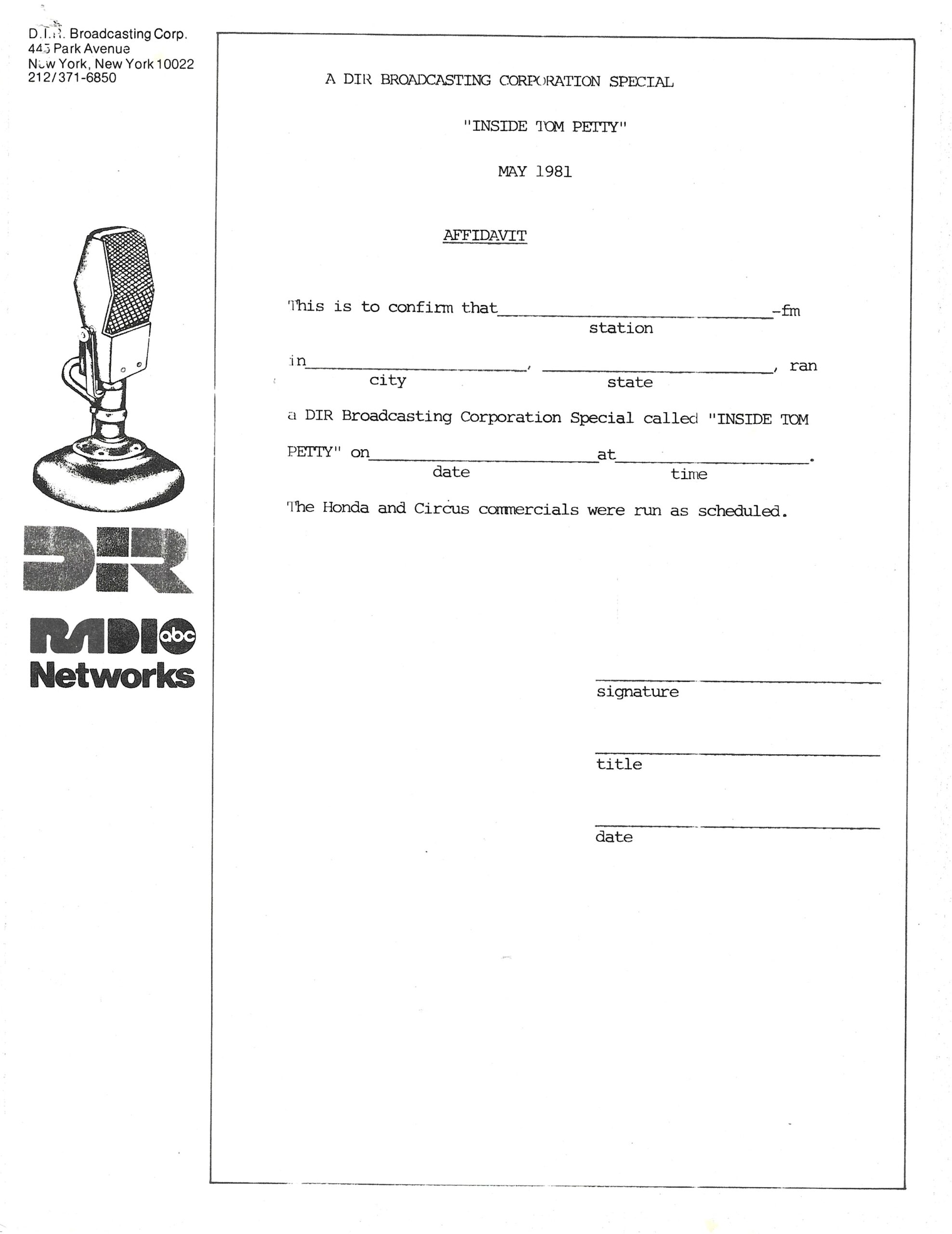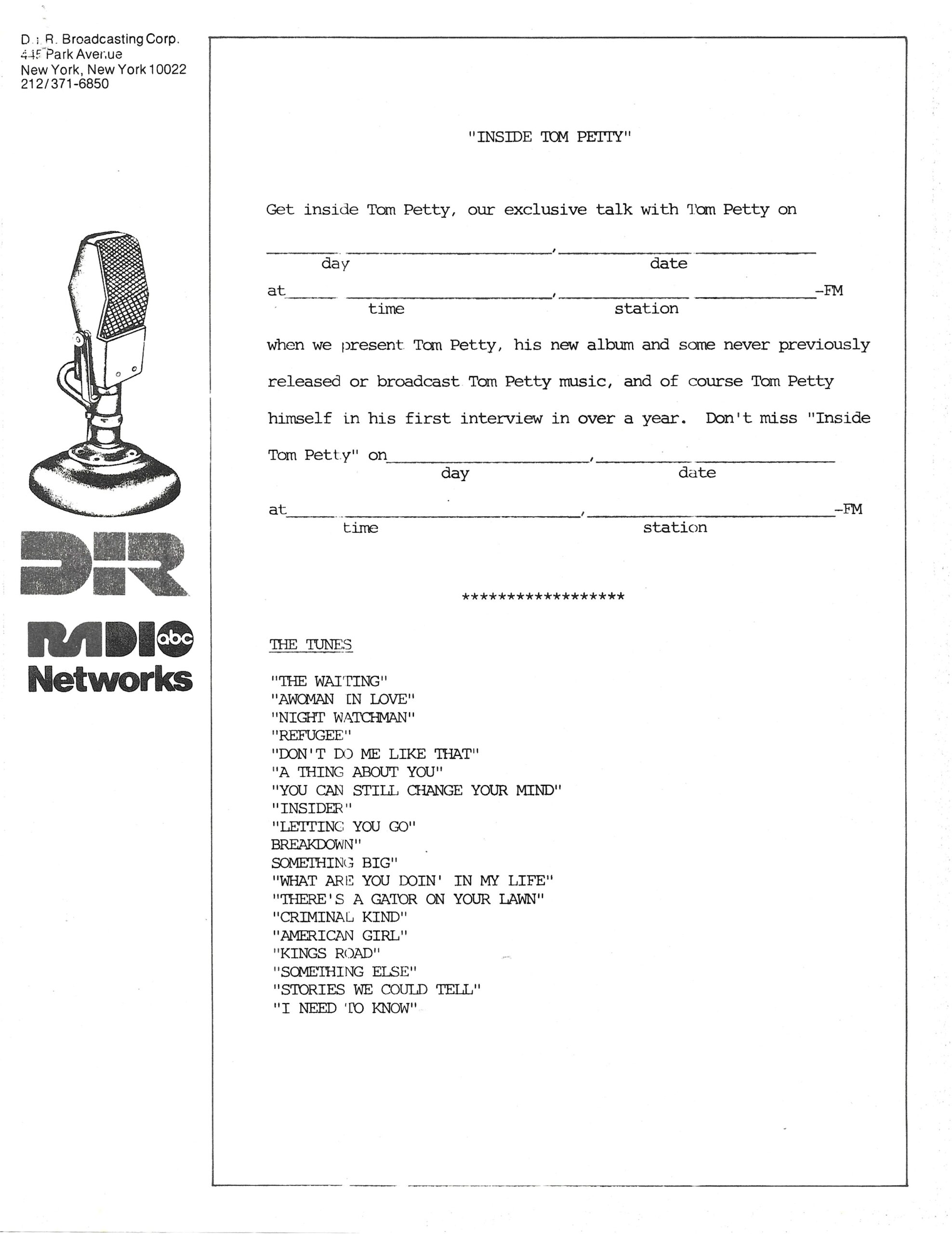 A one-off, triple LP, two-hour radio special featuring interviews and music with Tom Petty. Released to coincide with his 1981 release HARD PROMISES, this special features host and interviewer Jack Snyder speaking with Petty in person about his musical influences, his career up to that point, and the aforementioned album. Lots of album tracks and in-depth discussion between Petty and Snyder, who appear together.