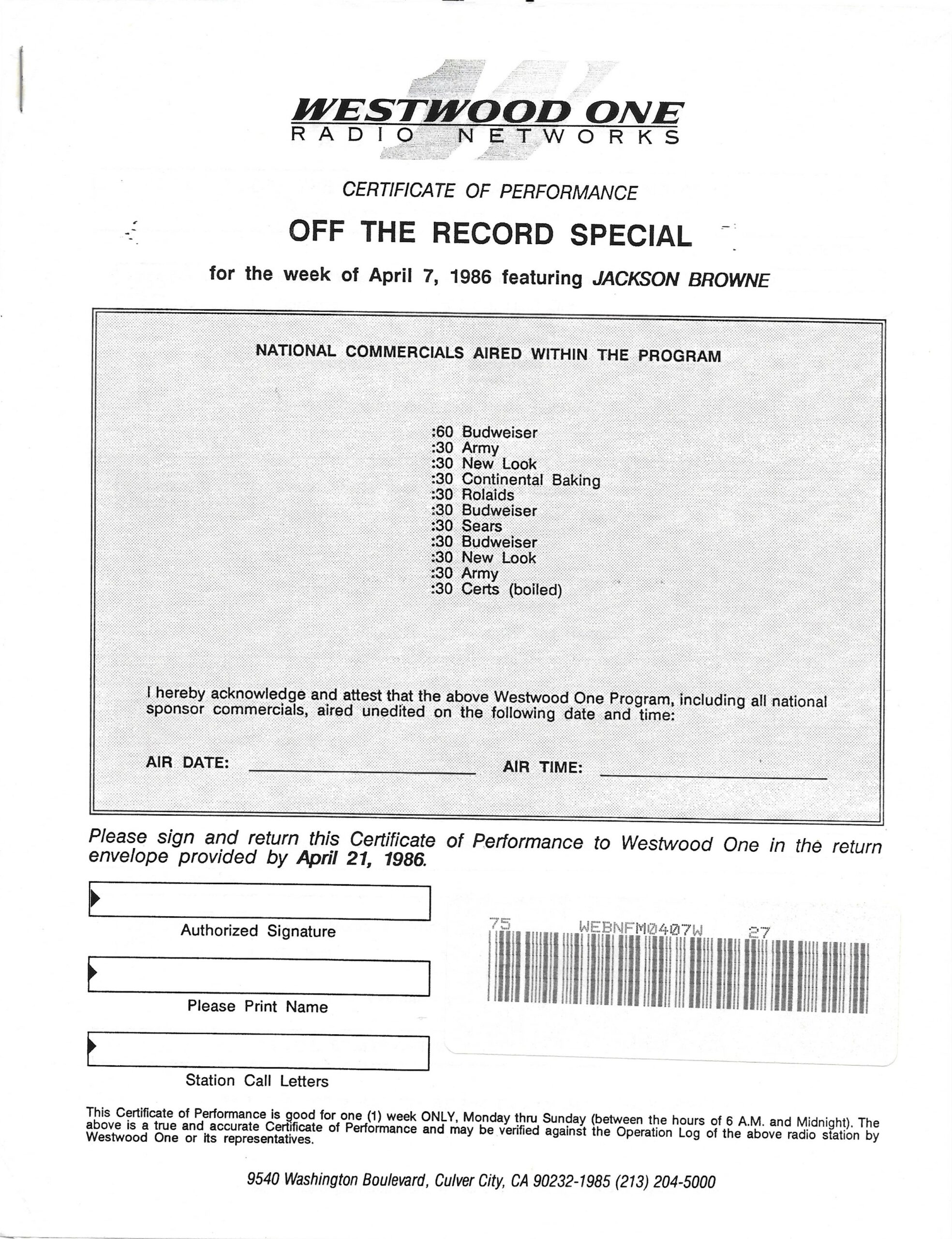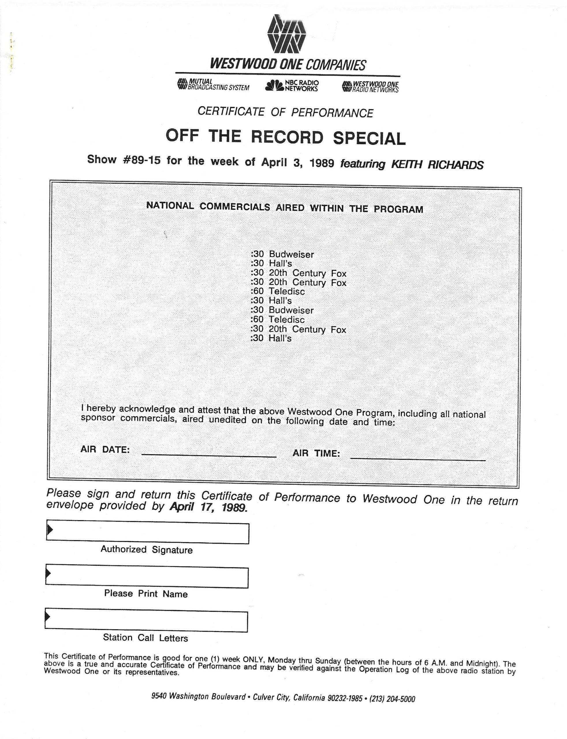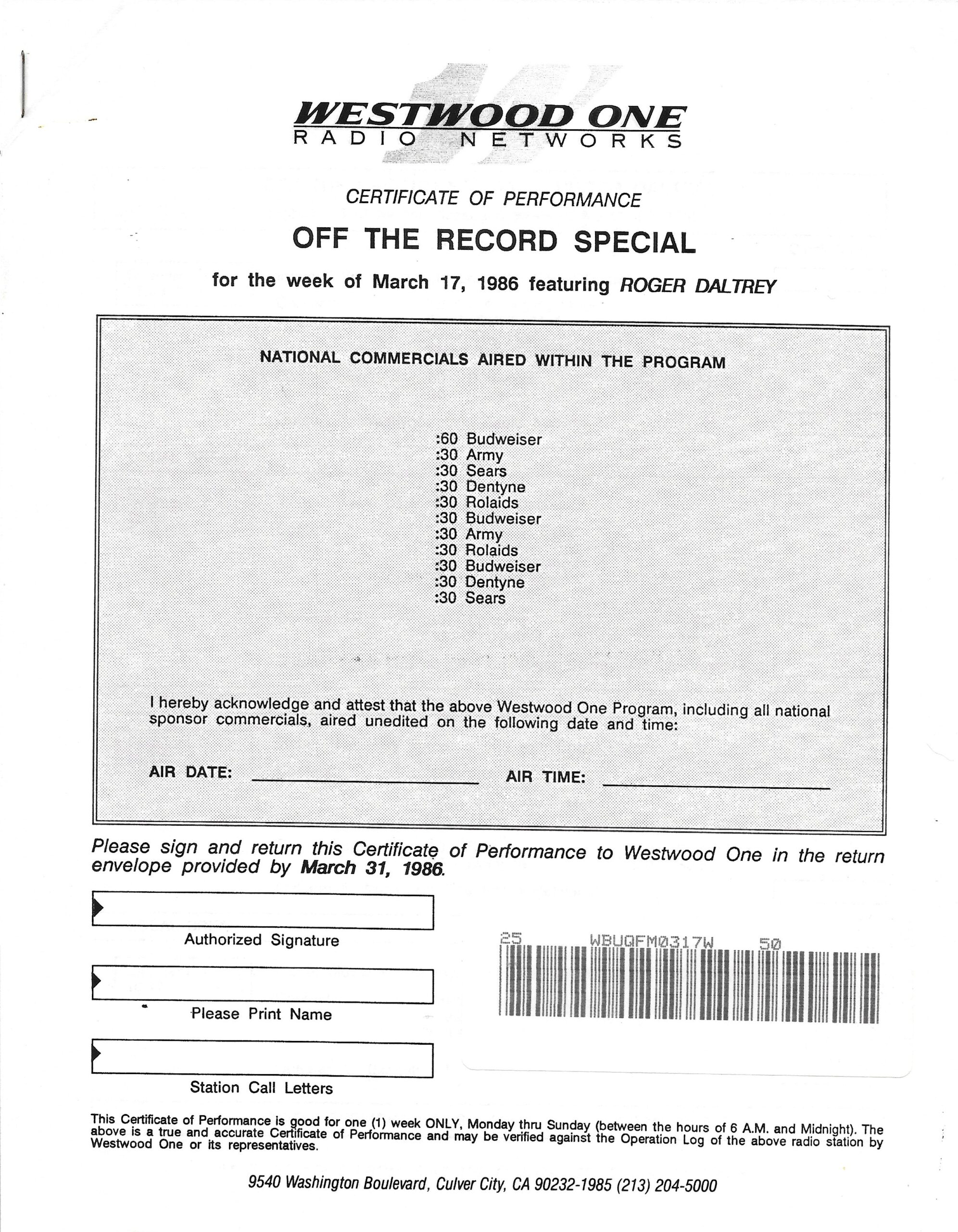 Westwood One radio Networks Records