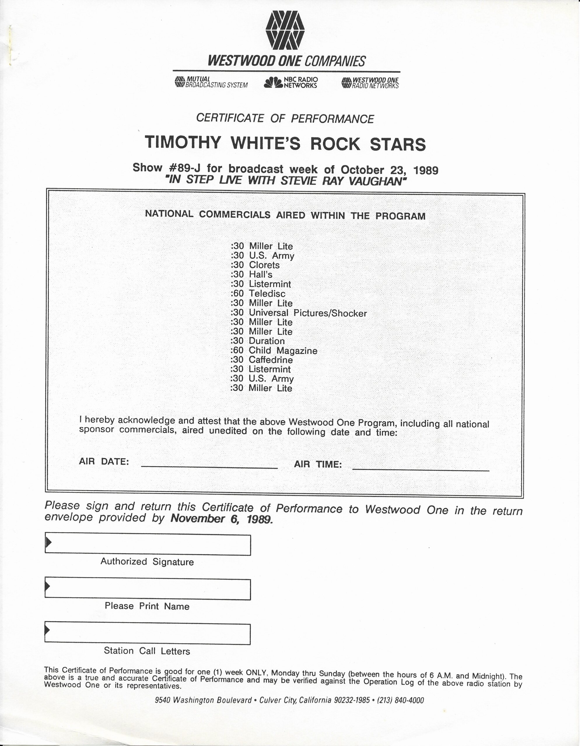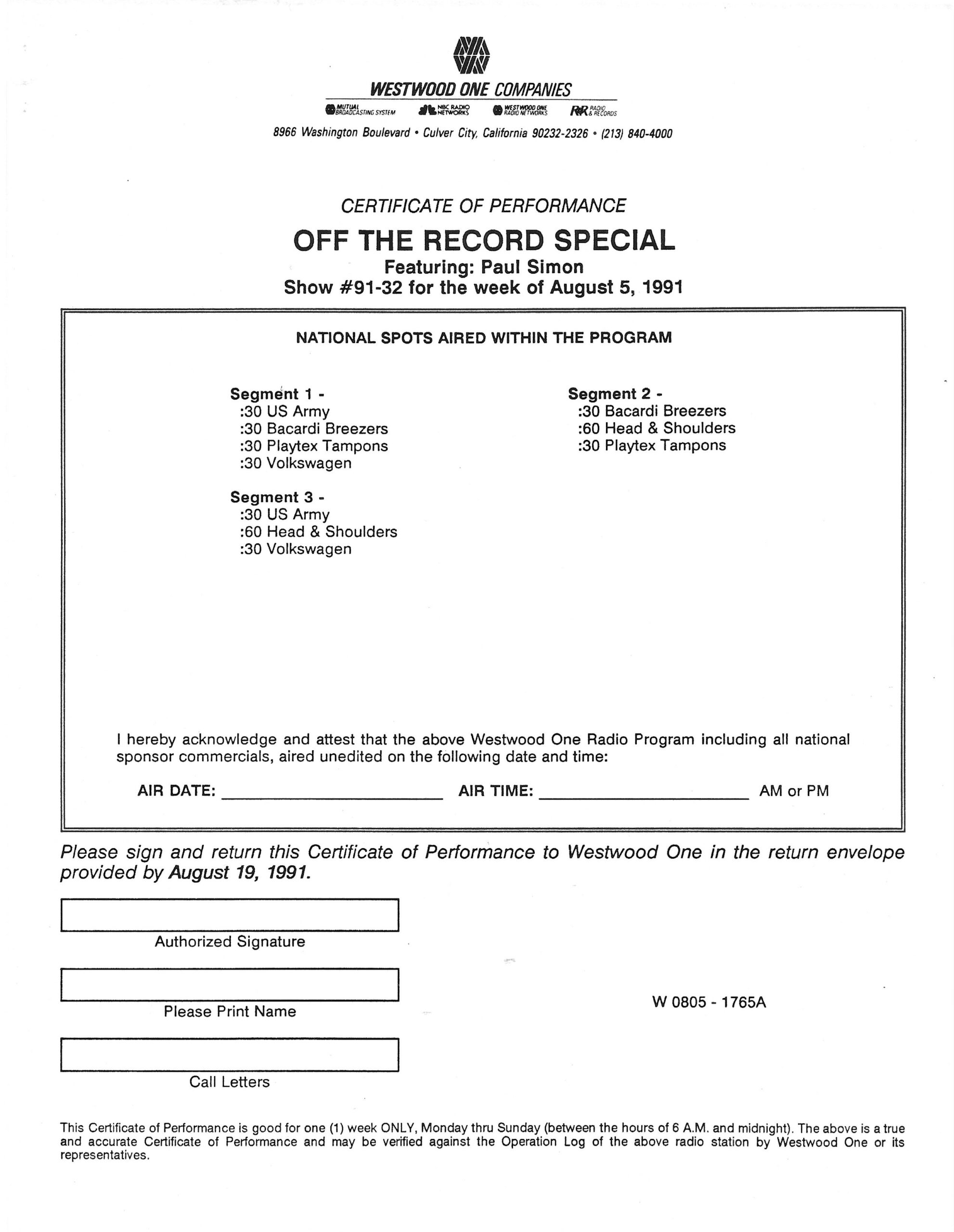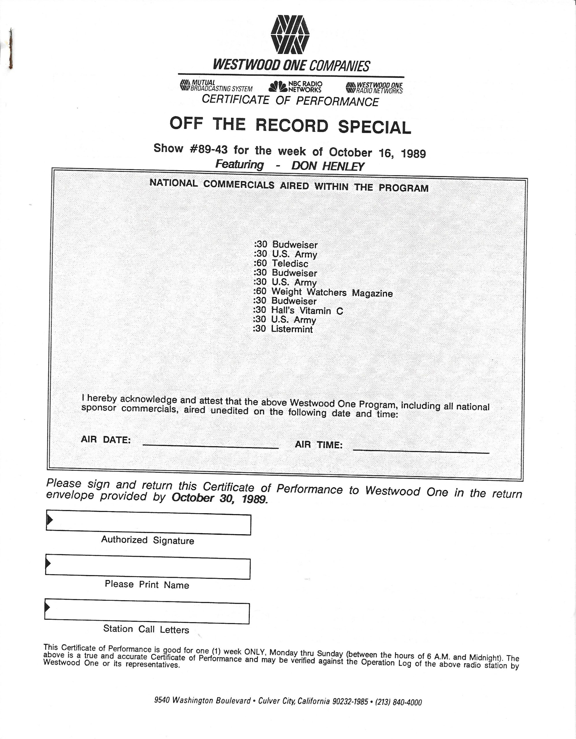 Westwood One radio Networks Records