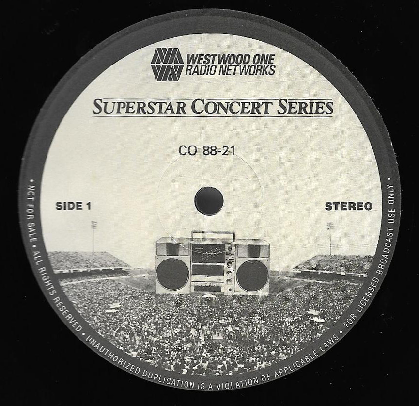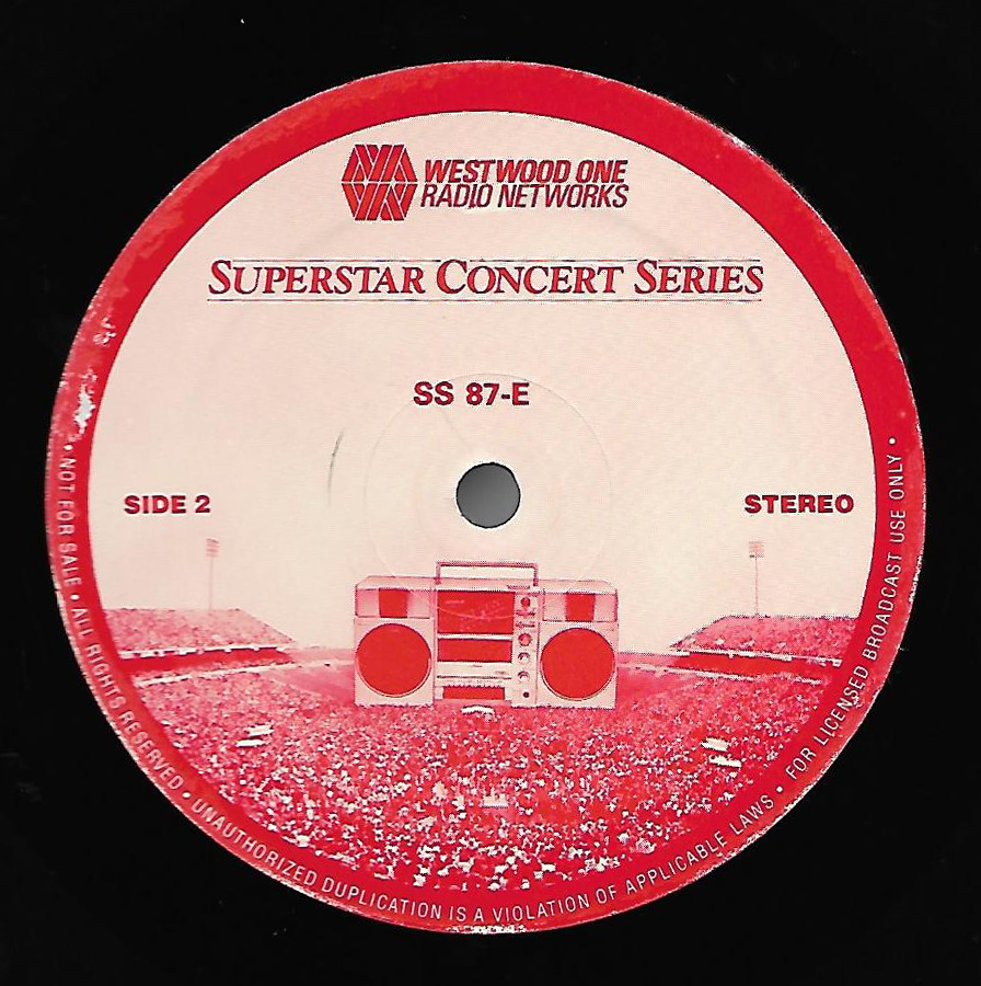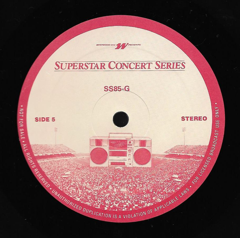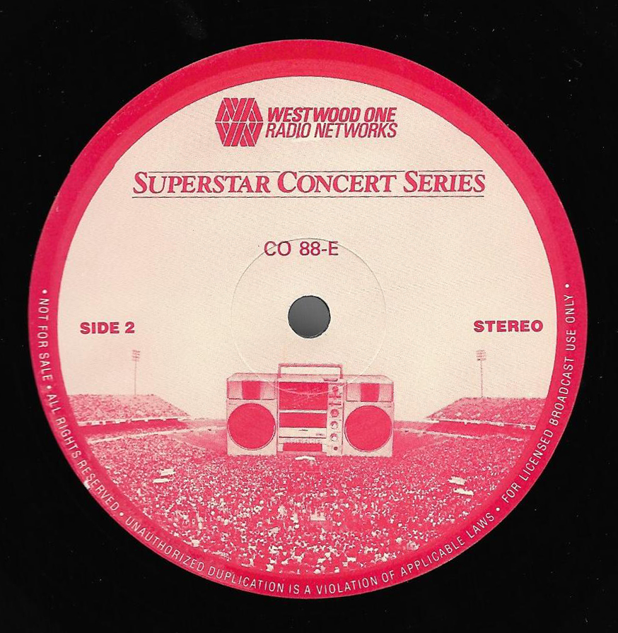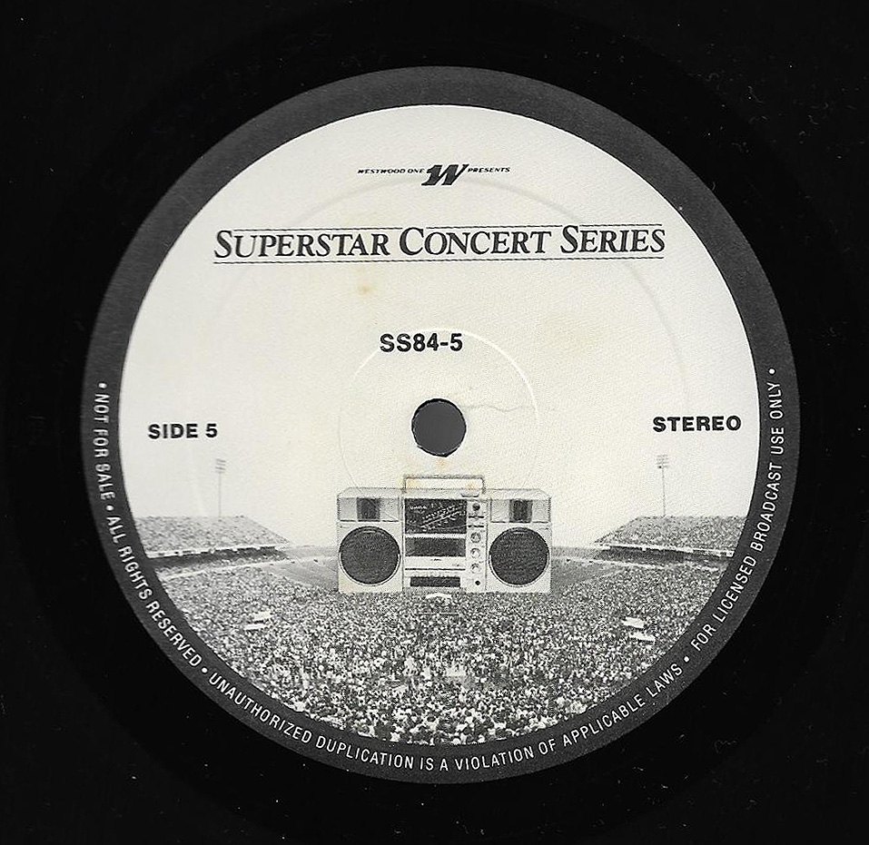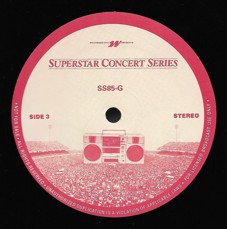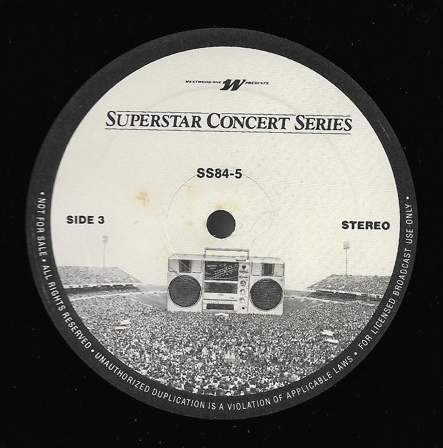 Here is another in the Superstar Concert Series of shows, this time featuring a “greatest hits” style show with Genesis. Although this is a two-disc show, it was not designed to be aired on consecutive nights or weekends. This show was broadcast in one 90 minute window in August 1999. Featuring performances from 1981 and 1984, all tracks presented are previously available on other Westwood One shows listed above. Host J.J. Jackson handles the segments breaks, with original commercial blocks included. This exact show was repackaged for broadcast in August 2000 under show #00-35, but I’ve only ever been able to find Part I for sale online.