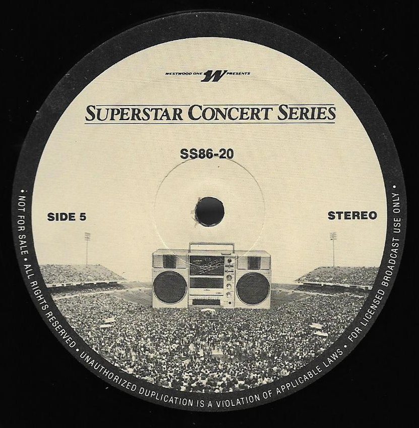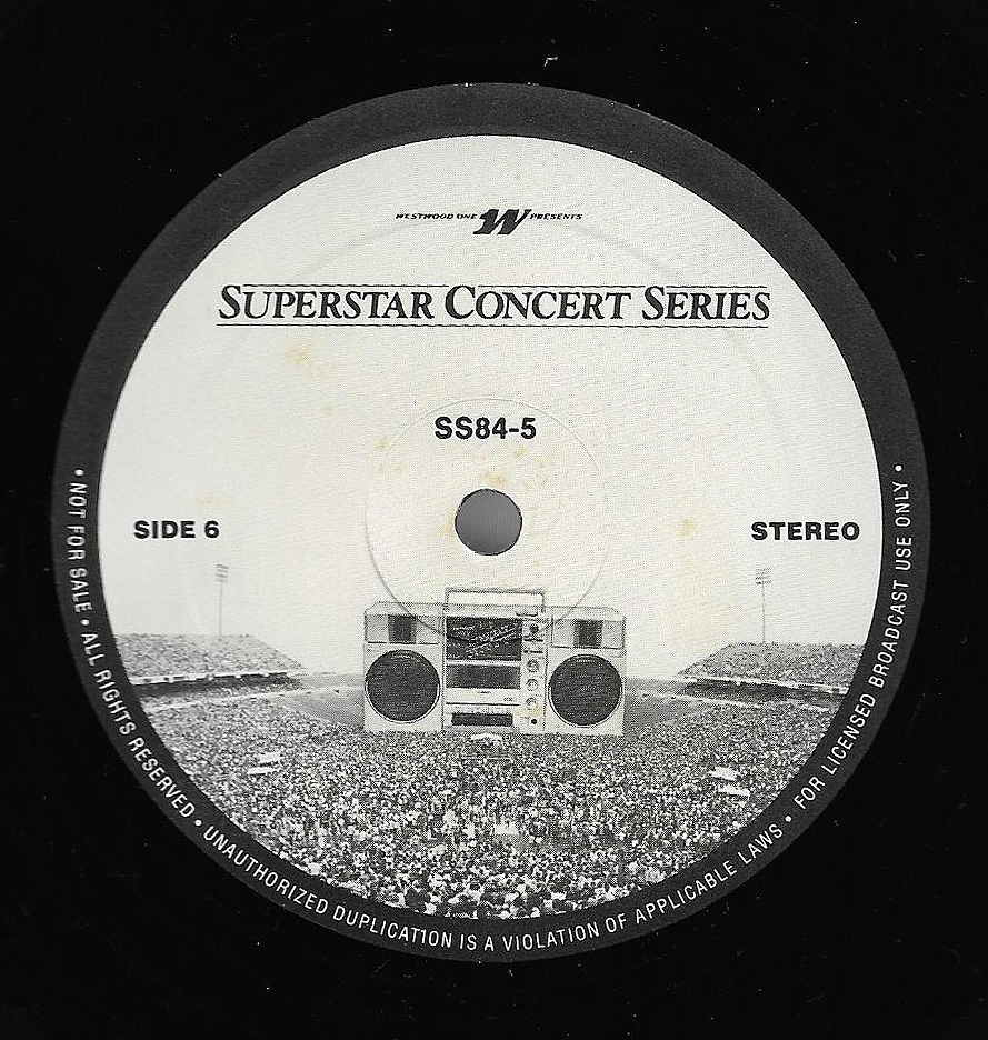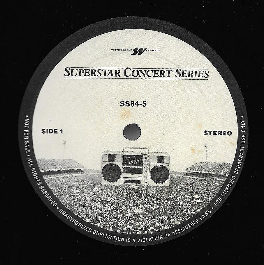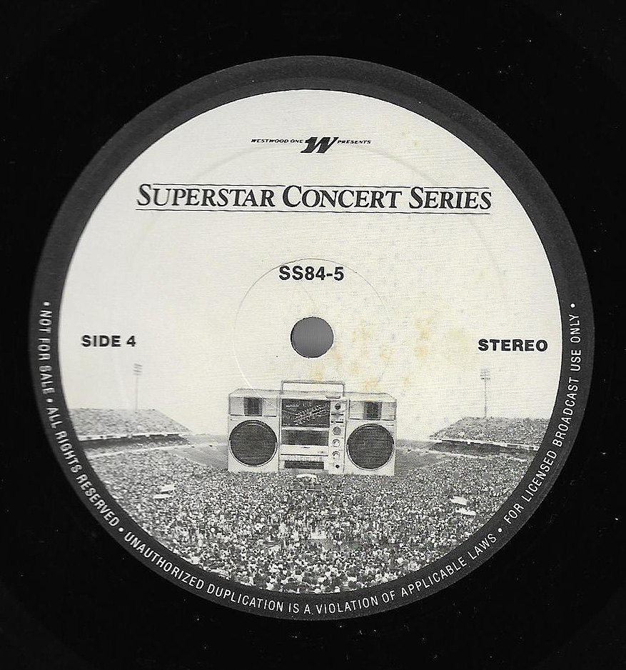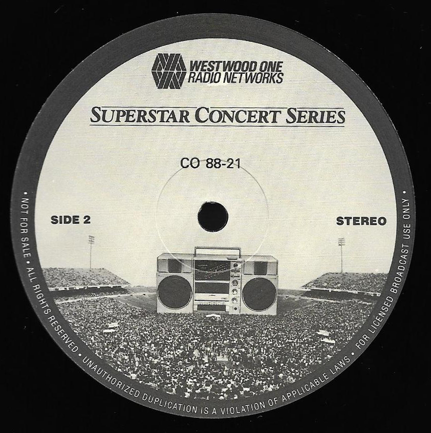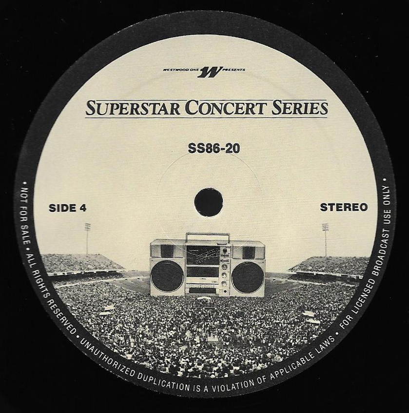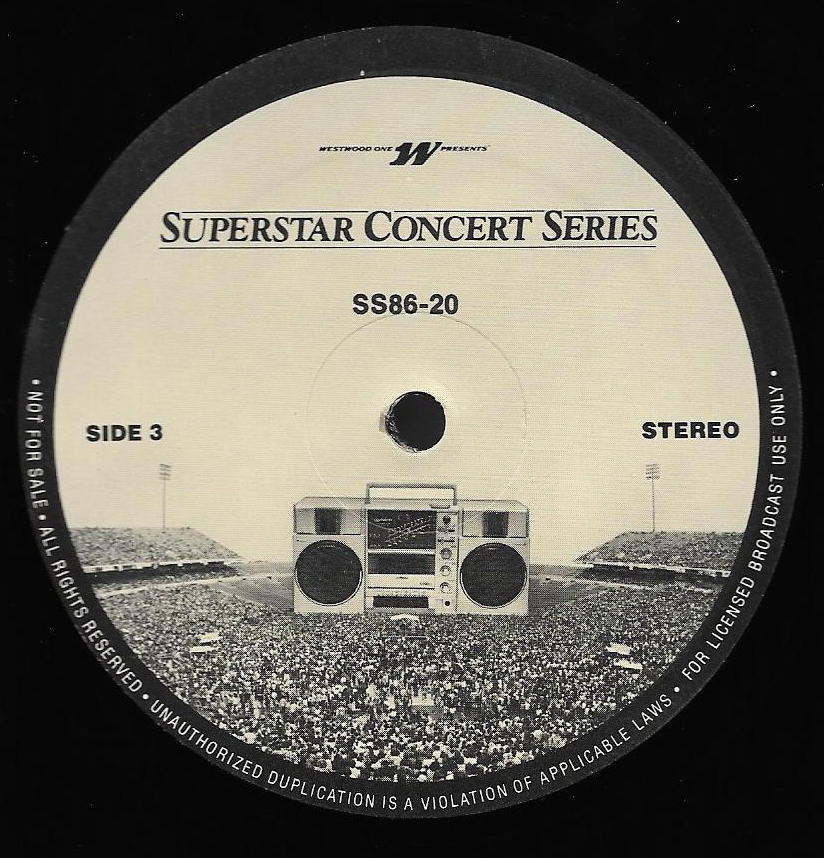 Here is another in the Superstar Concert Series of shows, this time featuring a “greatest hits” style show with Genesis. Although this is a two-disc show, it was not designed to be aired on consecutive nights or weekends. This show was broadcast in one 90 minute window in August 1999. Featuring performances from 1981 and 1984, all tracks presented are previously available on other Westwood One shows listed above. Host J.J. Jackson handles the segments breaks, with original commercial blocks included. This exact show was repackaged for broadcast in August 2000 under show #00-35, but I’ve only ever been able to find Part I for sale online.