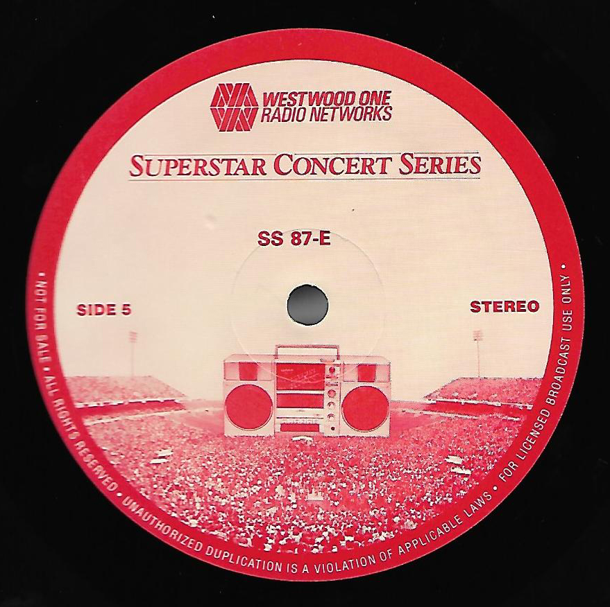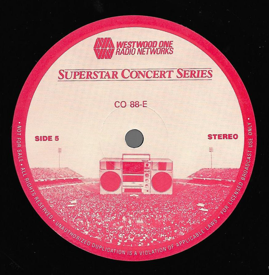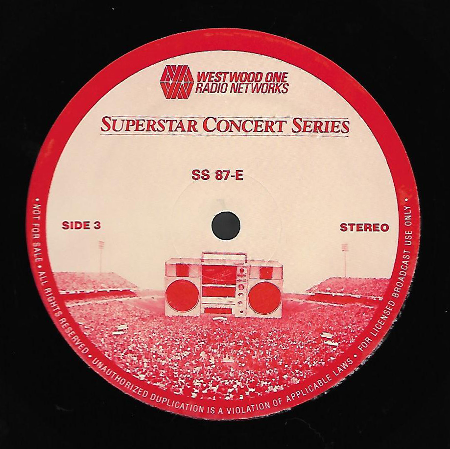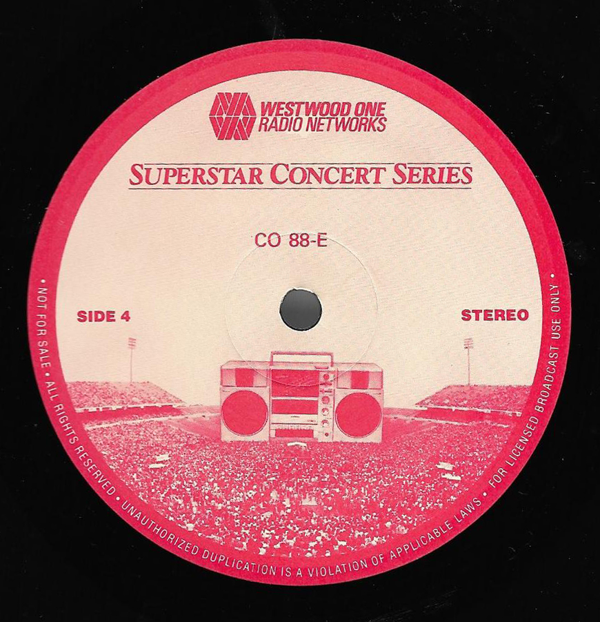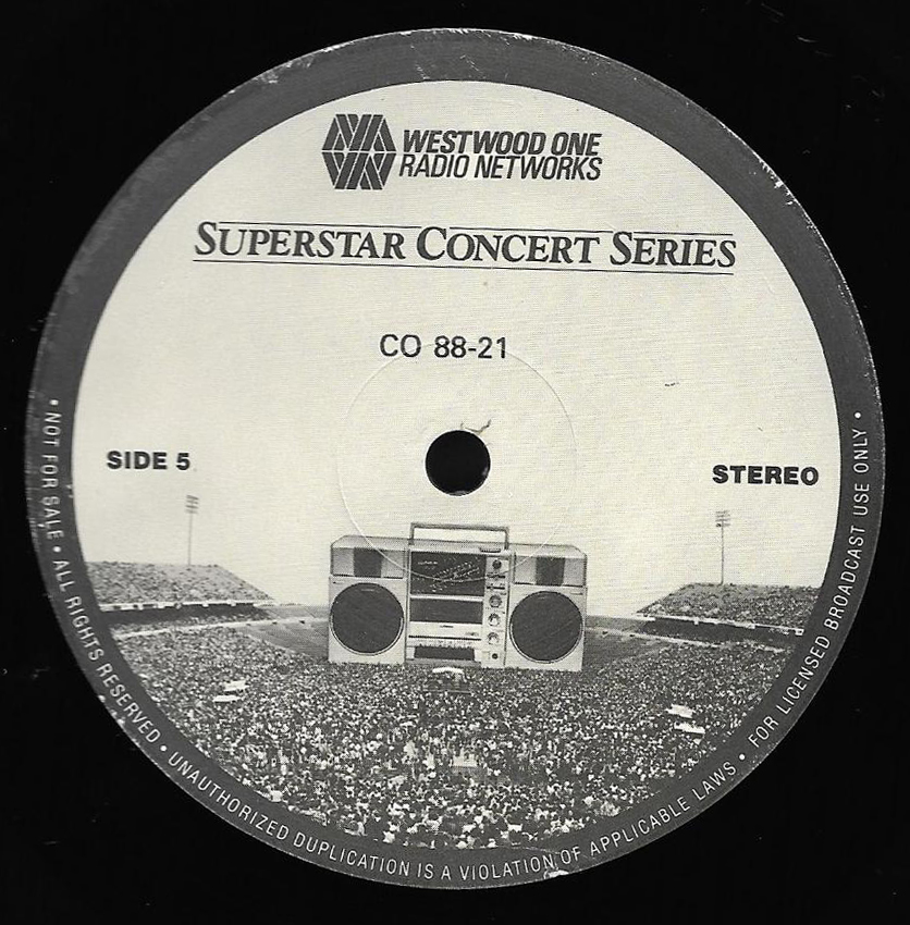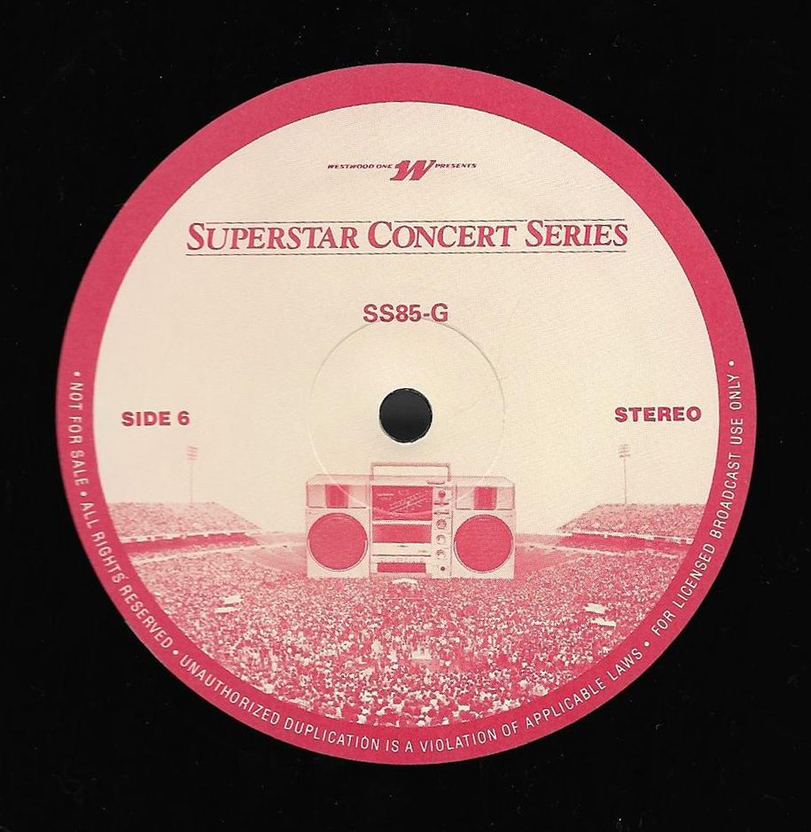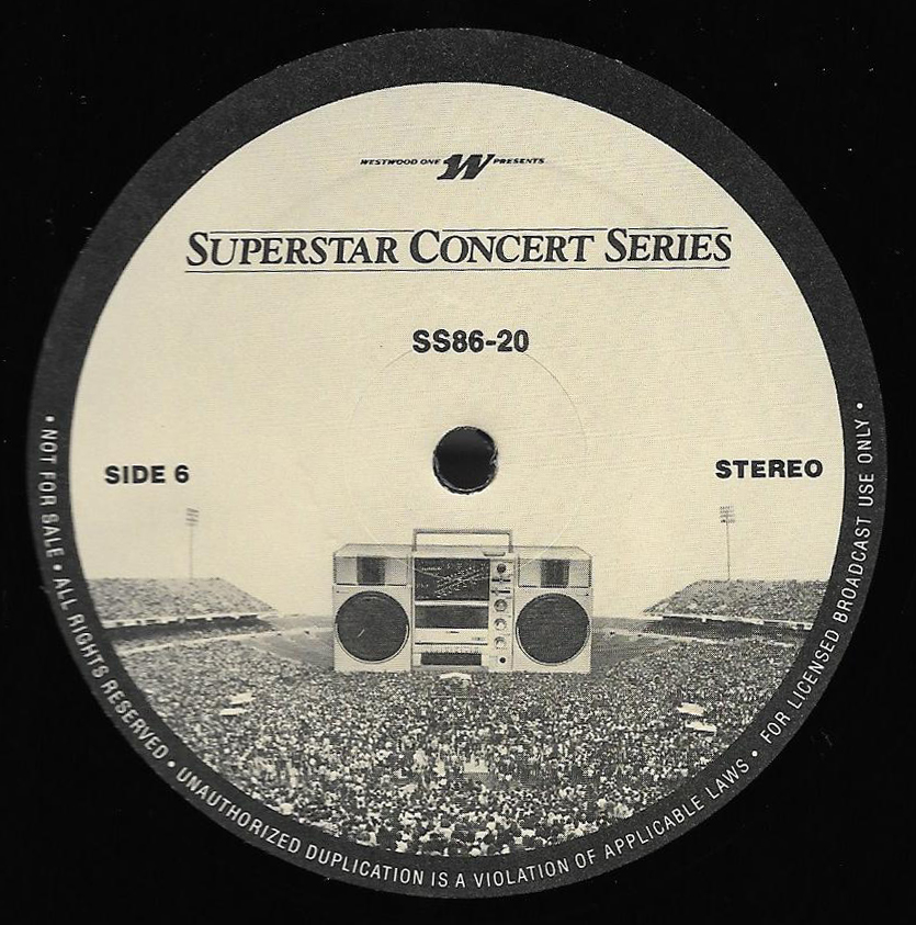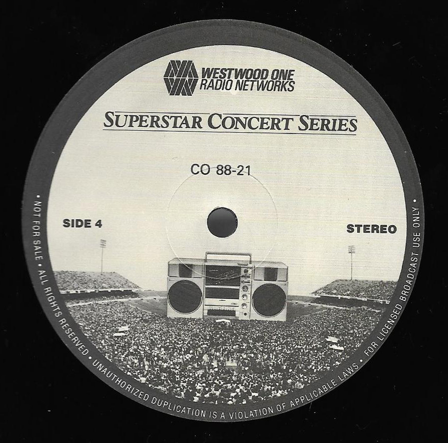Here is another in the Superstar Concert Series of shows, this time featuring a “greatest hits” style show with Genesis. Although this is a two-disc show, it was not designed to be aired on consecutive nights or weekends. This show was broadcast in one 90 minute window in August 1999. Featuring performances from 1981 and 1984, all tracks presented are previously available on other Westwood One shows listed above. Host J.J. Jackson handles the segments breaks, with original commercial blocks included. This exact show was repackaged for broadcast in August 2000 under show #00-35, but I’ve only ever been able to find Part I for sale online.