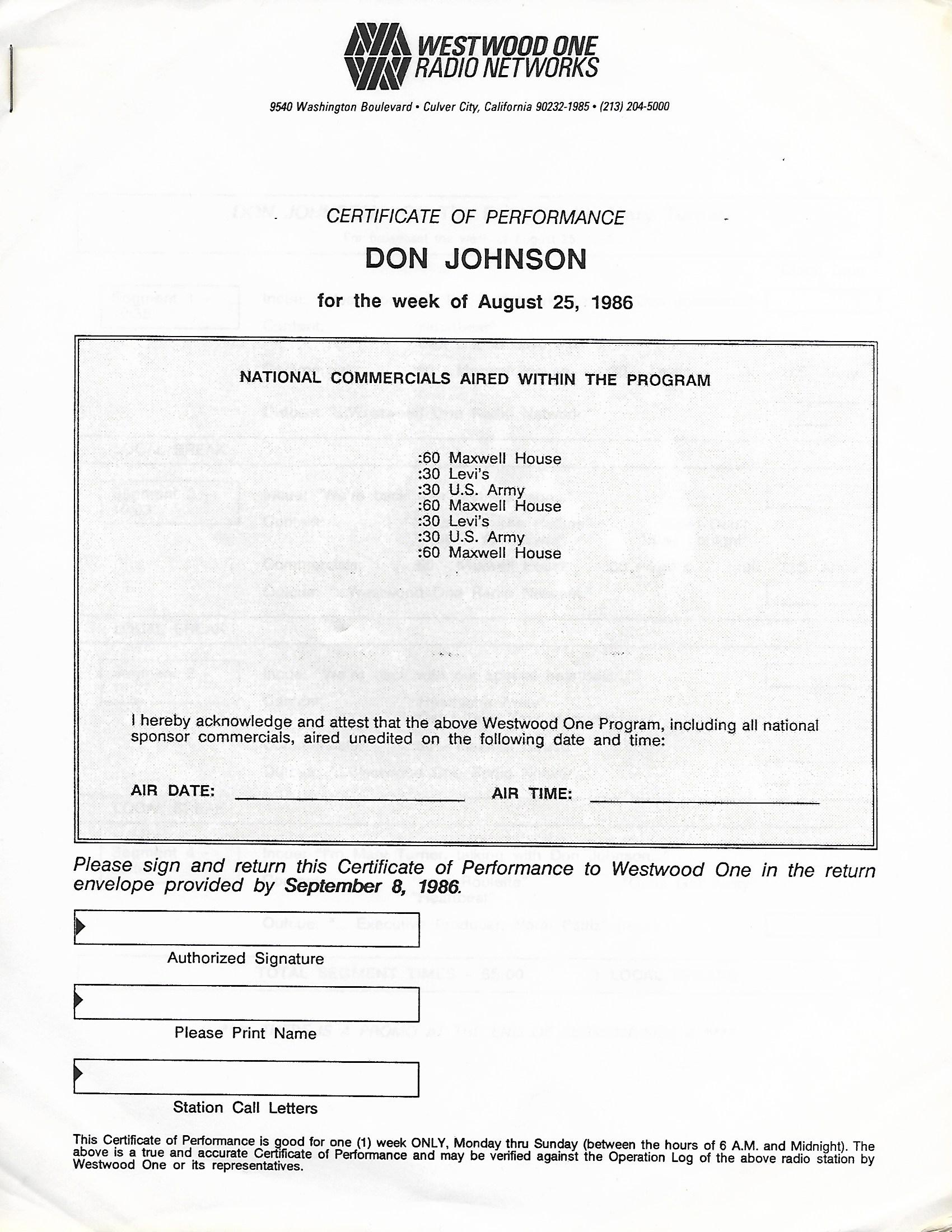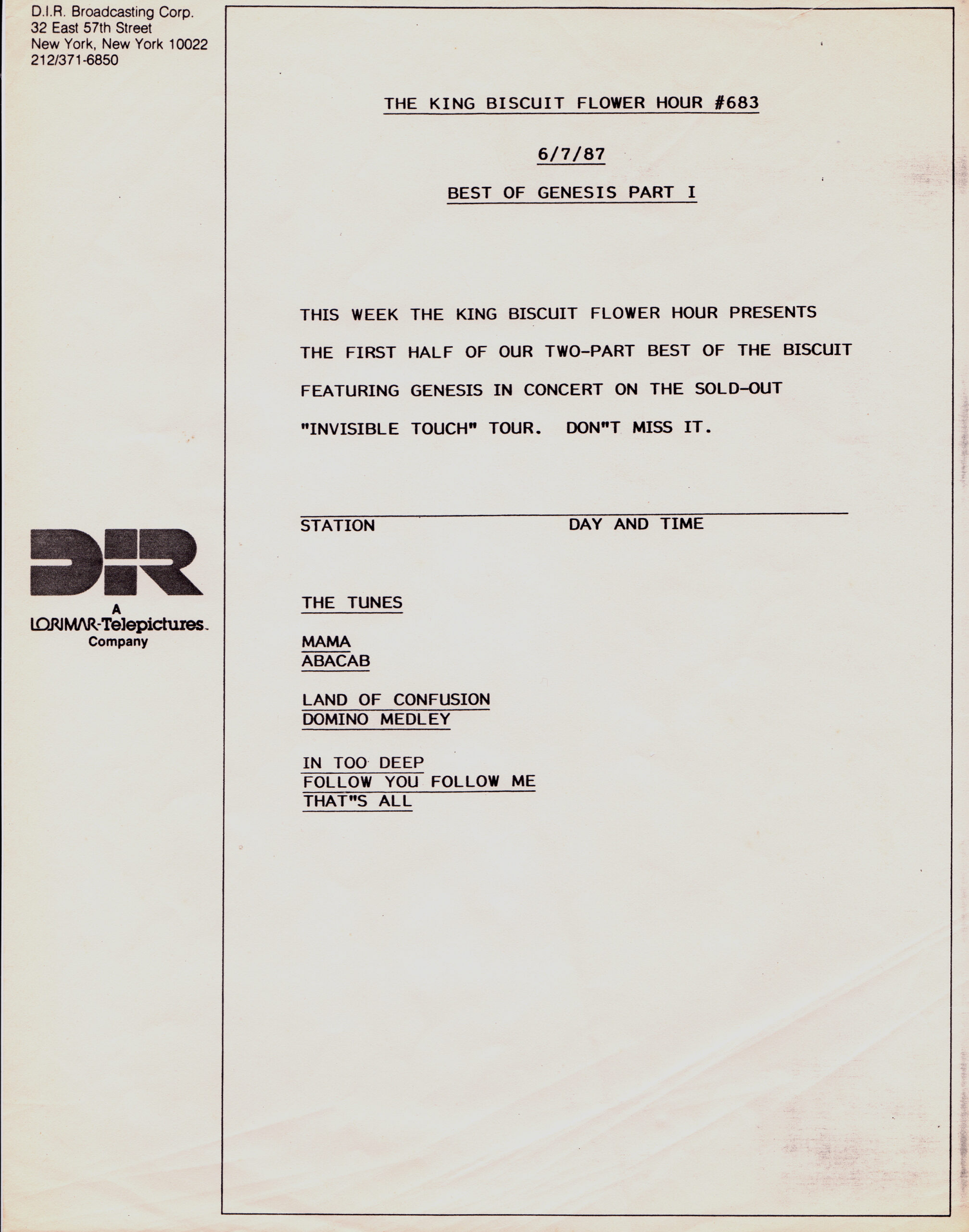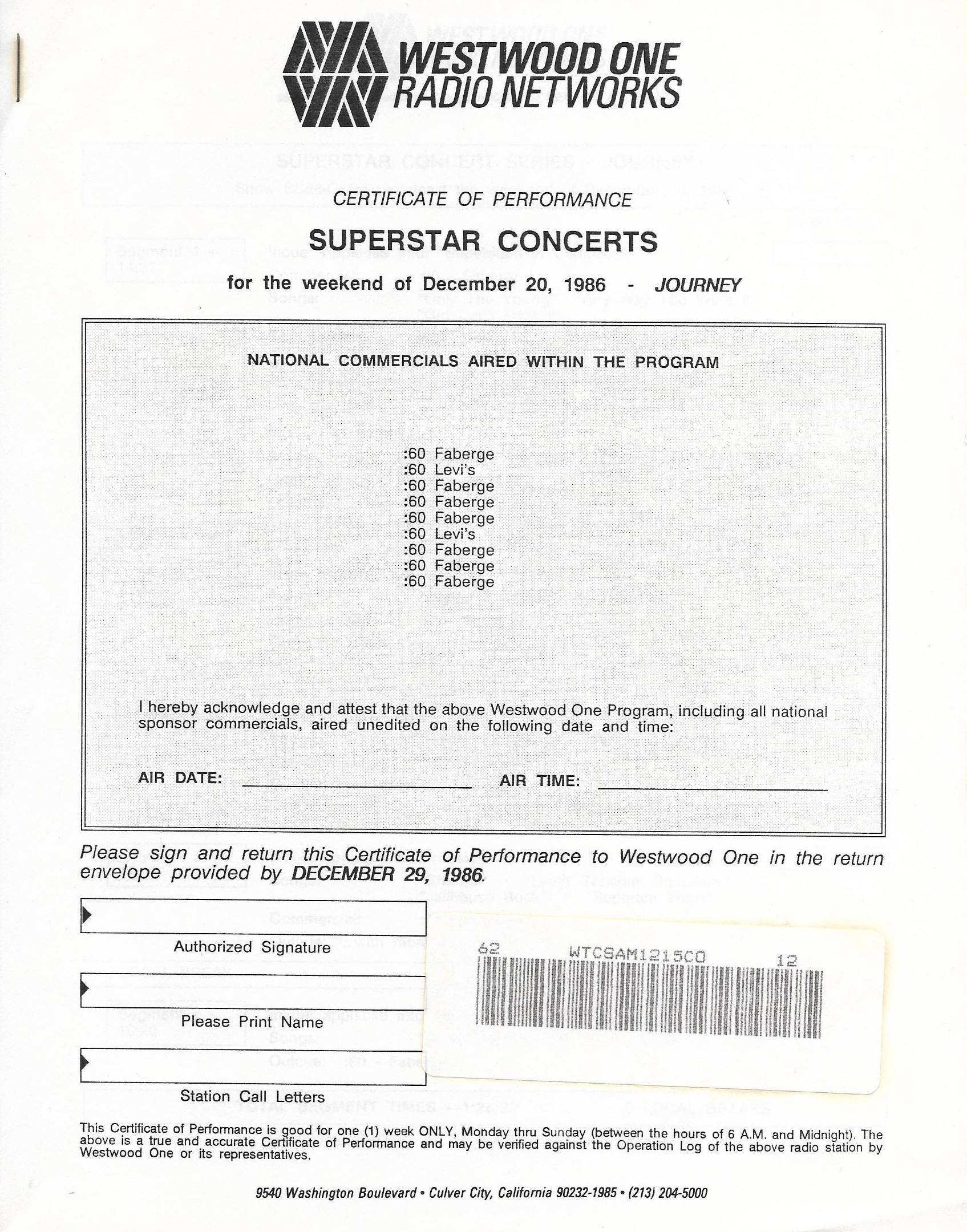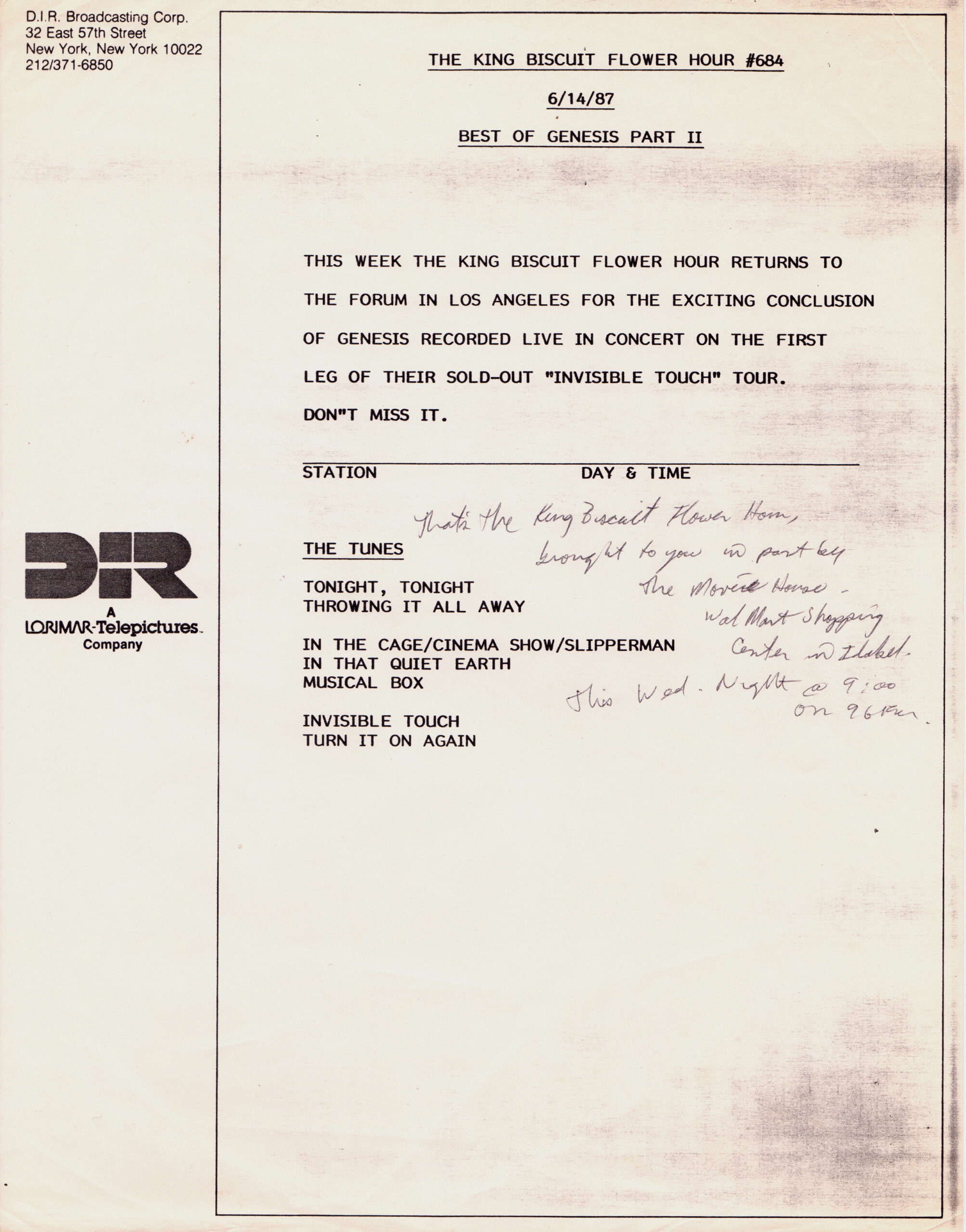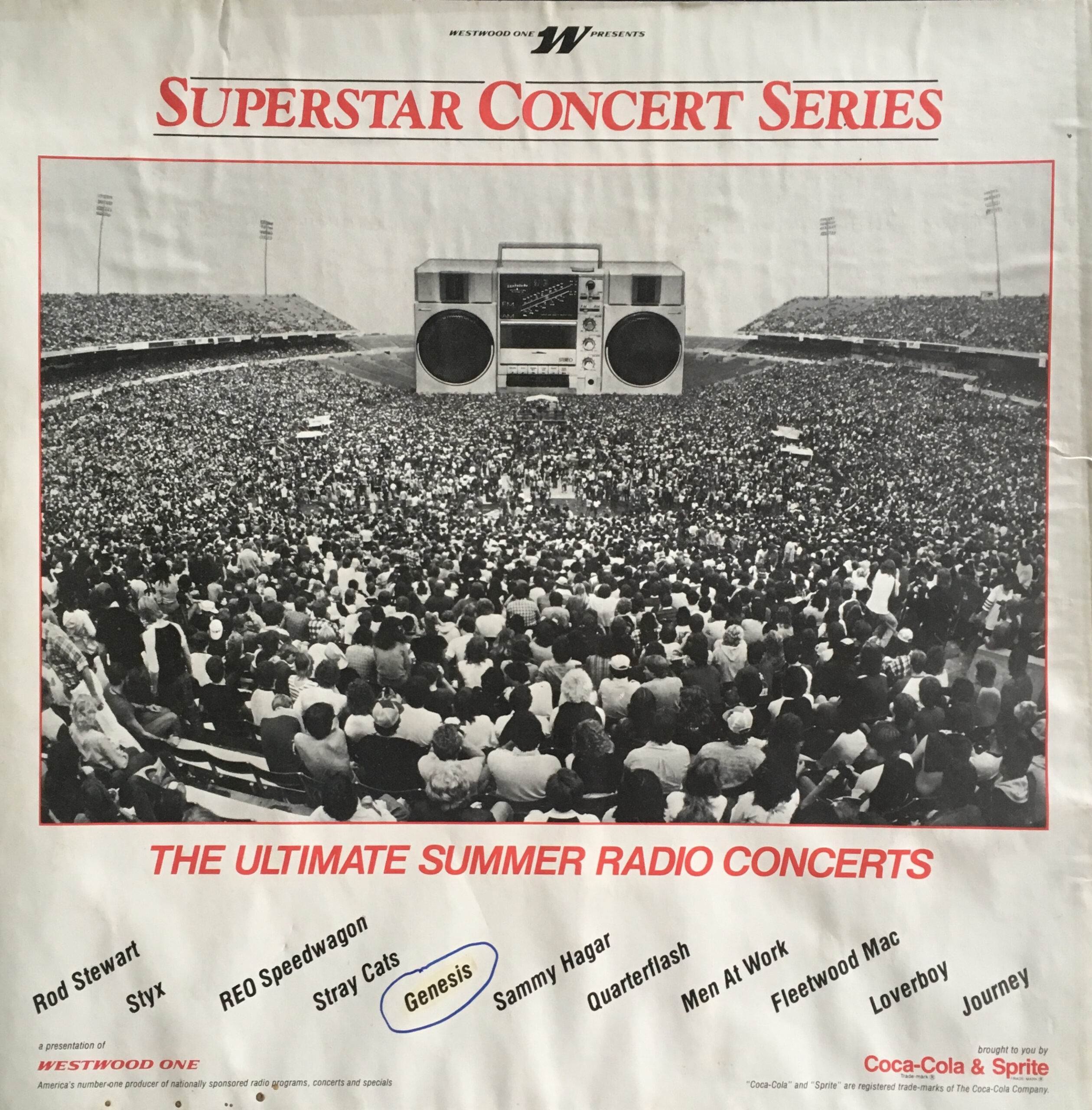 Here is another in the Superstar Concert Series of shows, this time featuring a “greatest hits” style show with Genesis. Although this is a two-disc show, it was not designed to be aired on consecutive nights or weekends. This show was broadcast in one 90 minute window in August 1999. Featuring performances from 1981 and 1984, all tracks presented are previously available on other Westwood One shows listed above. Host J.J. Jackson handles the segments breaks, with original commercial blocks included. This exact show was repackaged for broadcast in August 2000 under show #00-35, but I’ve only ever been able to find Part I for sale online.
