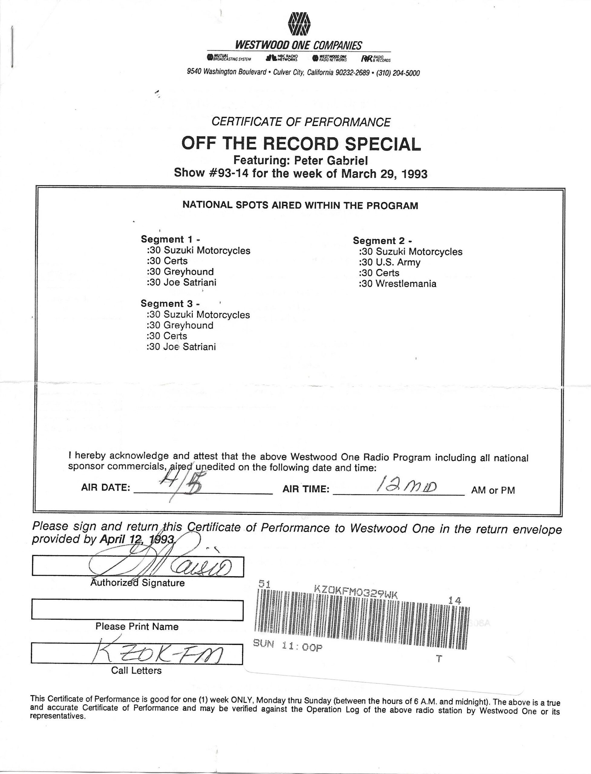 Off The Record Special #97-17: