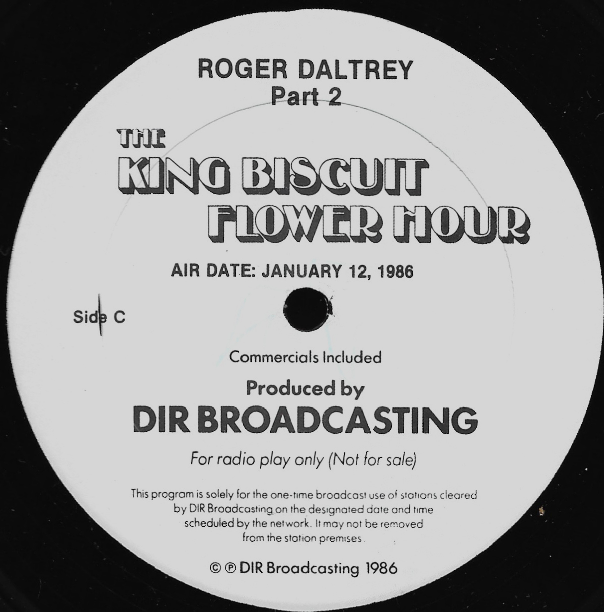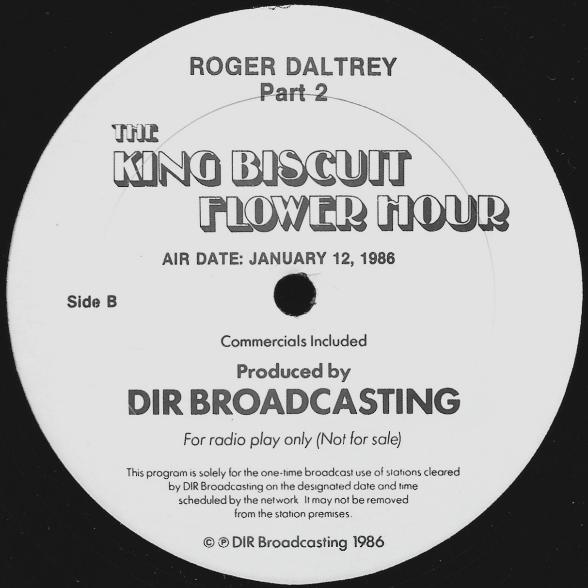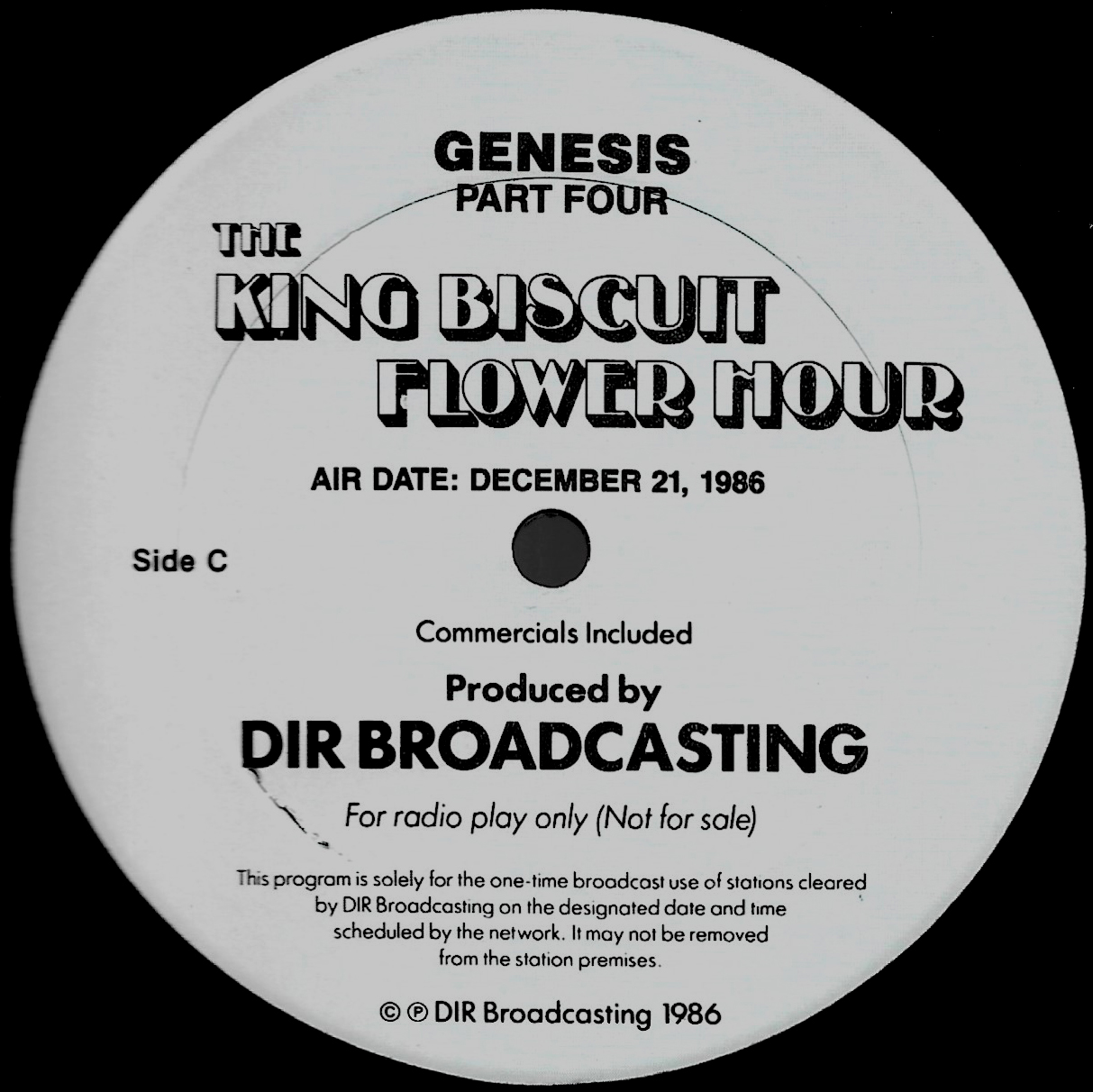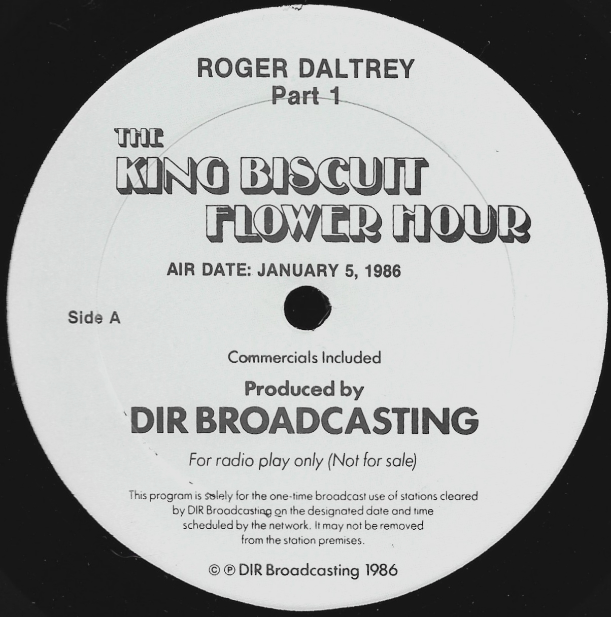 Tracks from the album are played, and there are commercial blocks as well. There are four tracks on the CD. From my personal collection.