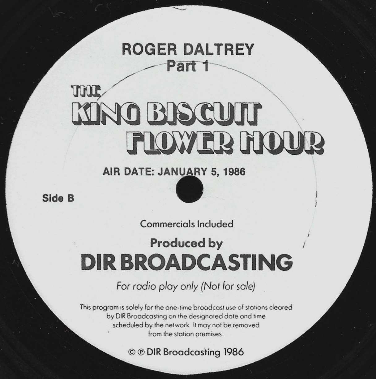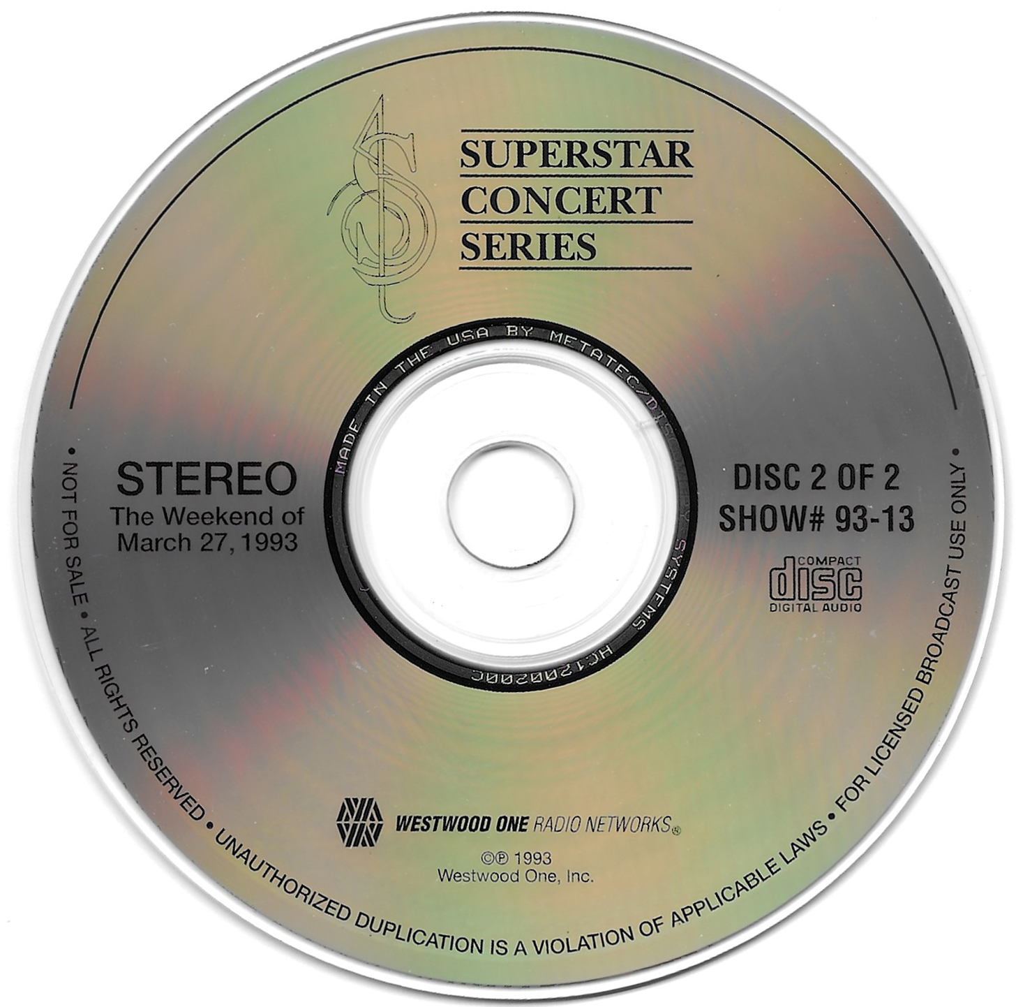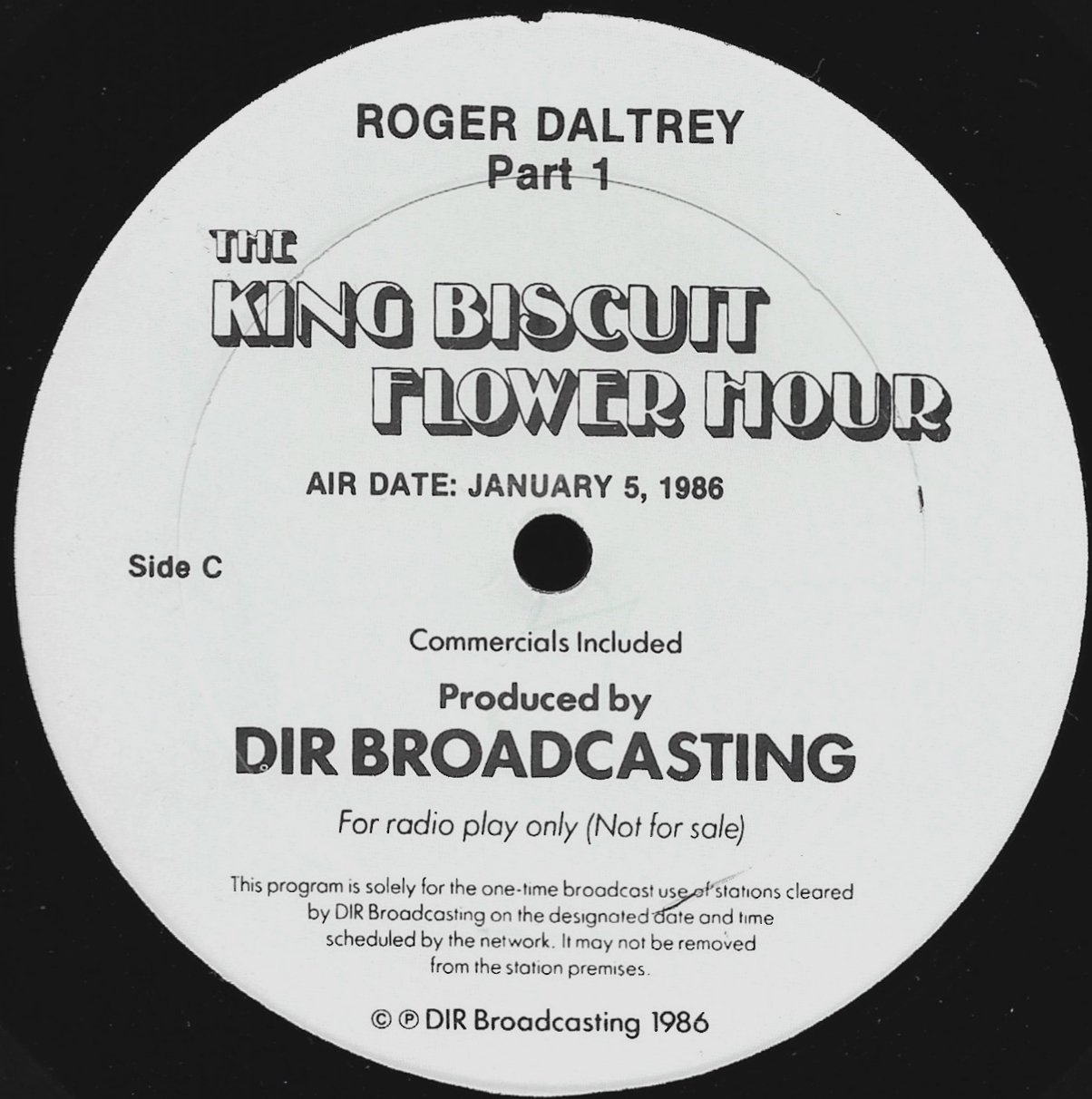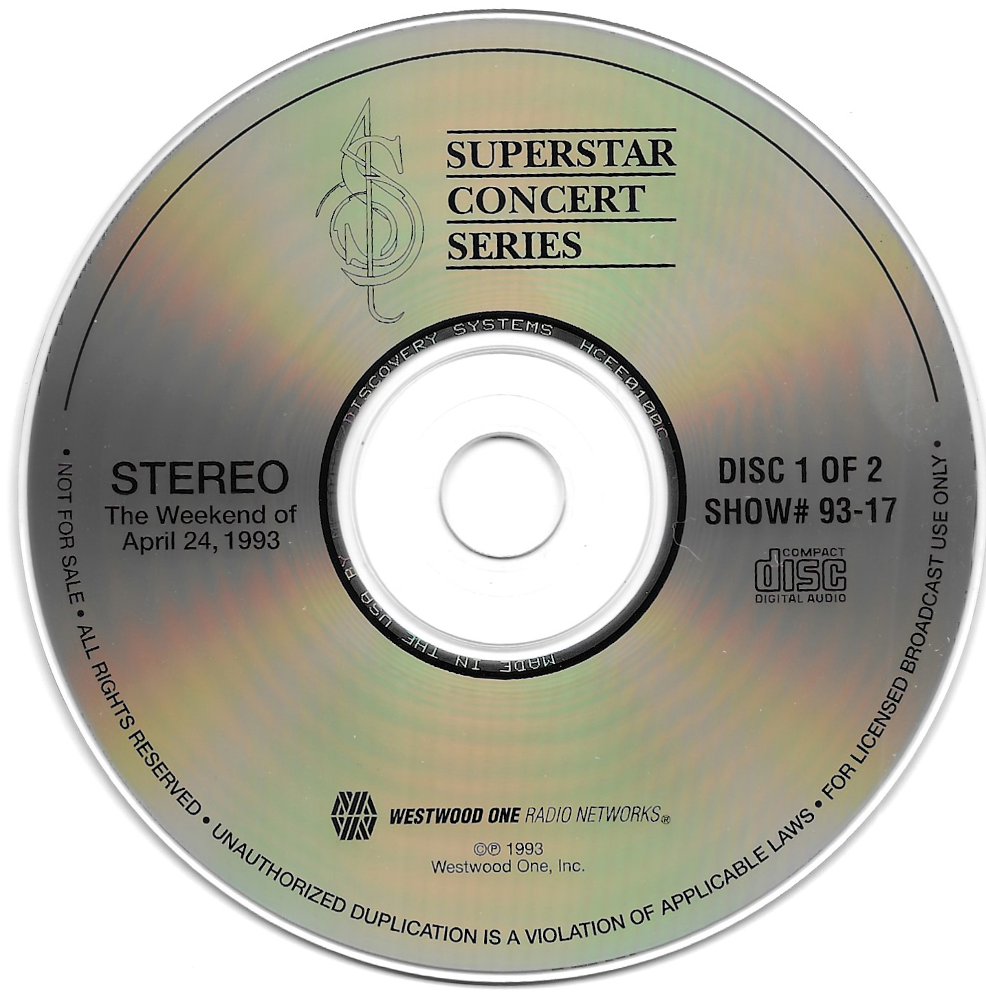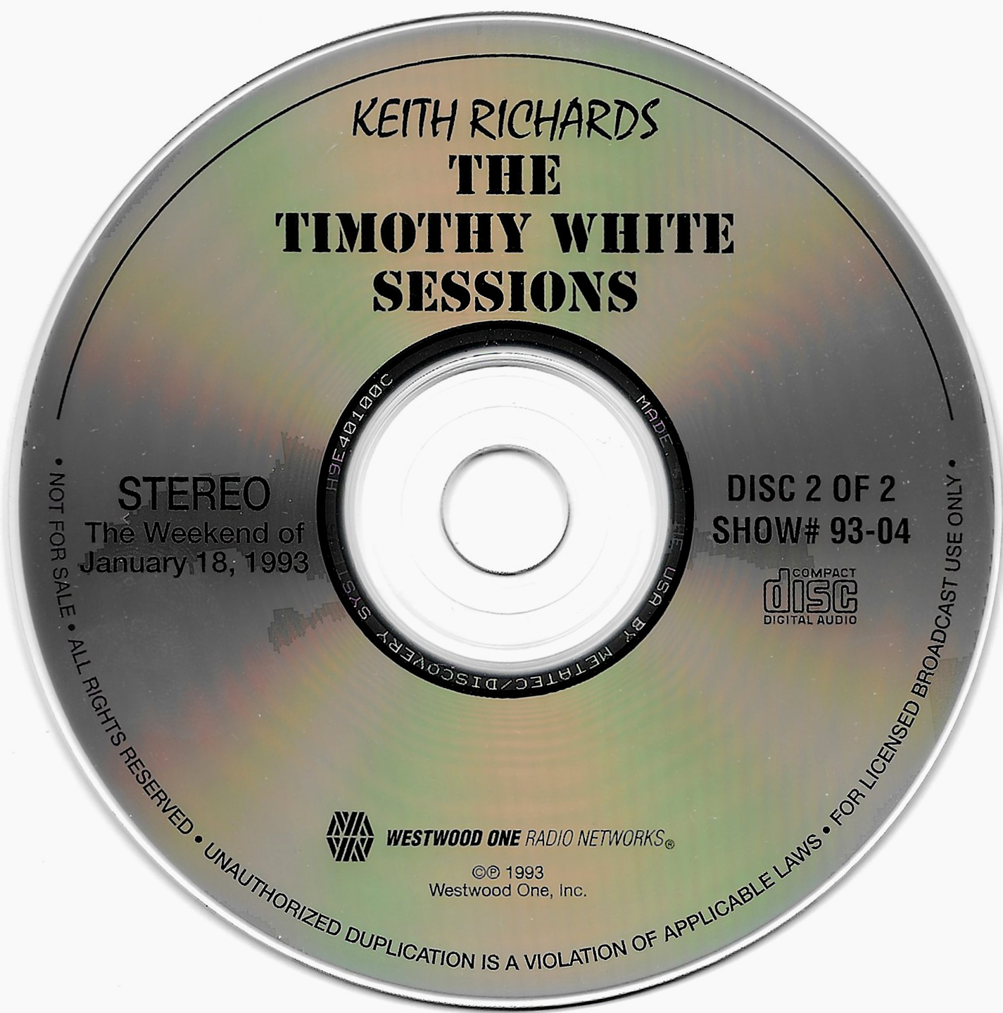 Tracks from the album are played, and there are commercial blocks as well. There are four tracks on the CD. From my personal collection.