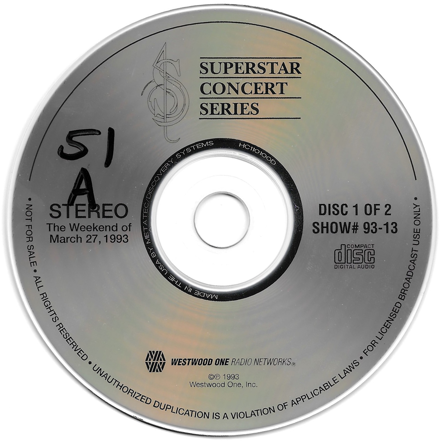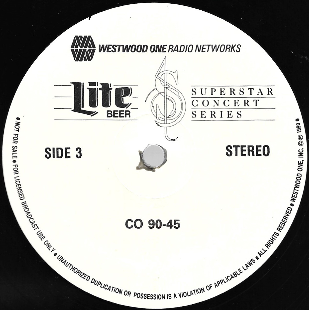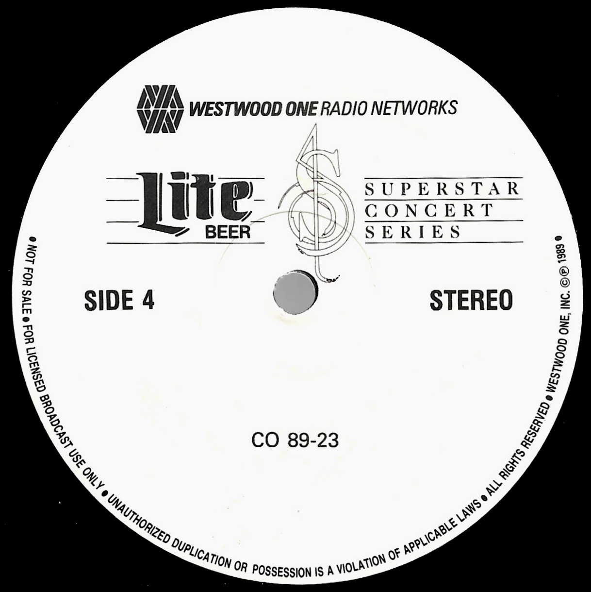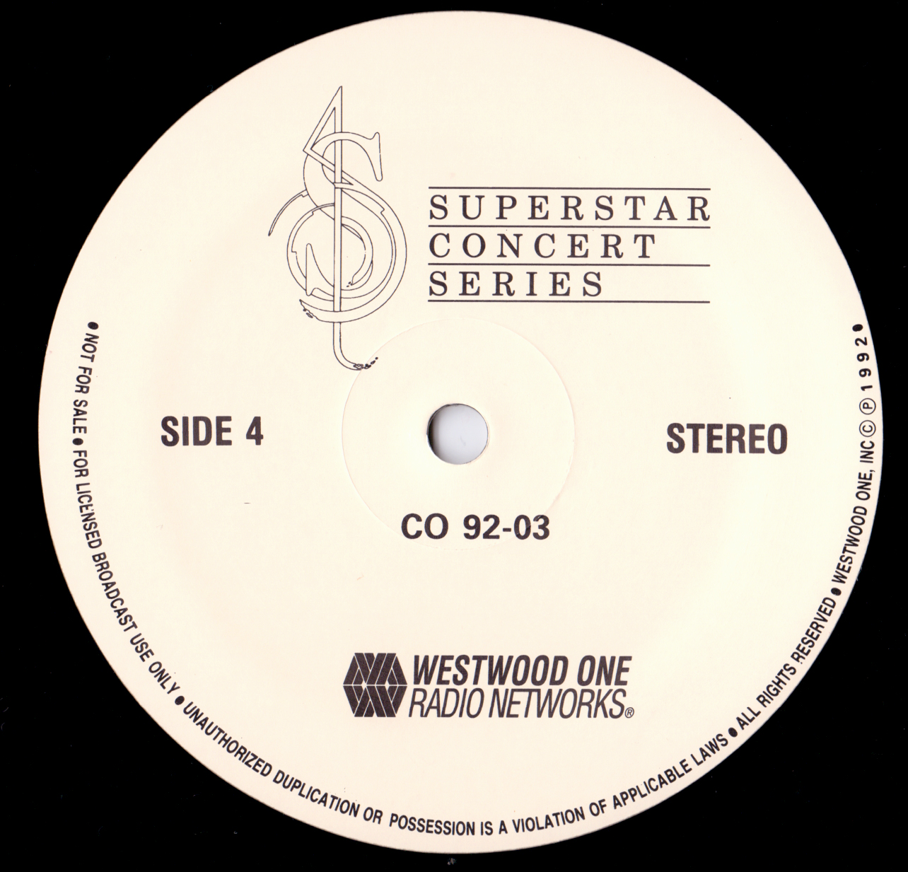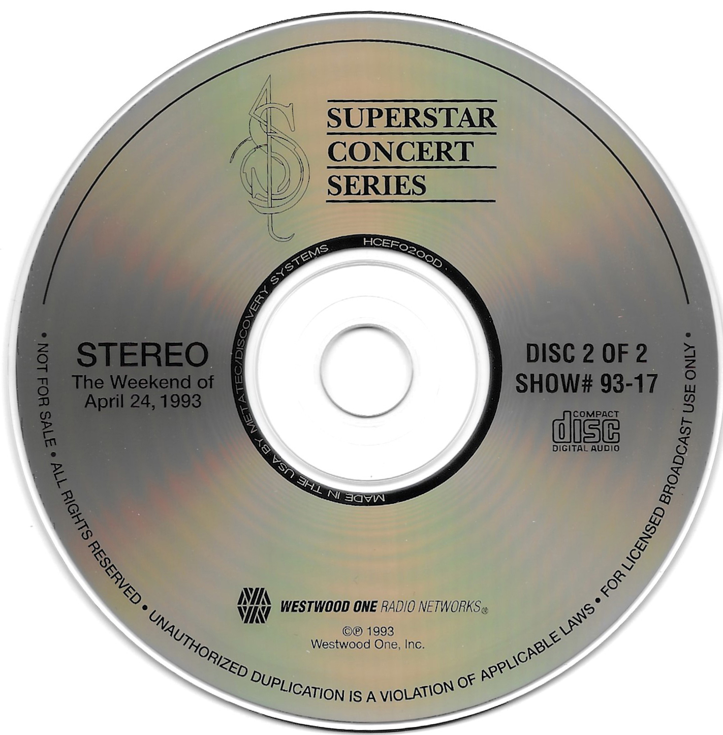 Tracks from the album are played, and there are commercial blocks as well. There are four tracks on the CD. From my personal collection.
