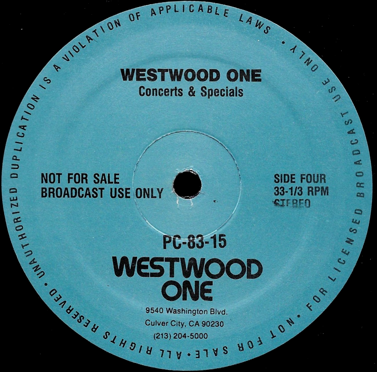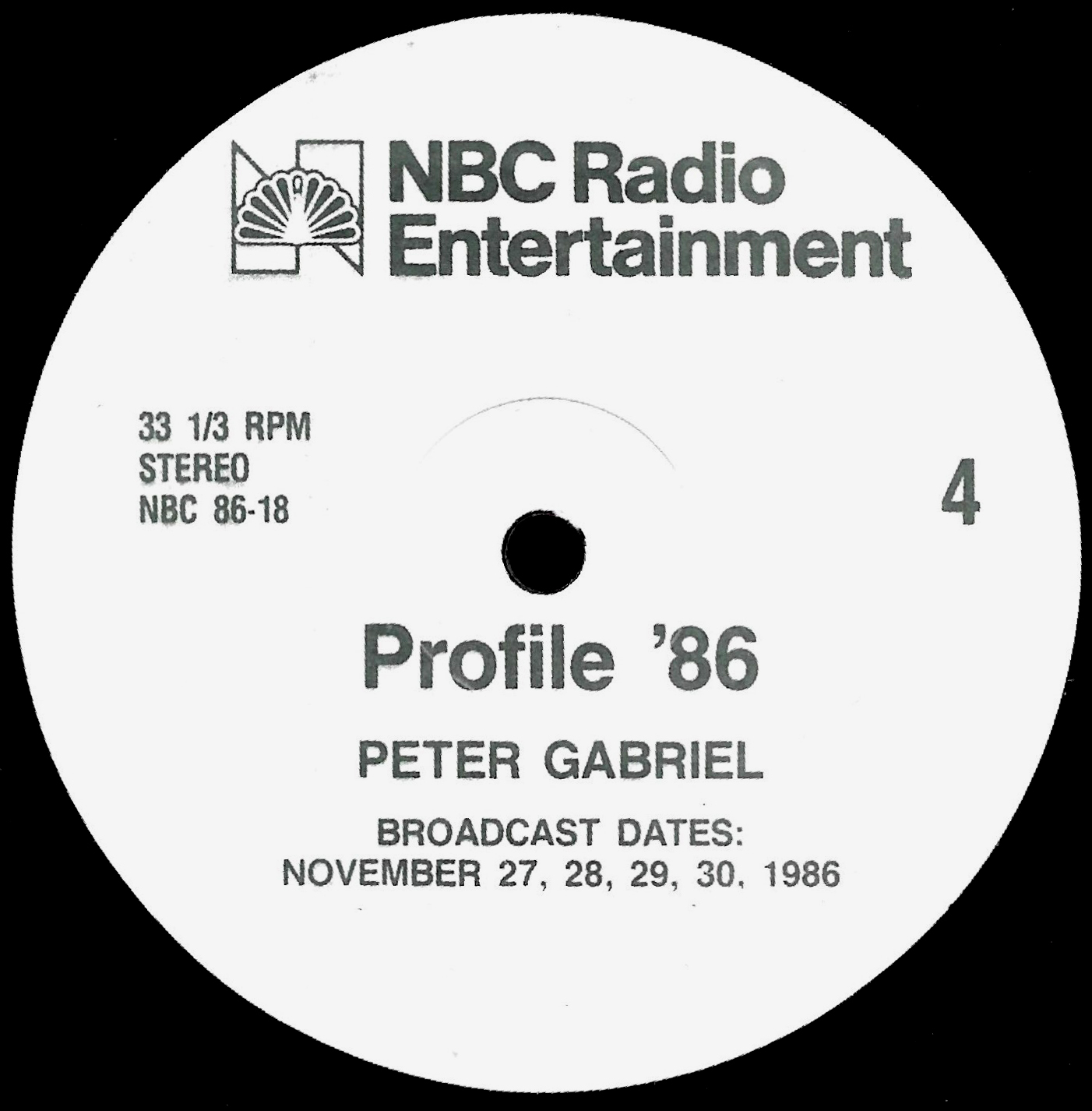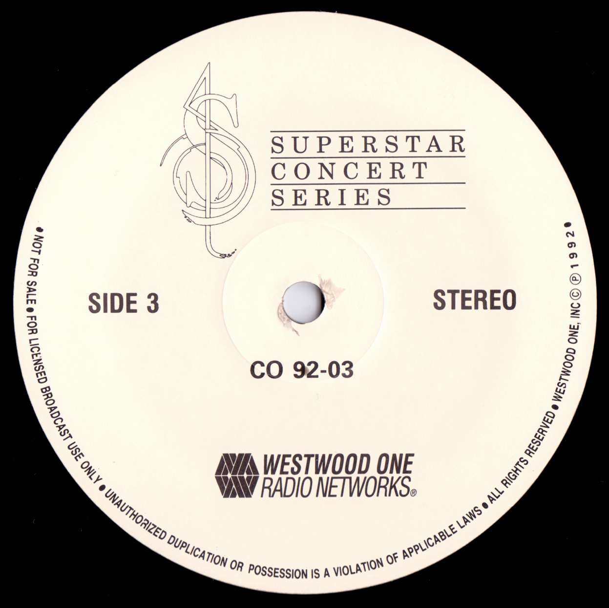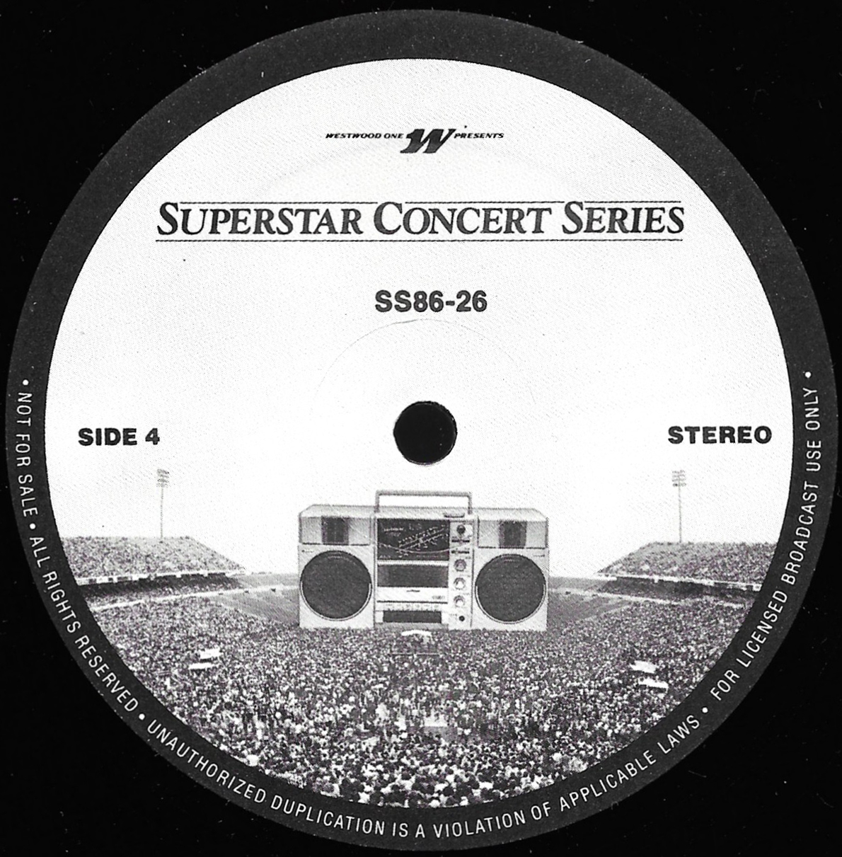 Tracks from the album are played, and there are commercial blocks as well. There are four tracks on the CD. From my personal collection.