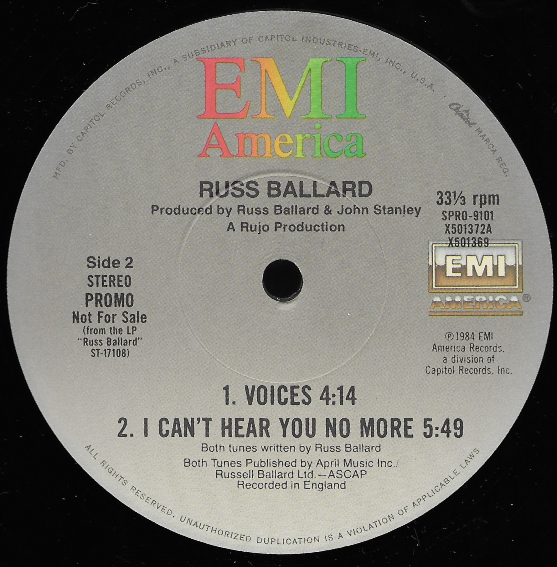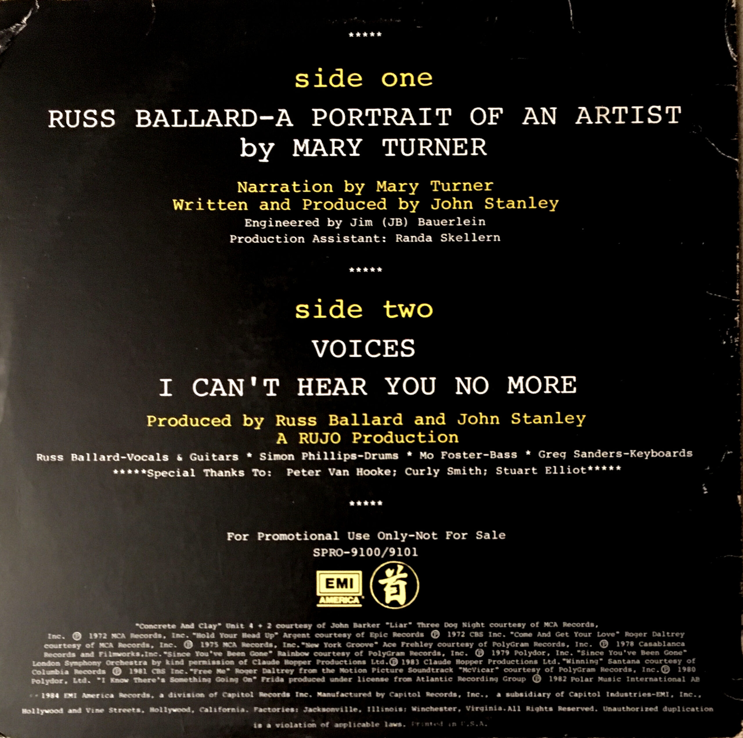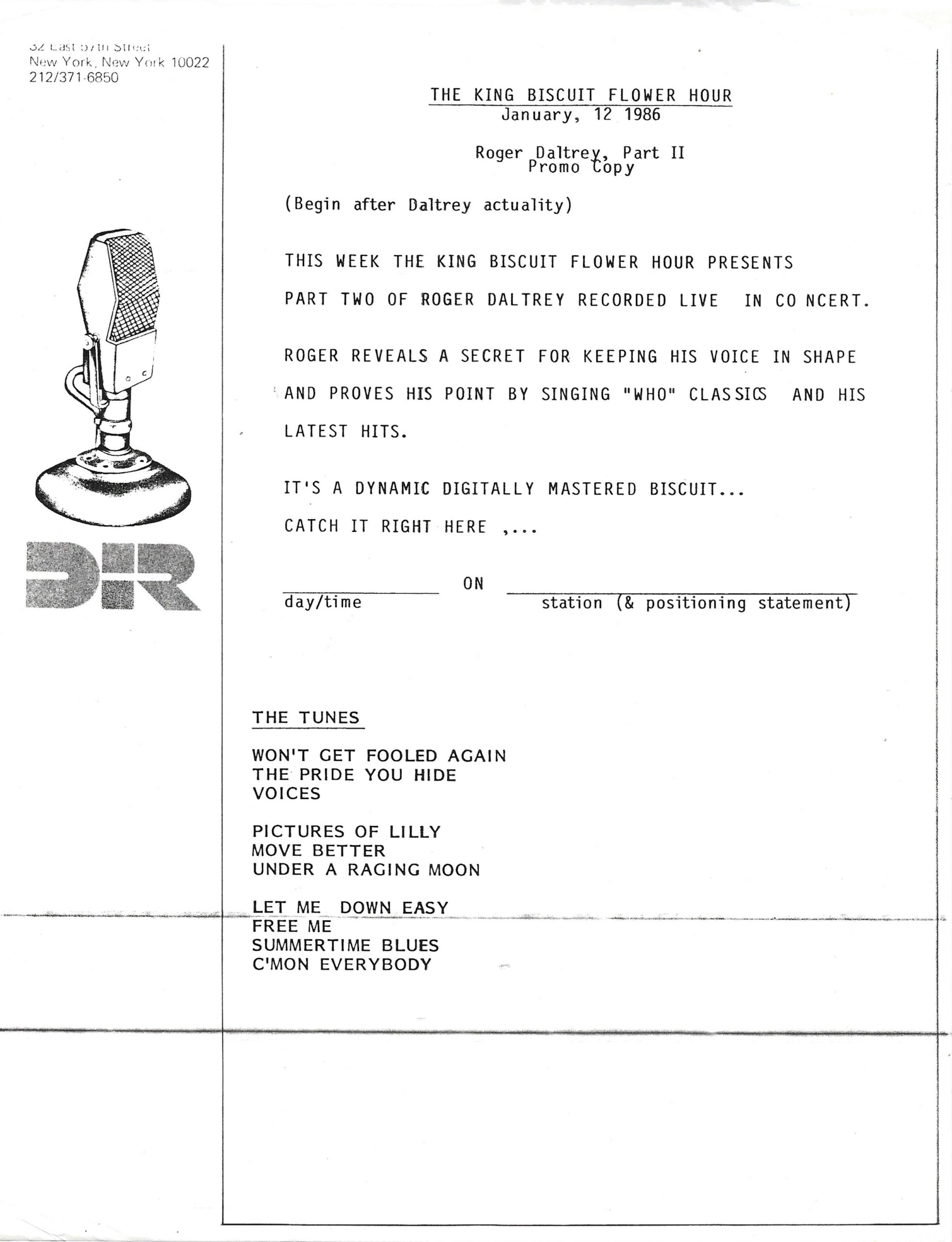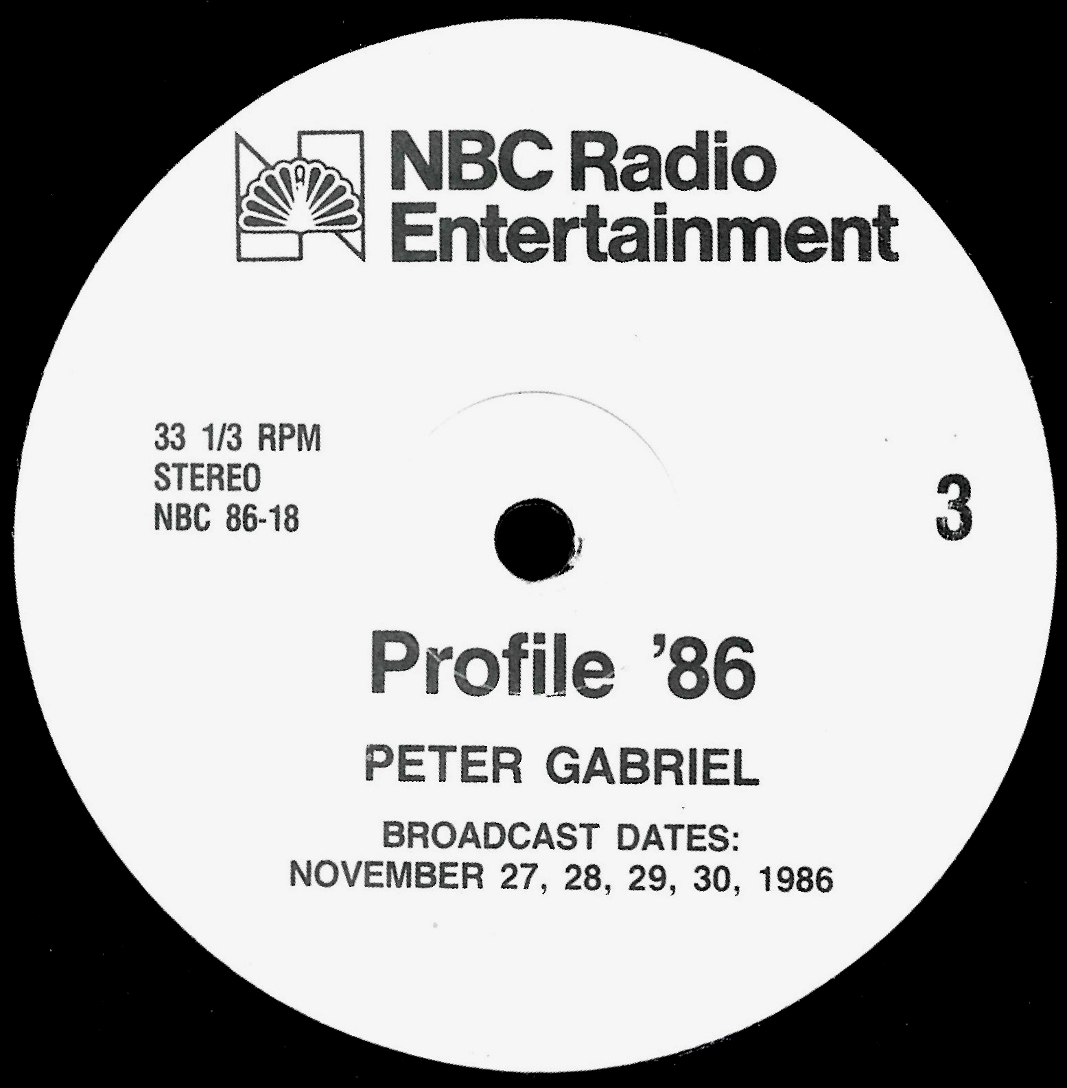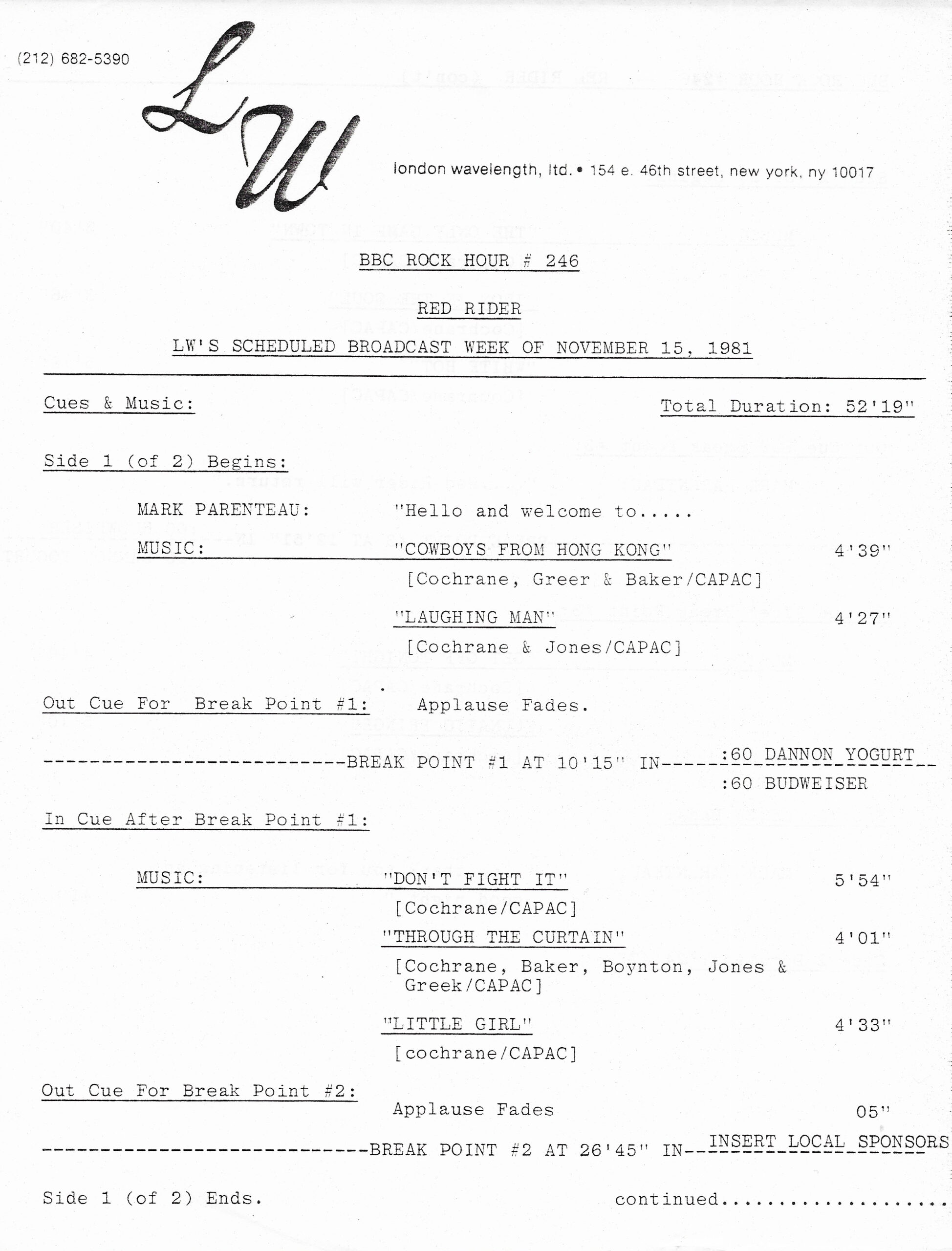 Tracks from the album are played, and there are commercial blocks as well. There are four tracks on the CD. From my personal collection.